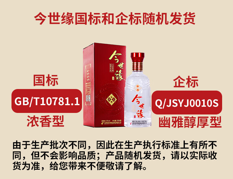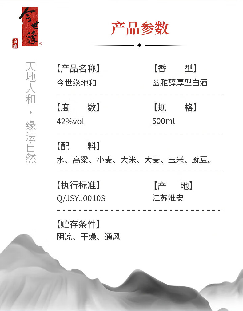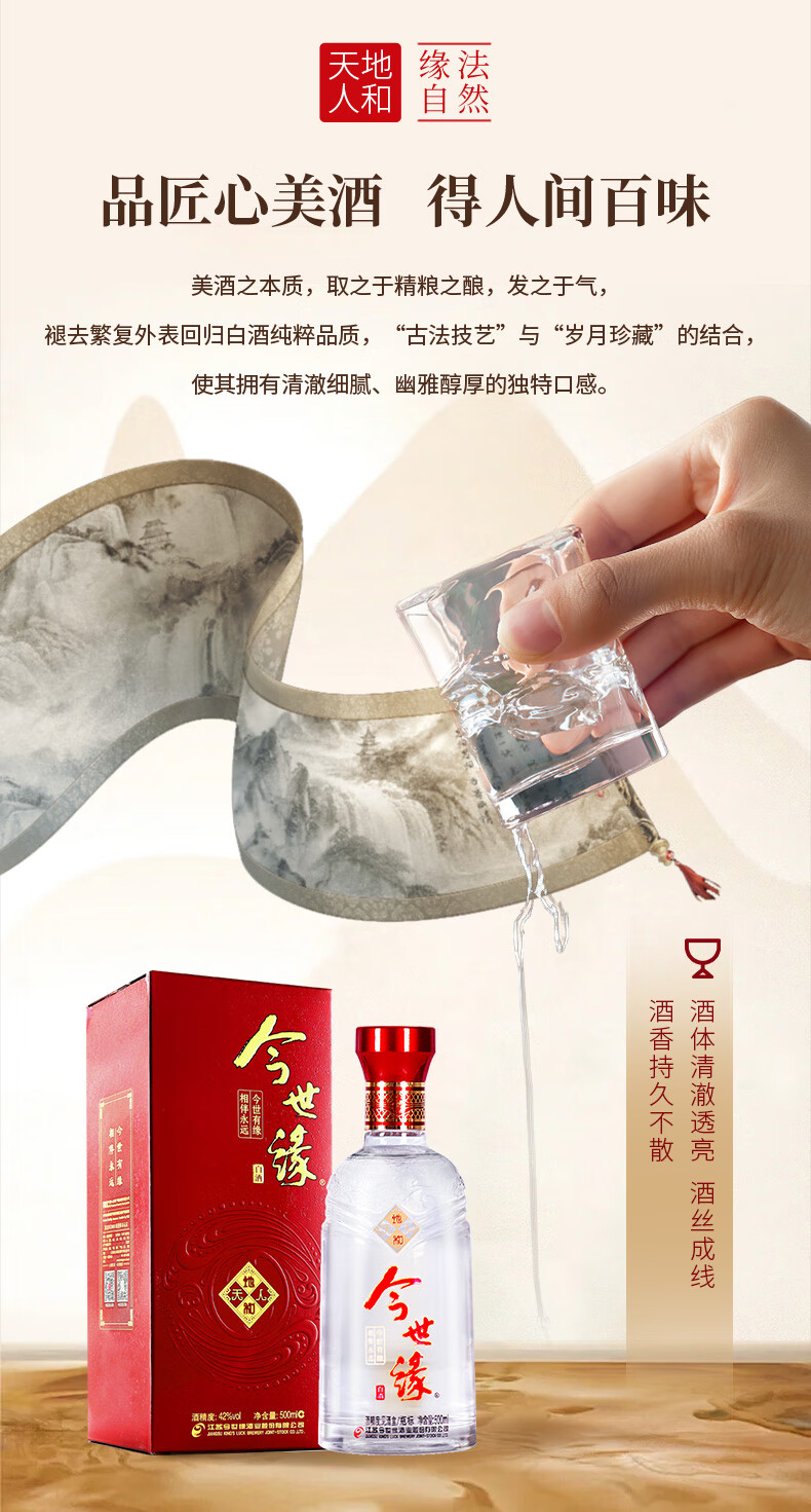 今世缘 地和 幽雅醇厚型 白酒 42度 500ml*1瓶 单瓶装口粮酒