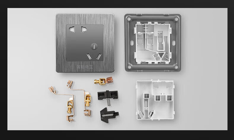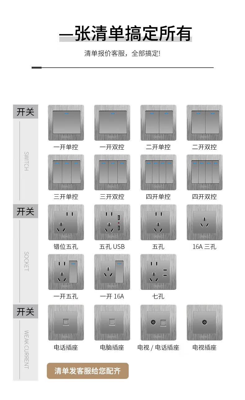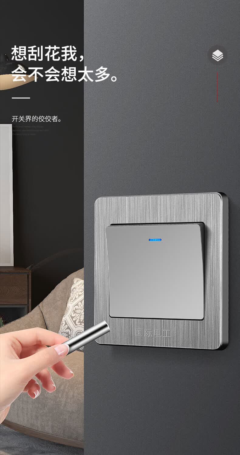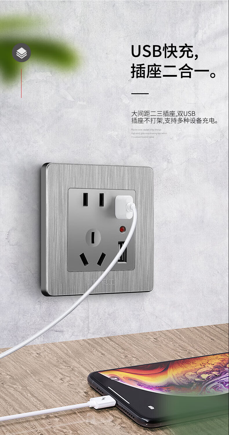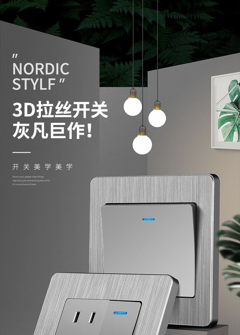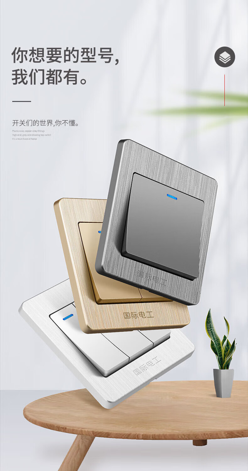 国际电工开关插座面板86型灰色拉丝家用墙壁暗装一开五孔多孔电源全屋套餐 五孔 插座