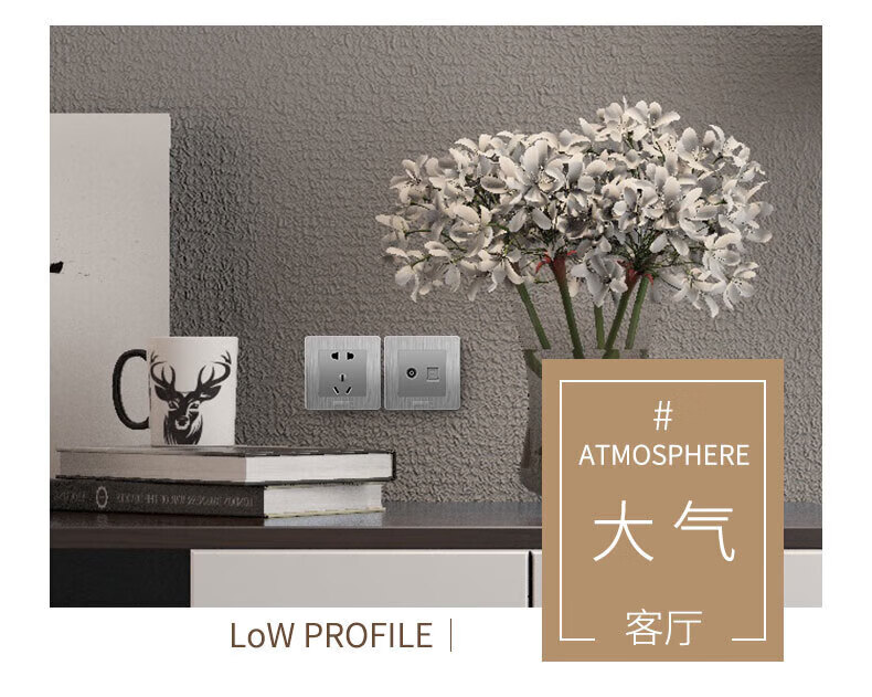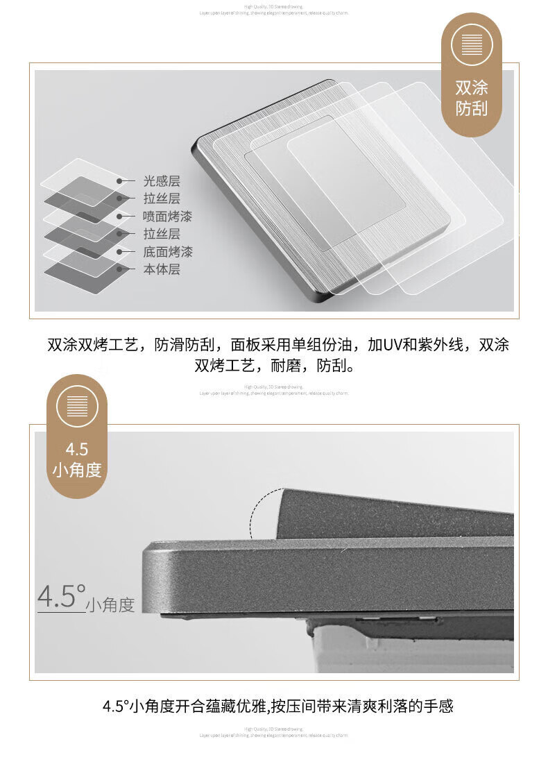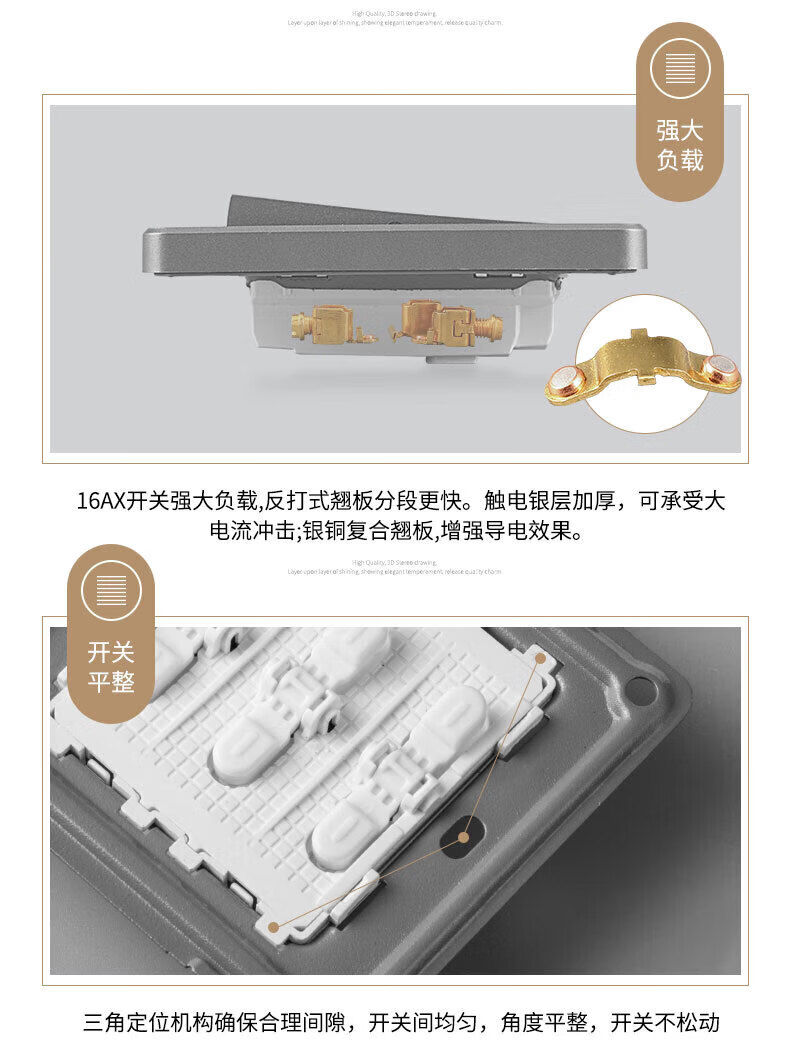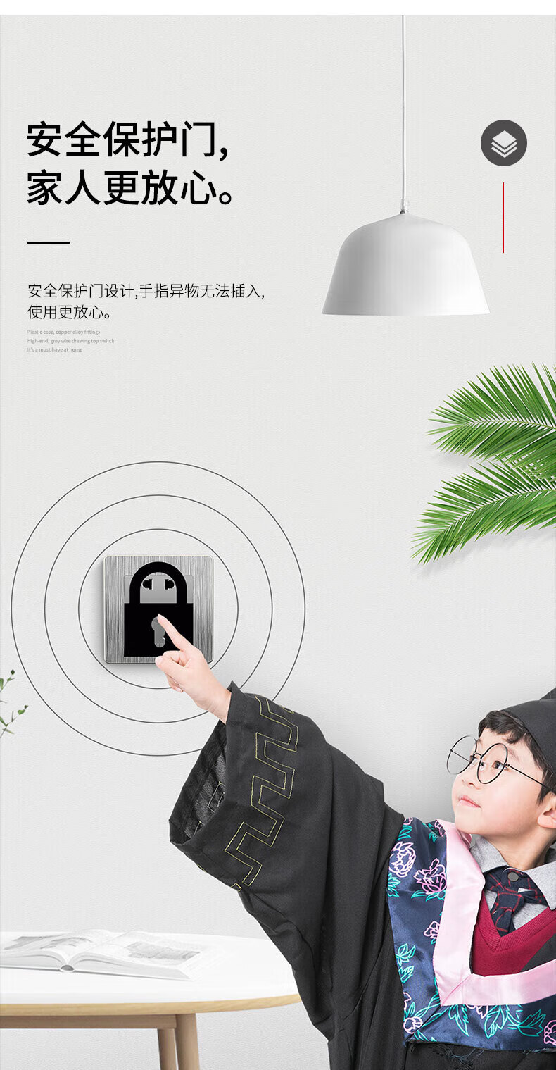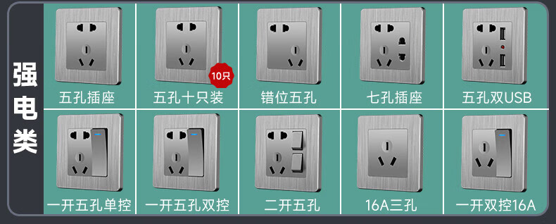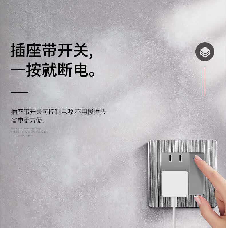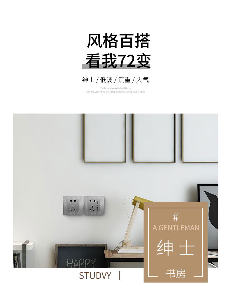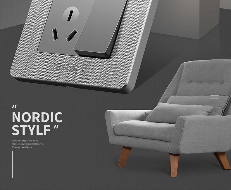 国际电工开关插座面板86型灰色拉丝家用墙壁暗装一开五孔多孔电源全屋套餐 五孔 插座