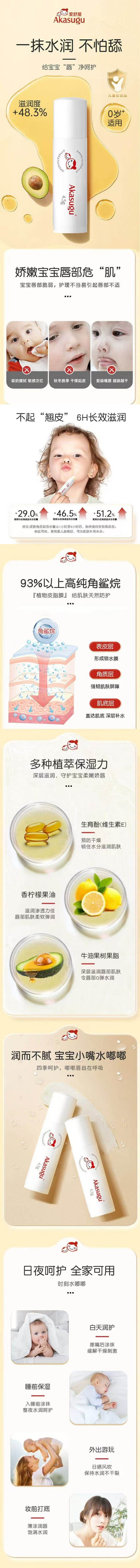 Akasugu爱舒屋儿童植物角鲨烷润唇膏4.5g宝宝口水护理膏滋润【临期清仓】
