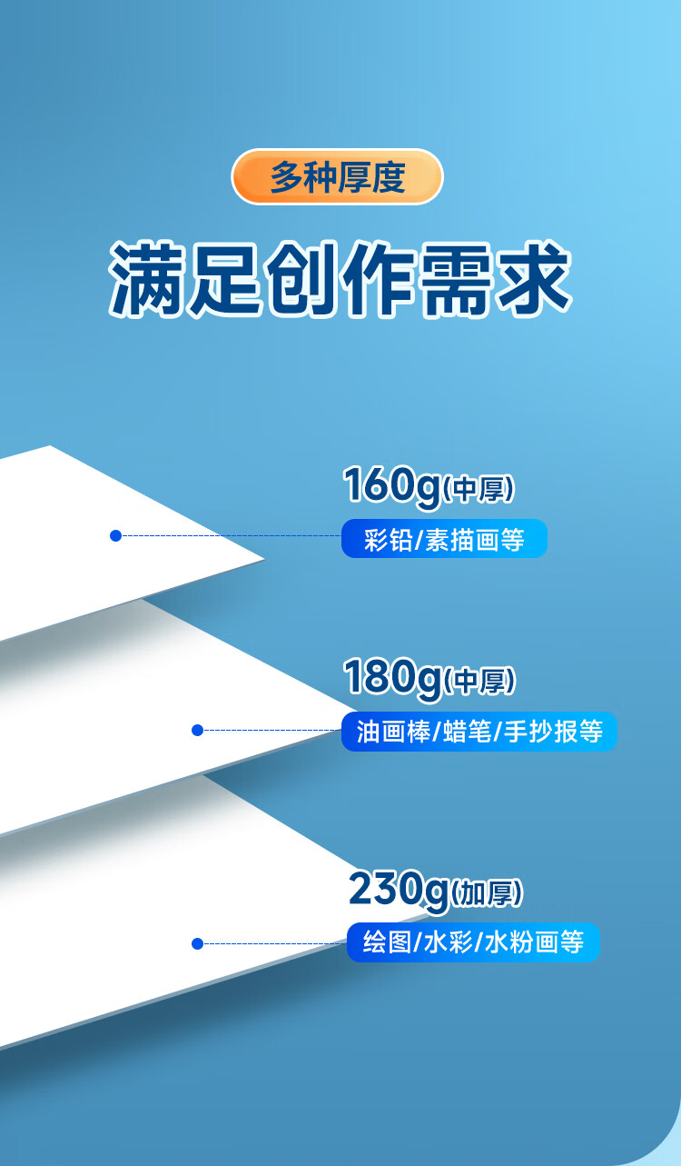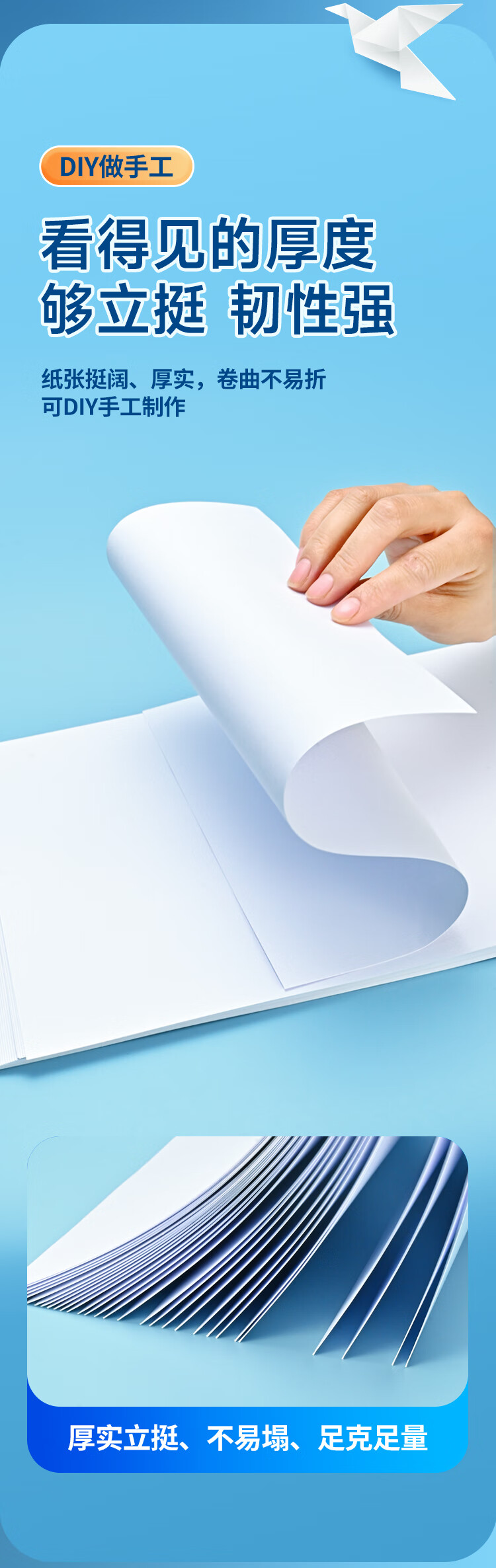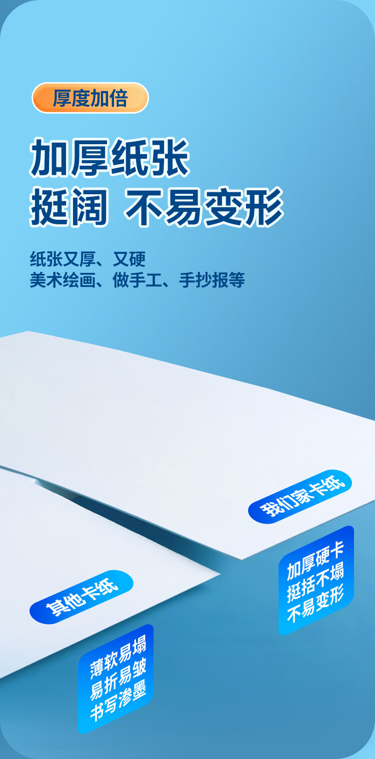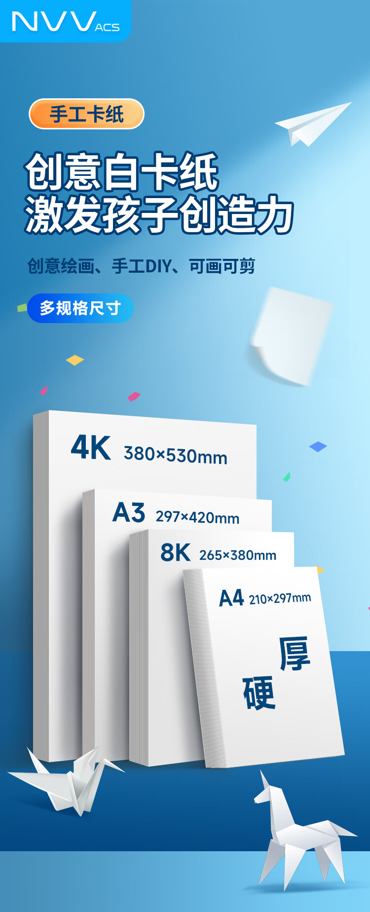 NVVA4荷兰白卡纸180g加厚硬卡纸白色儿童手工diy剪纸美术绘画马克纸学生手绘纸手抄报纸50张ZBQ-YA4白