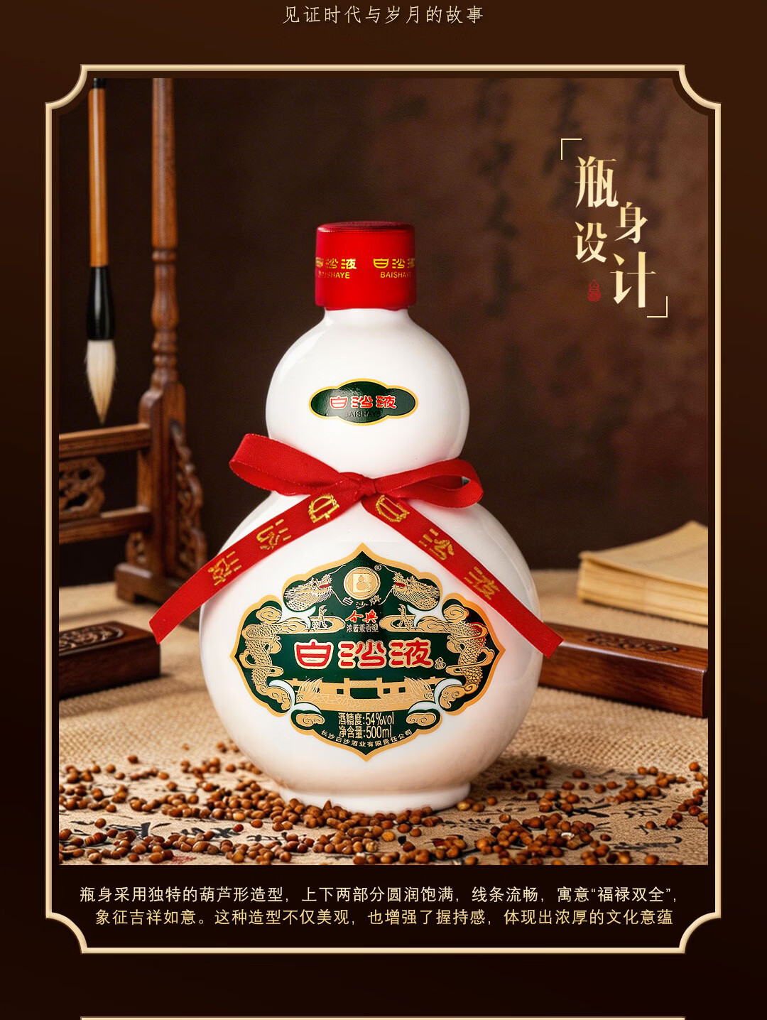 白沙湖南老字号54度白沙液今典浓酱兼香型30年经典葫芦陈酿纯粮食白酒 54度 500mL 2瓶 双瓶配礼袋