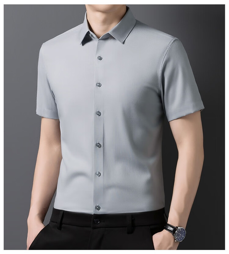 杉杉【20%莫代尔7%亚麻】26年新款高档短袖衬衫男易打理商务休闲衬衣 中灰 39