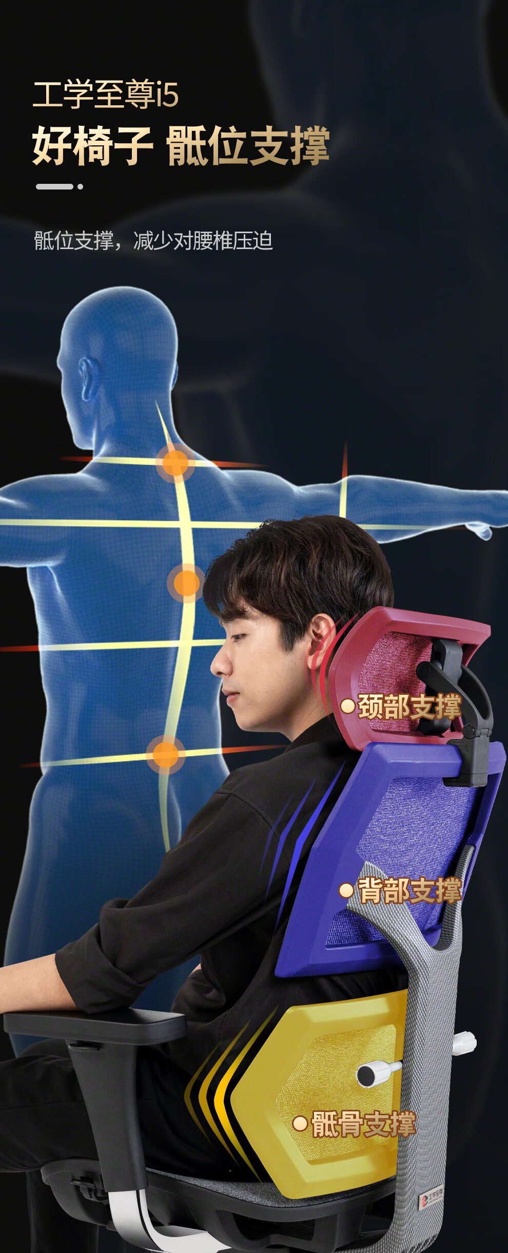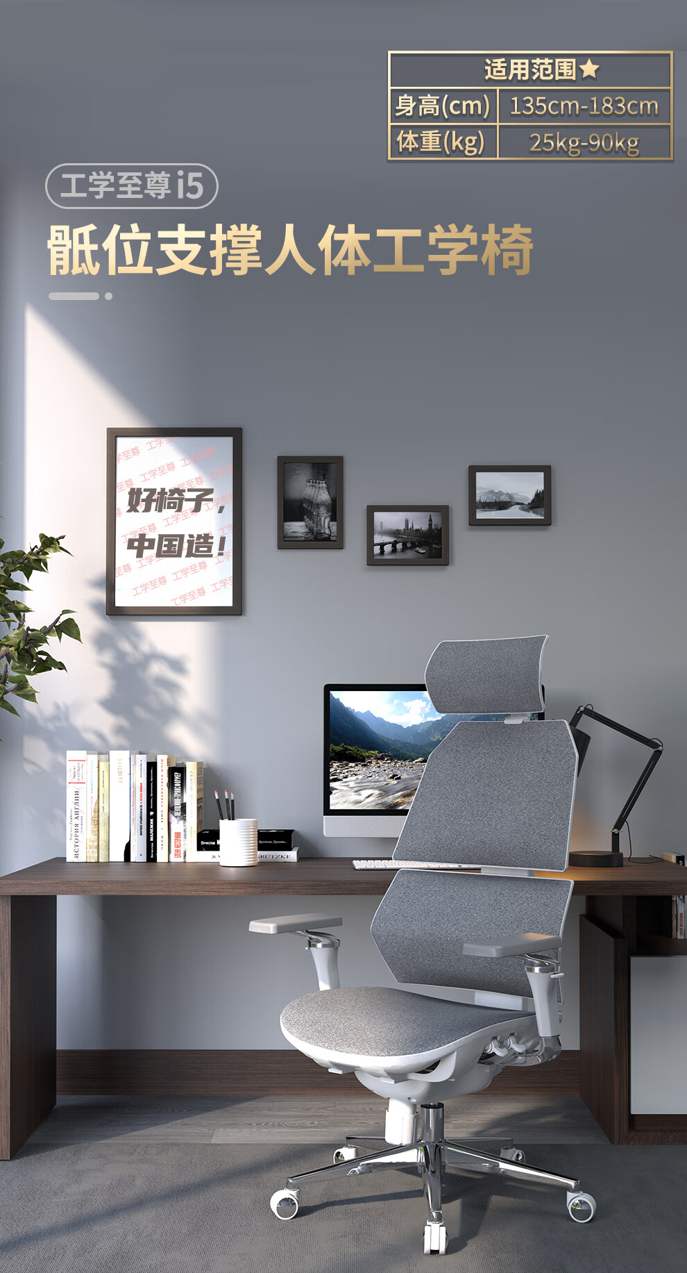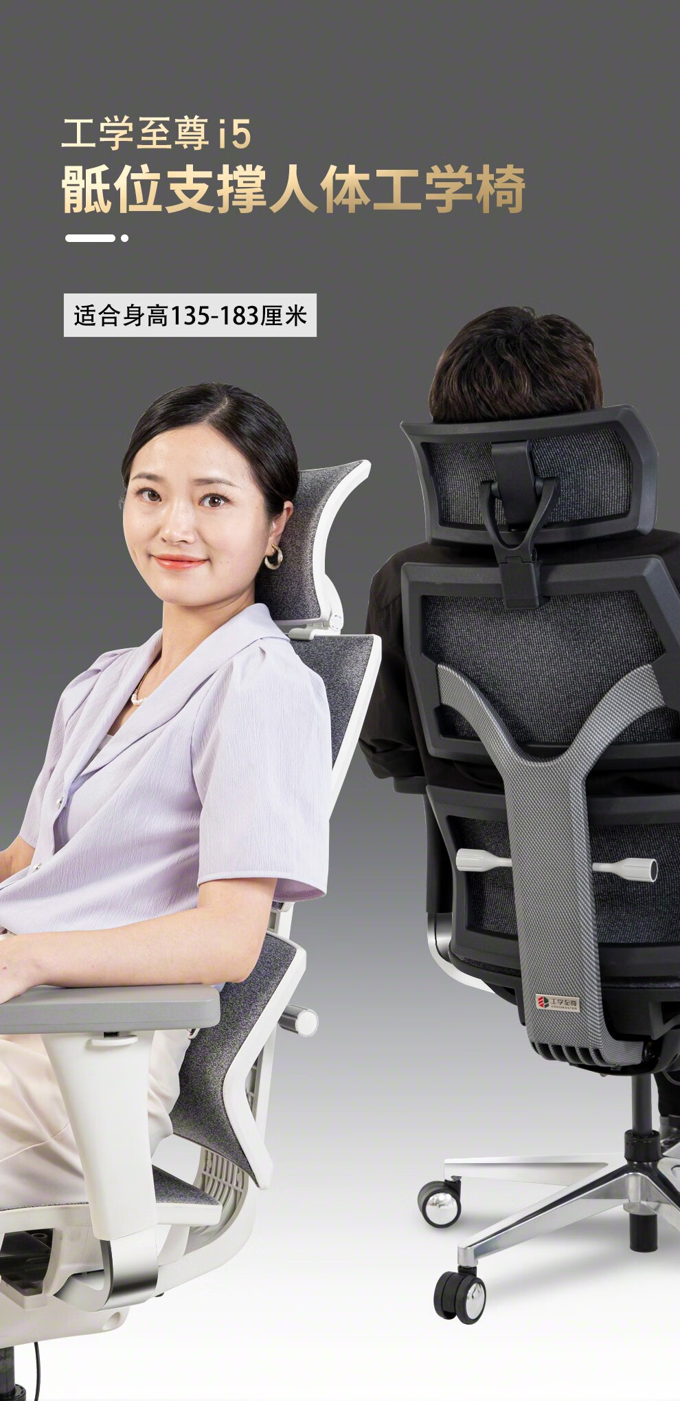 工学至尊i5 骶位支撑女生人体工学椅学生学习椅小个子专用椅子女士电脑椅 黑框科技灰(8D扶手)