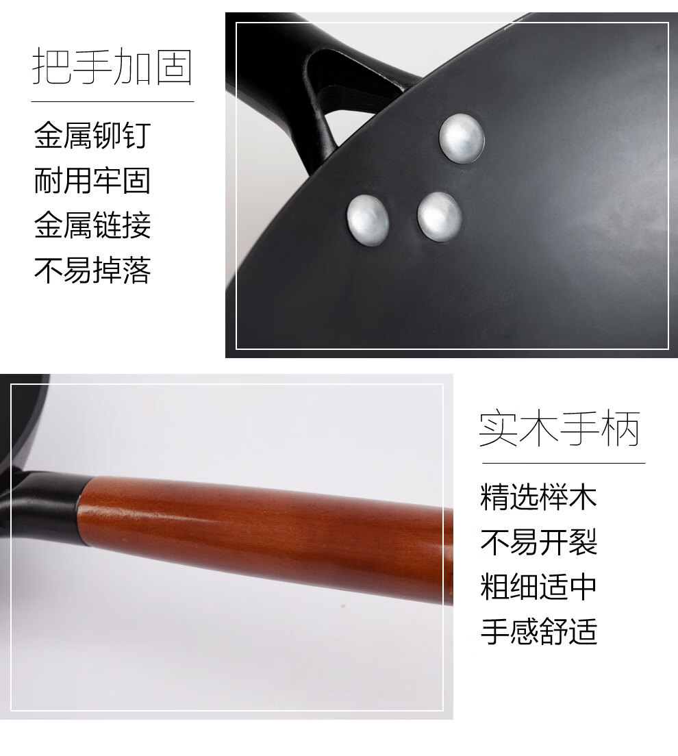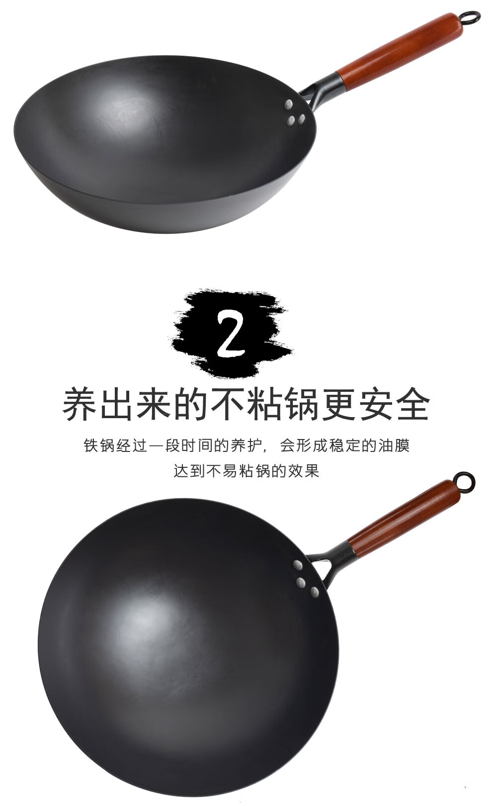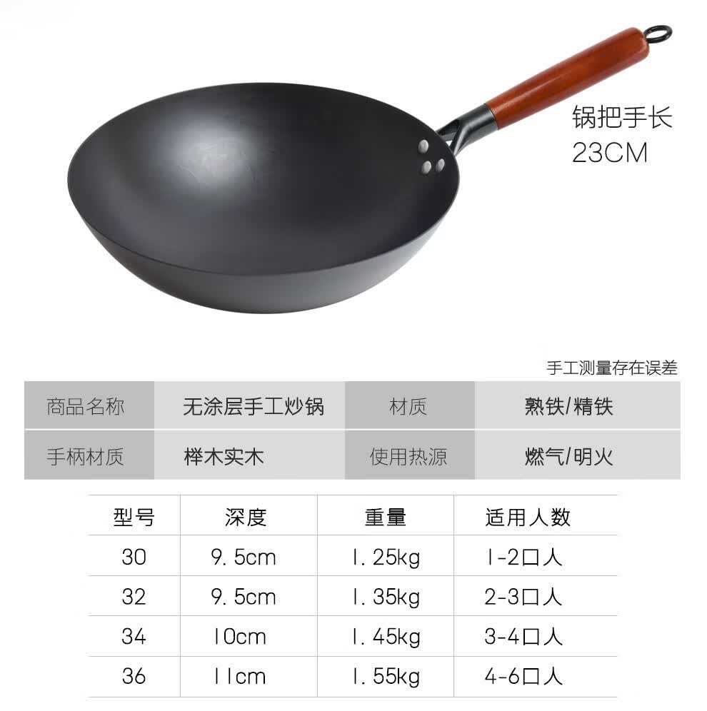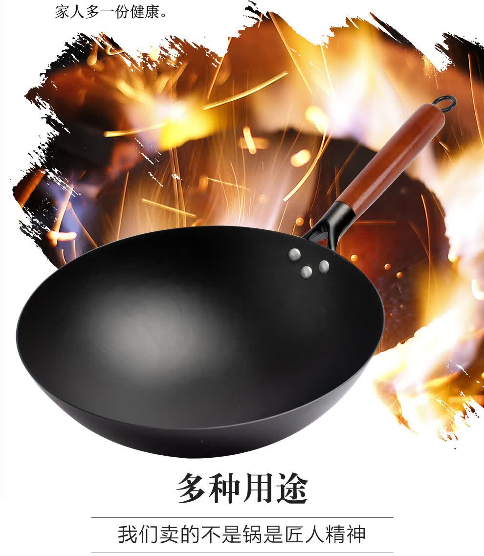 冀创章丘炒菜锅老式铁锅已开锅炒锅手工无涂层家用不粘锅燃气灶适用 无涂层精铁炒锅(加耳赠锅盖) 36cm 无涂层精铁炒锅