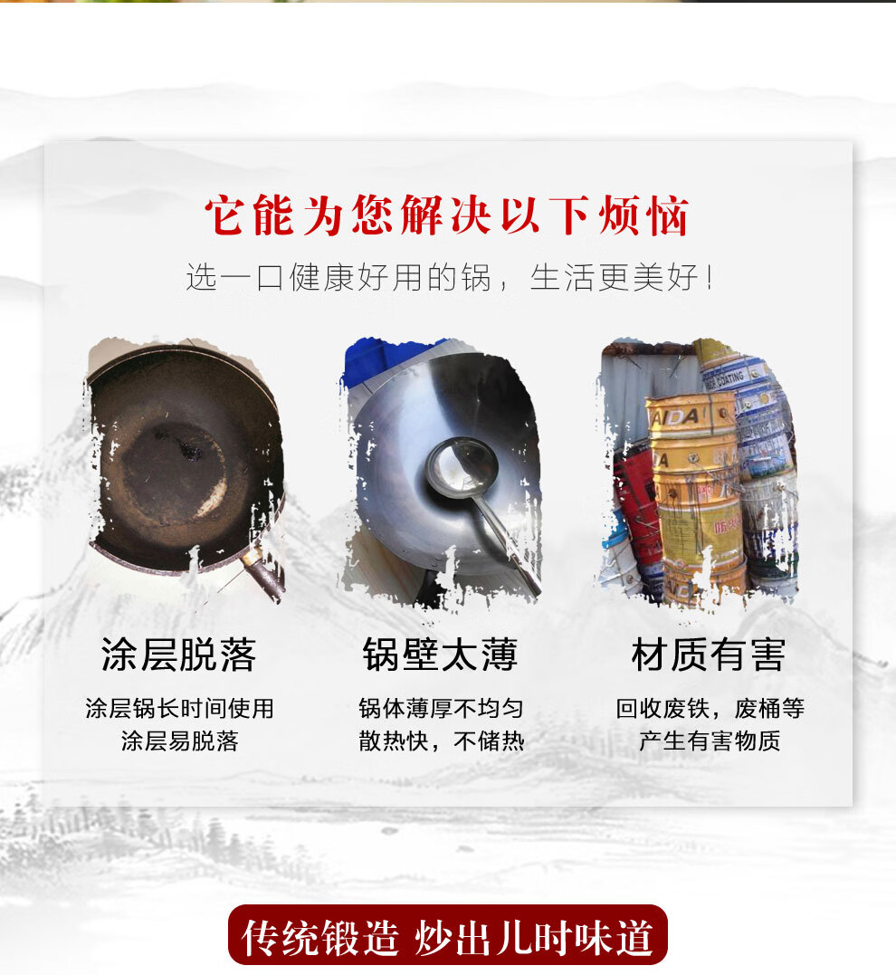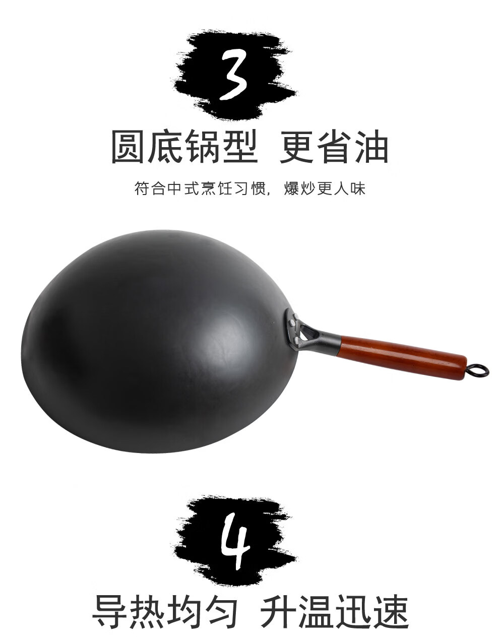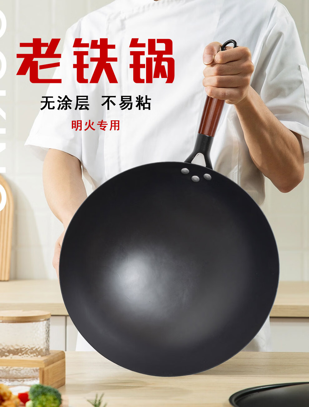 冀创章丘炒菜锅老式铁锅已开锅炒锅手工无涂层家用不粘锅燃气灶适用 无涂层精铁炒锅(加耳赠锅盖) 36cm 无涂层精铁炒锅