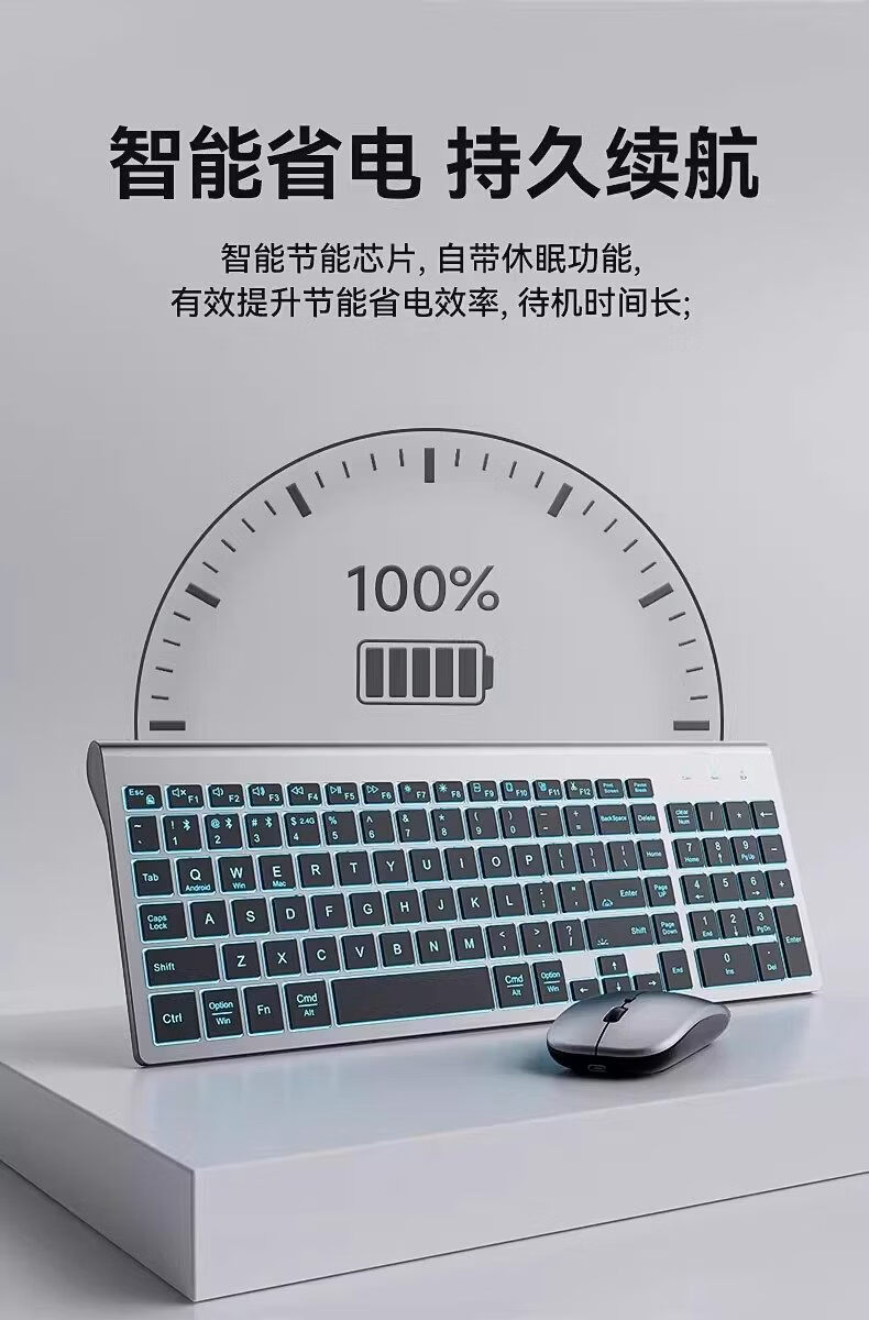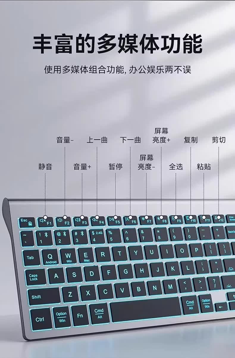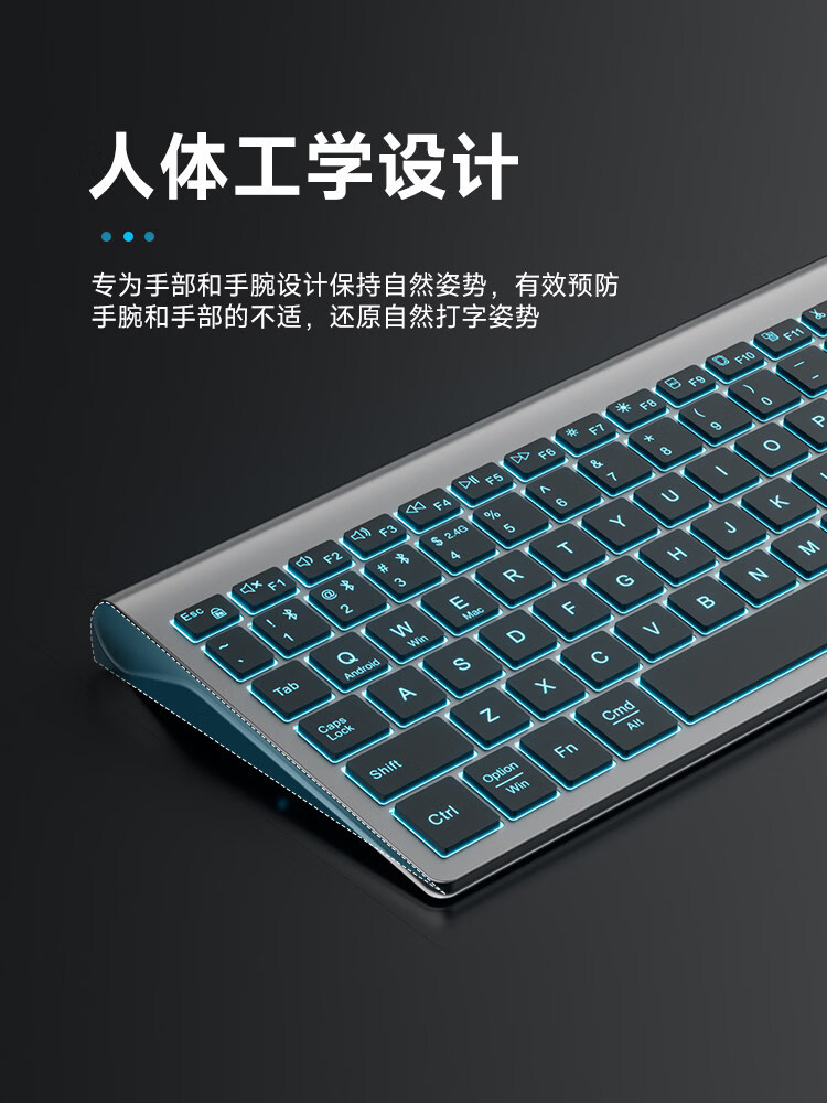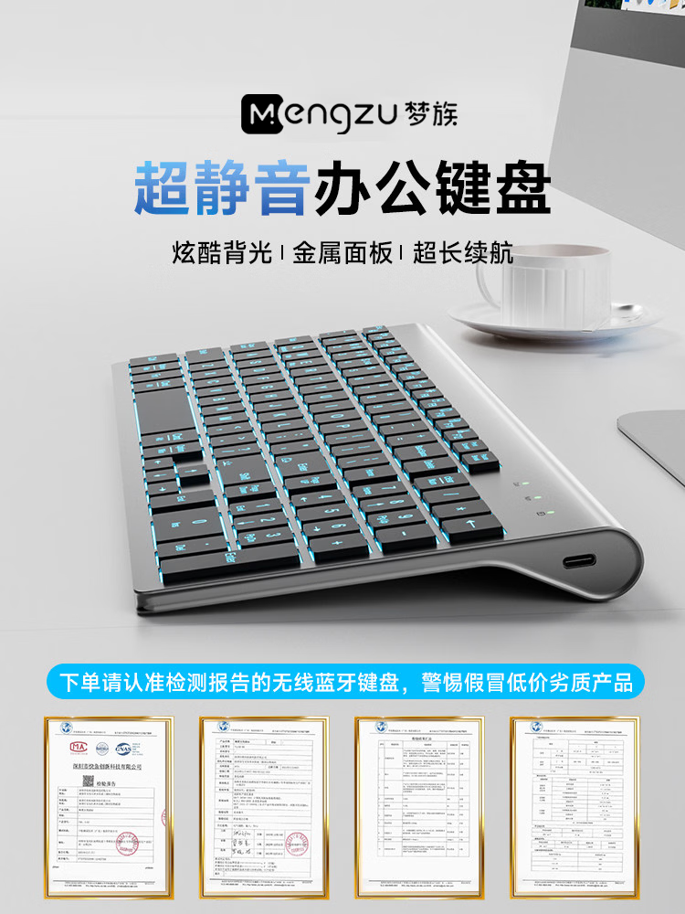 梦族无线蓝牙发光键盘鼠标套装双模静音笔记本台式电脑办公游戏打字手感好便携超薄可充电键鼠套装外设 黑色背光版【单键盘】三模连接+静音按键+超长续航
