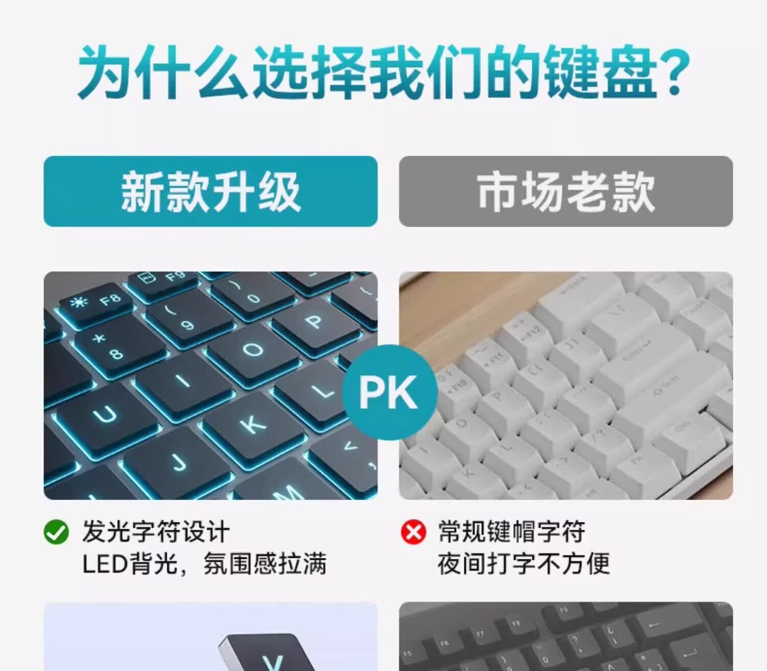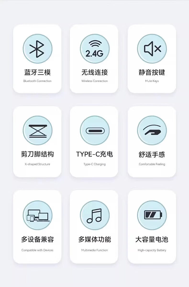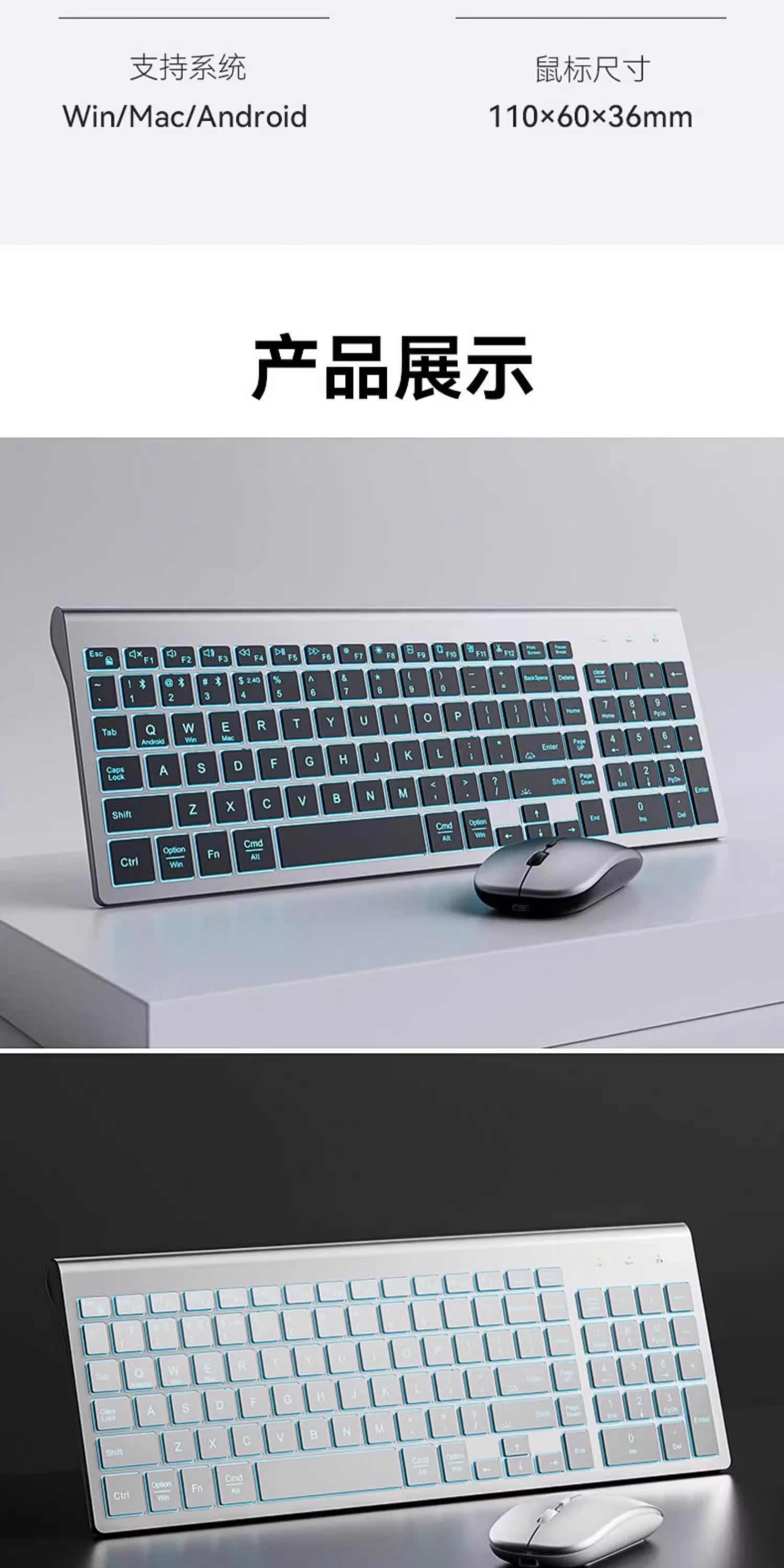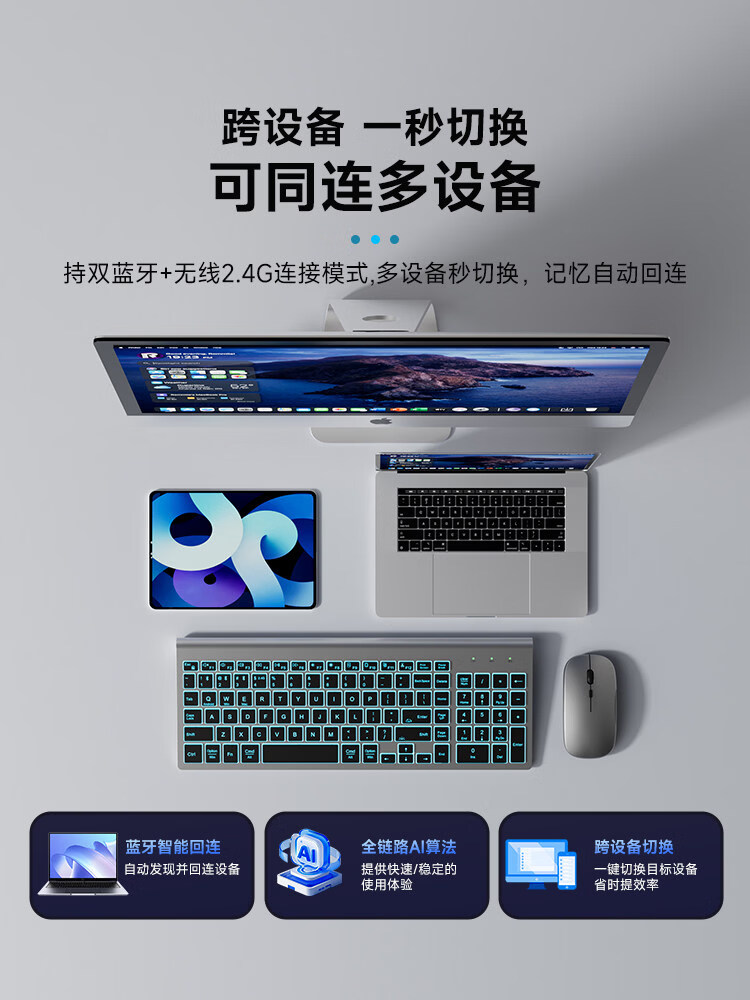 梦族无线蓝牙发光键盘鼠标套装双模静音笔记本台式电脑办公游戏打字手感好便携超薄可充电键鼠套装外设 黑色背光版【单键盘】三模连接+静音按键+超长续航