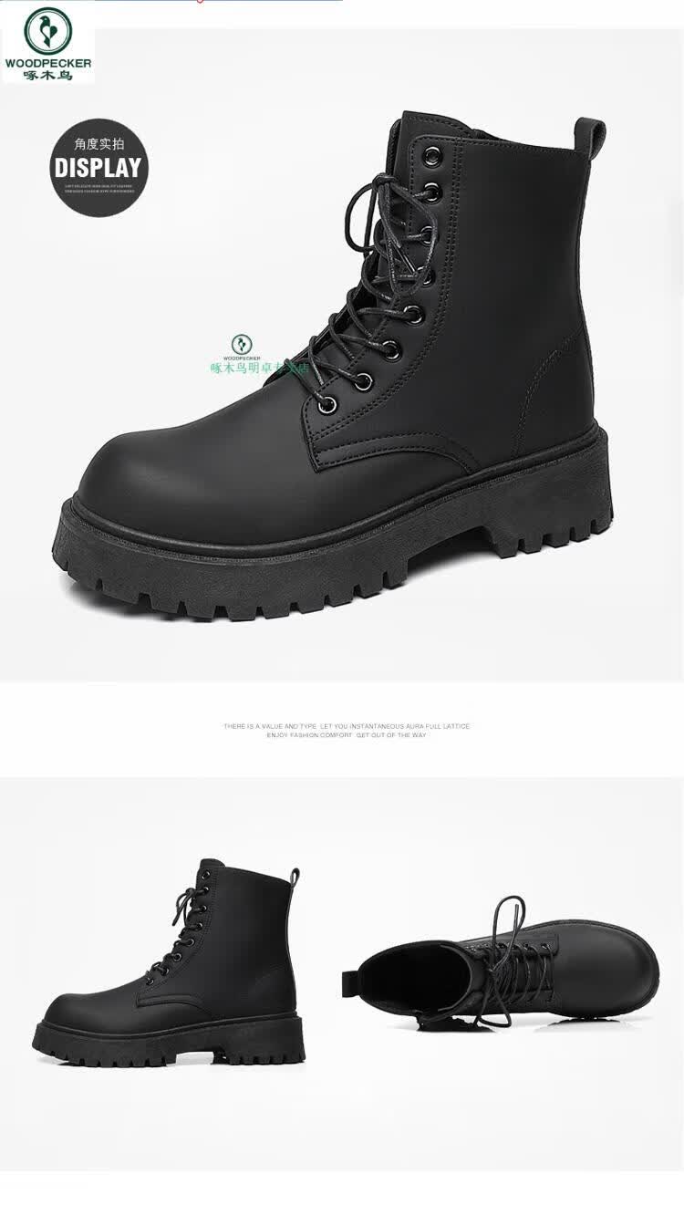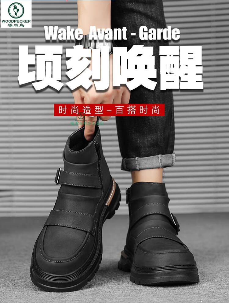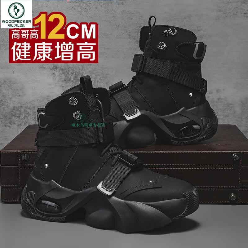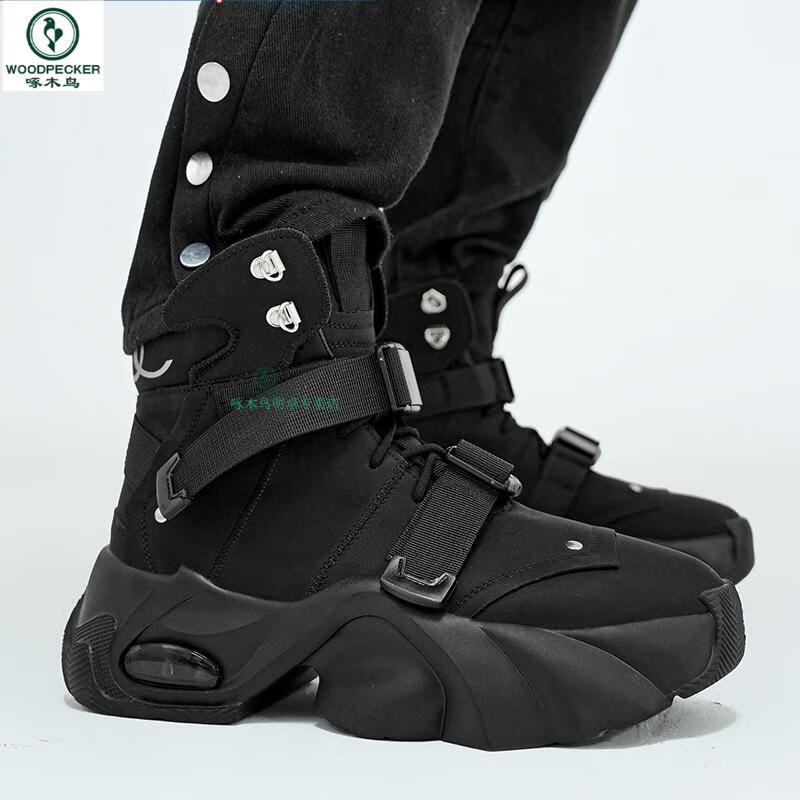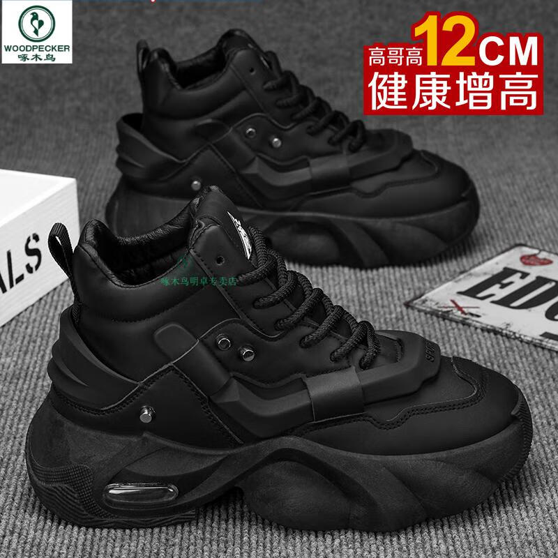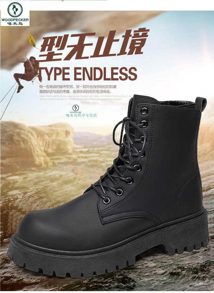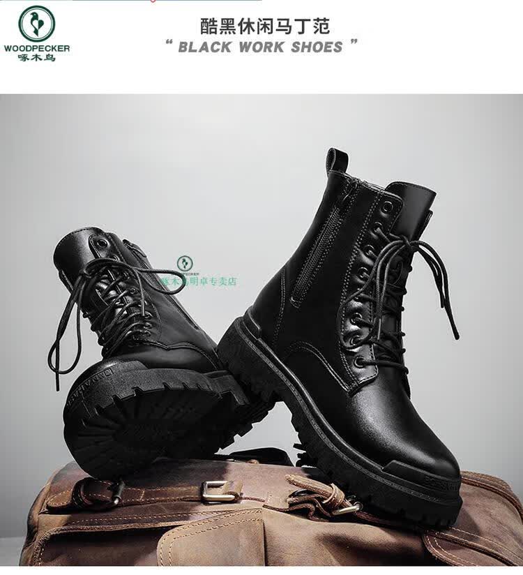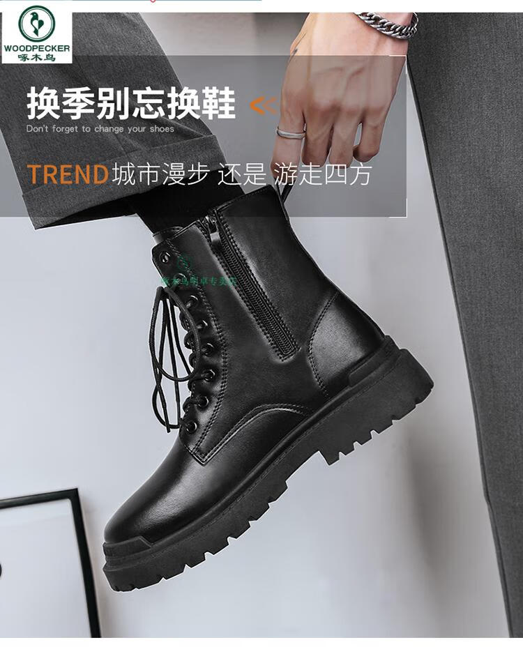 啄木鸟黑色鞋子休闲增高鞋12cm马丁靴男真皮英伦风隐形内增高机车靴 黑色直筒六孔 增高6cm 38