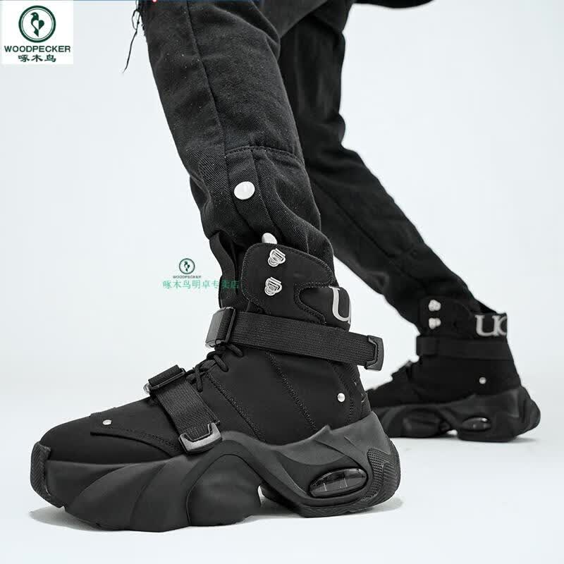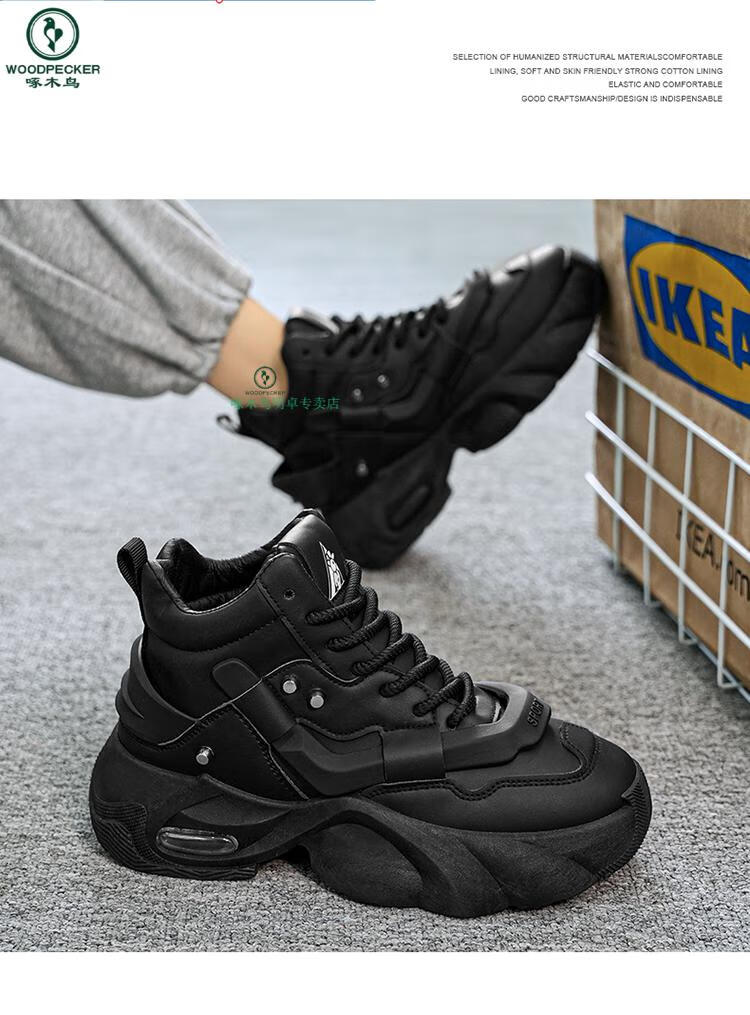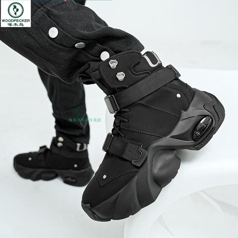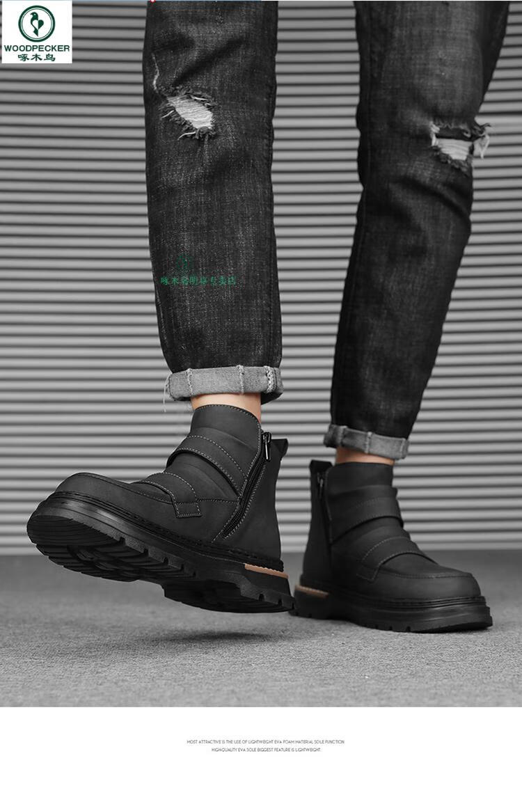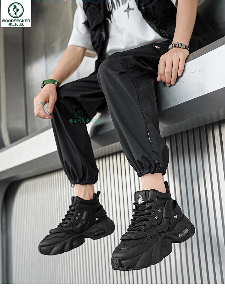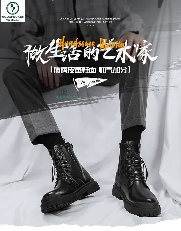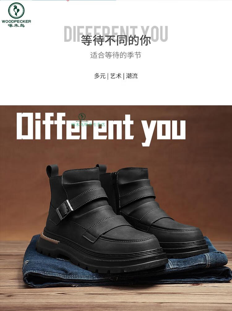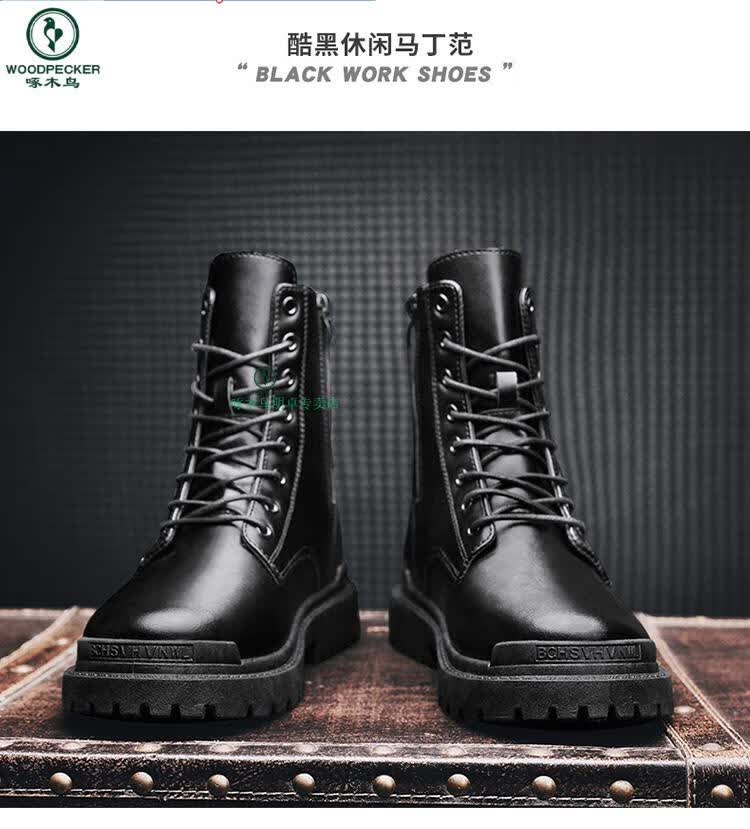 啄木鸟黑色鞋子休闲增高鞋12cm马丁靴男真皮英伦风隐形内增高机车靴 黑色直筒六孔 增高6cm 38