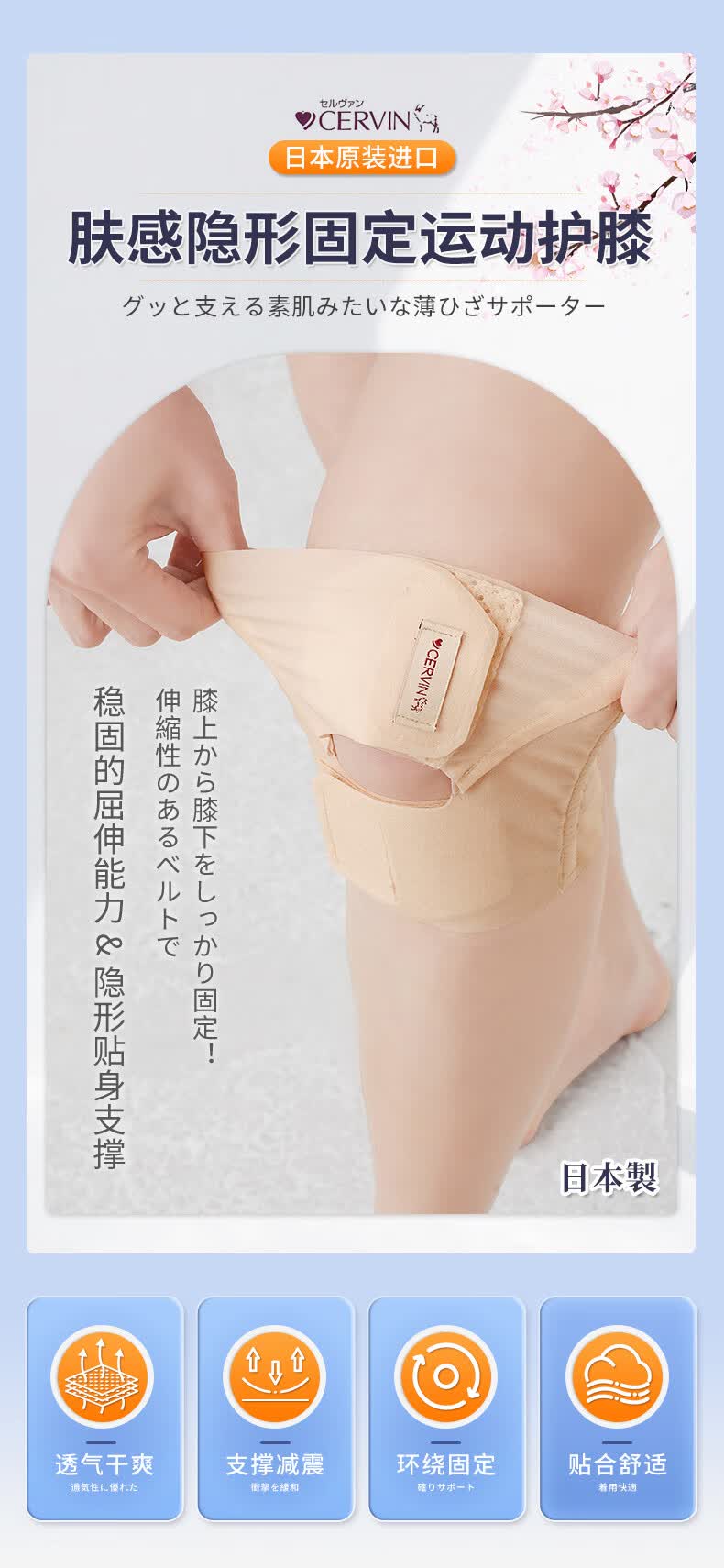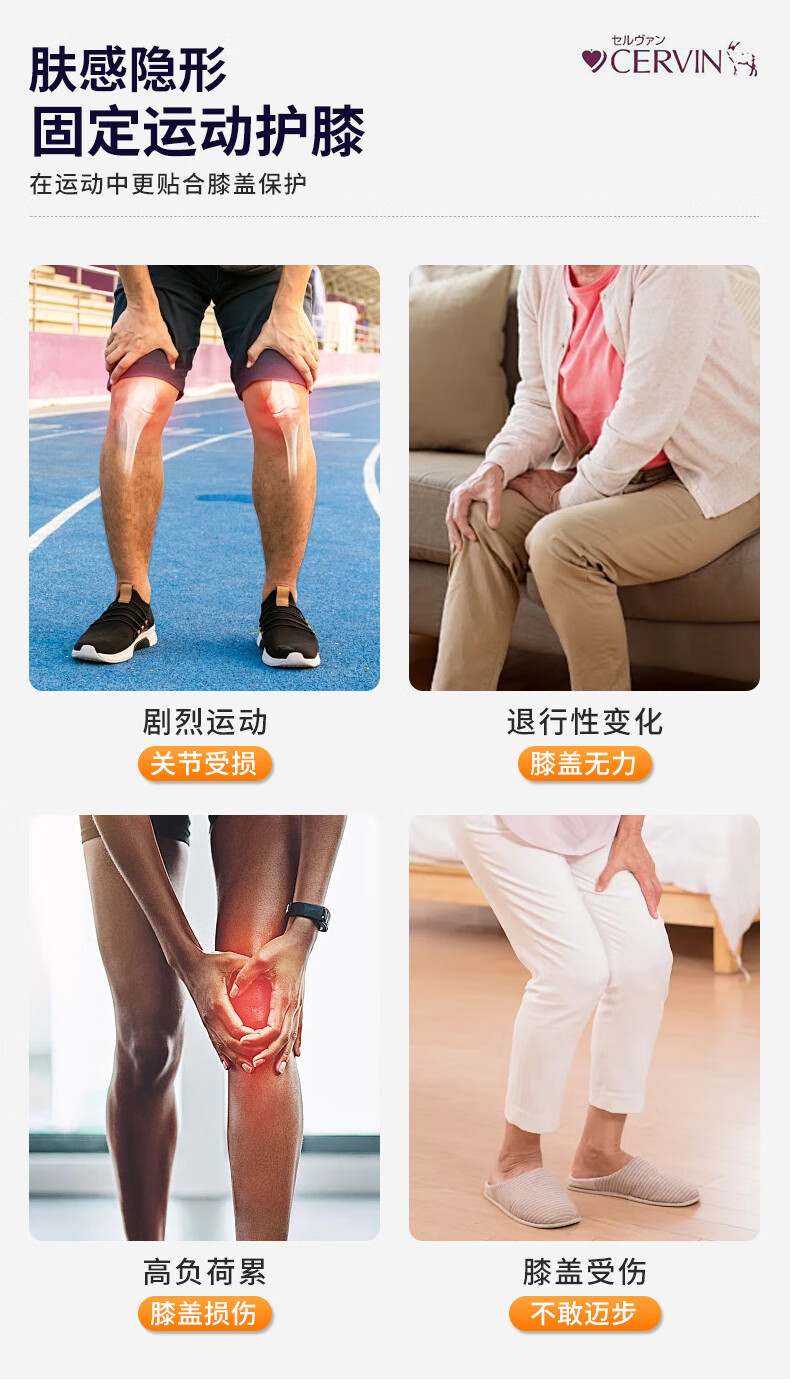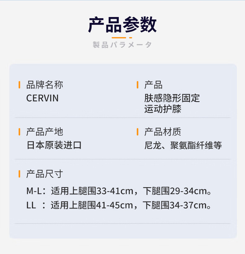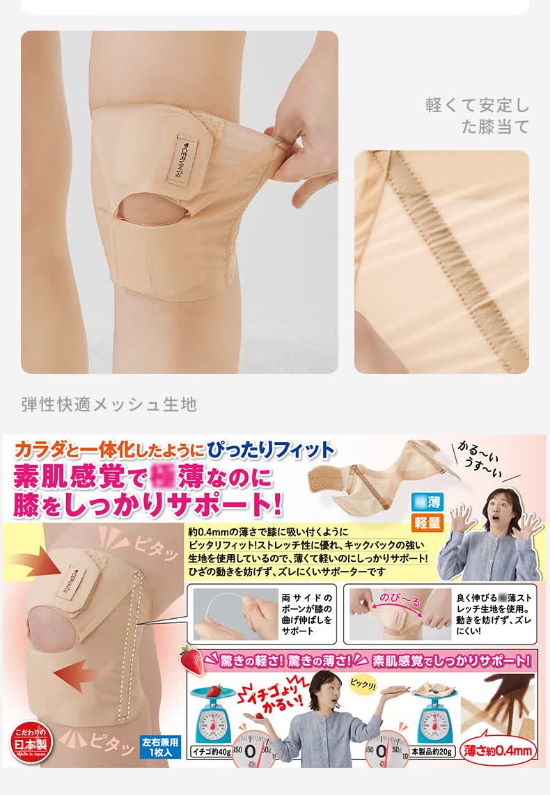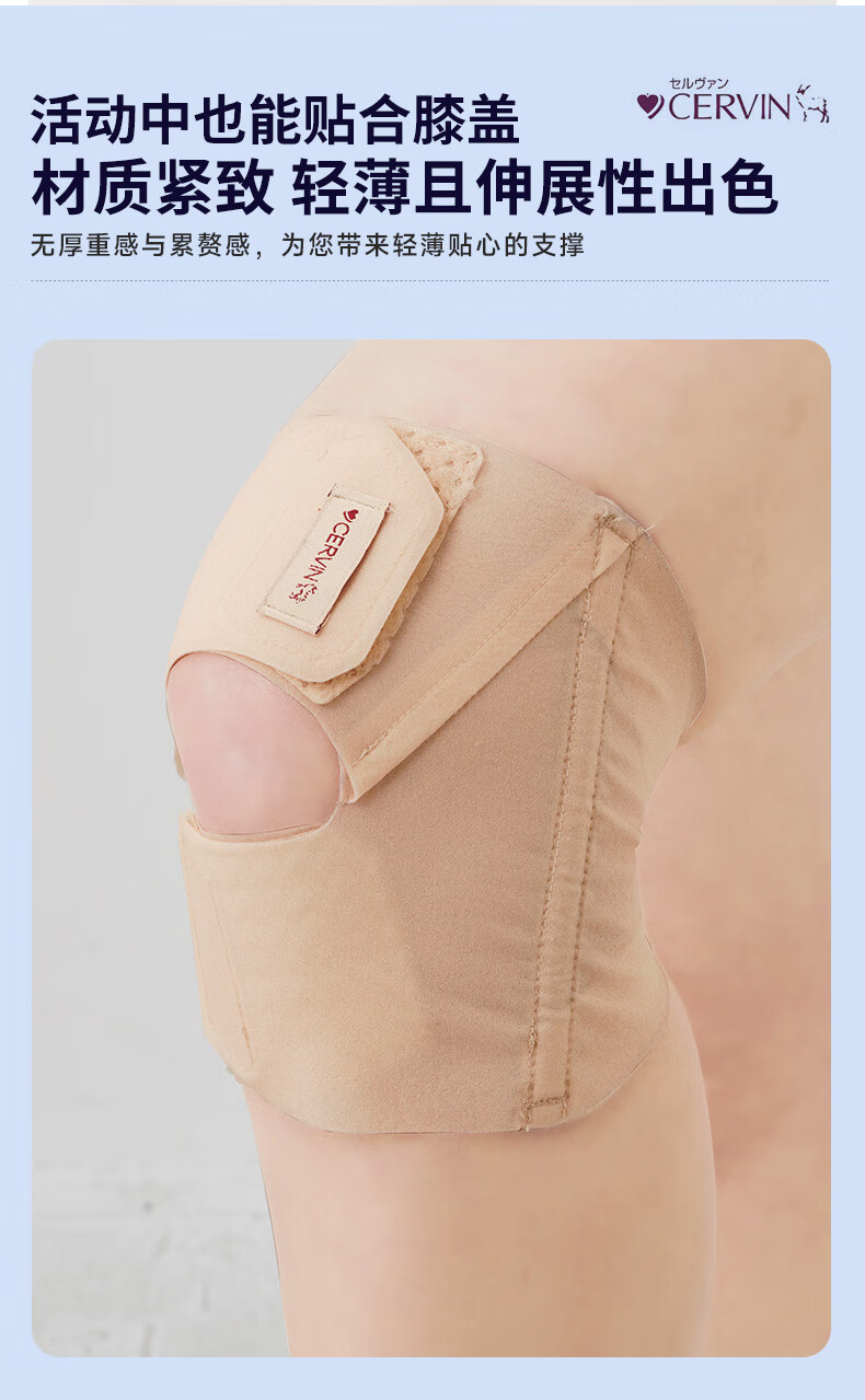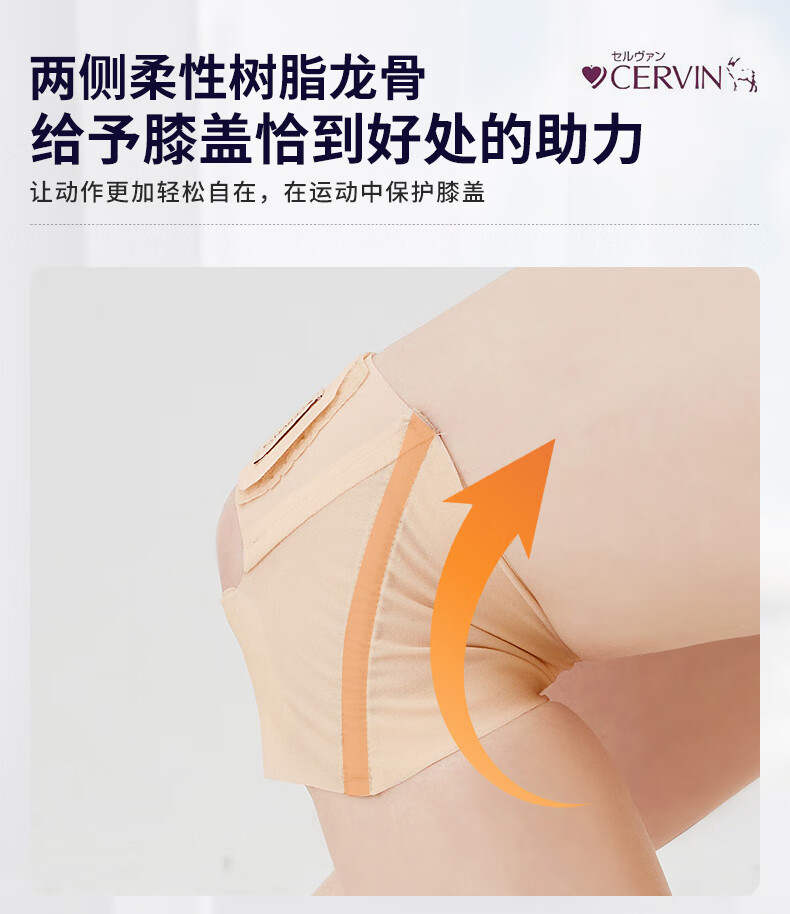 CERVIN日本原装进口肤感隐形固定运动护膝防损伤轻薄透气不显支撑护膝 米黄色 一只装 L-LL上腿围41-45cm下腿围34-37cm