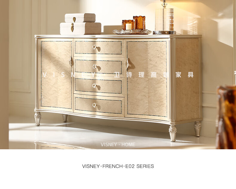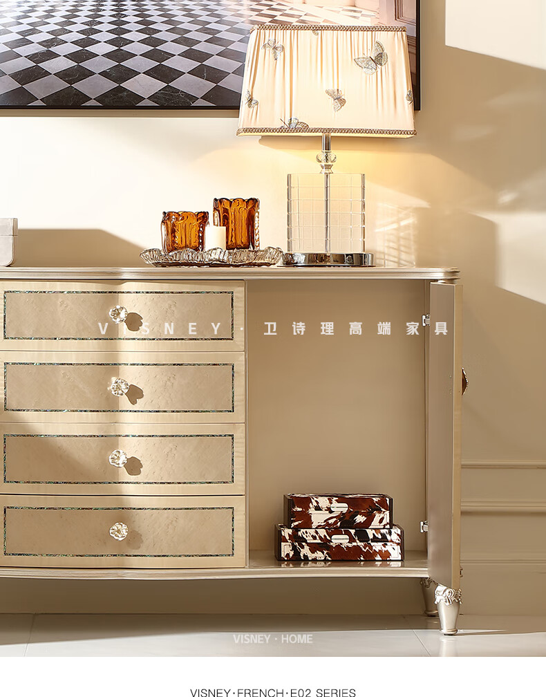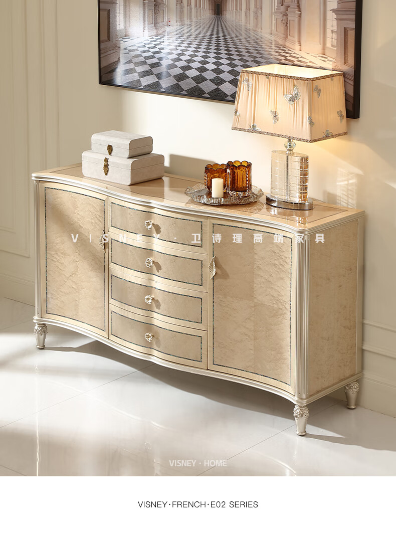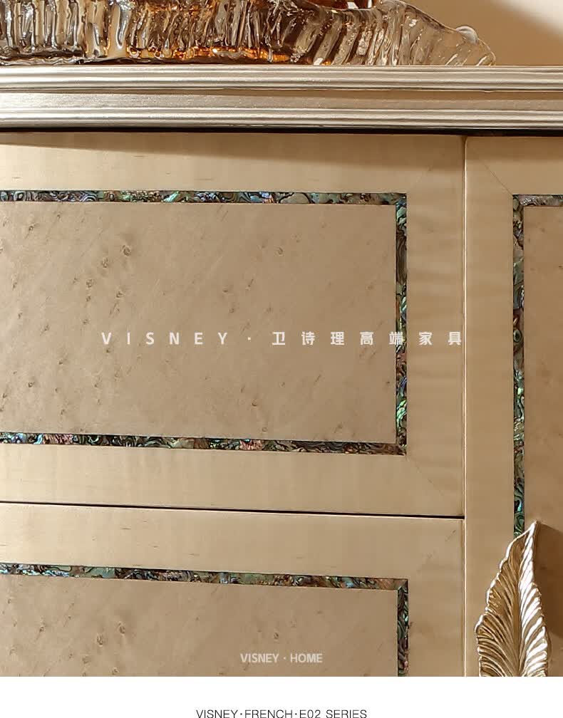卫诗理轻法式高端实木餐边柜欧式罗马尼亚榉木带抽屉储物柜E02 Patrick纯手工彩贝木皮拼花·装饰柜