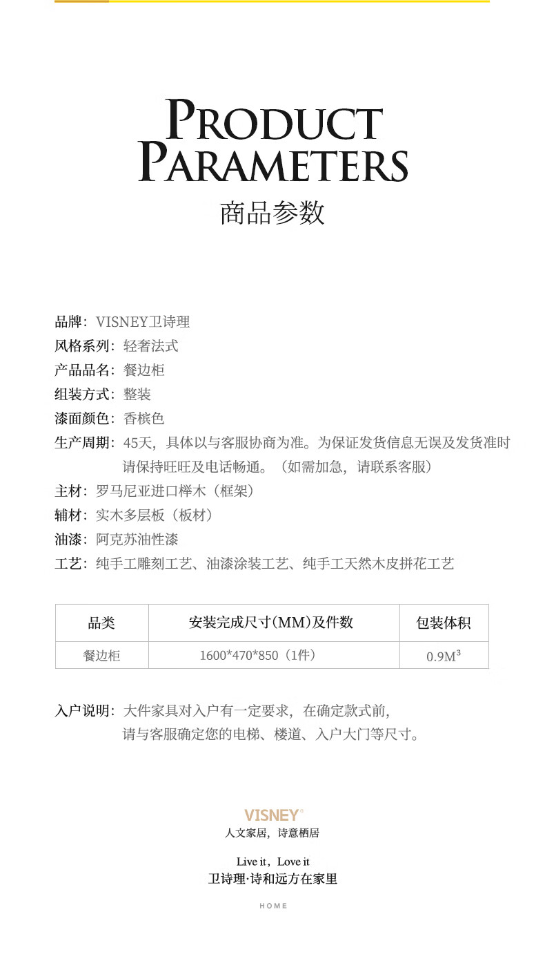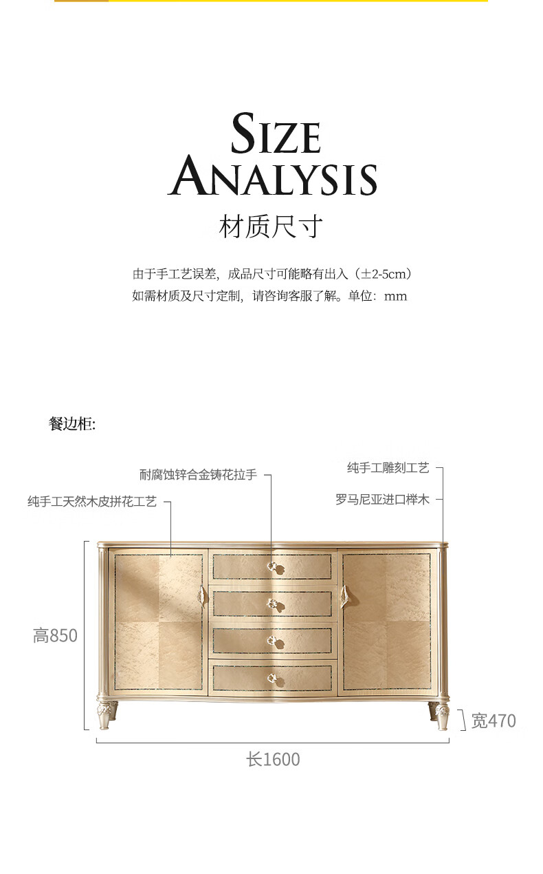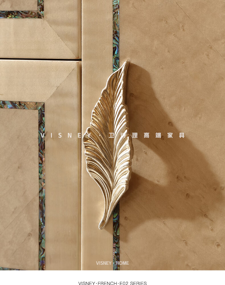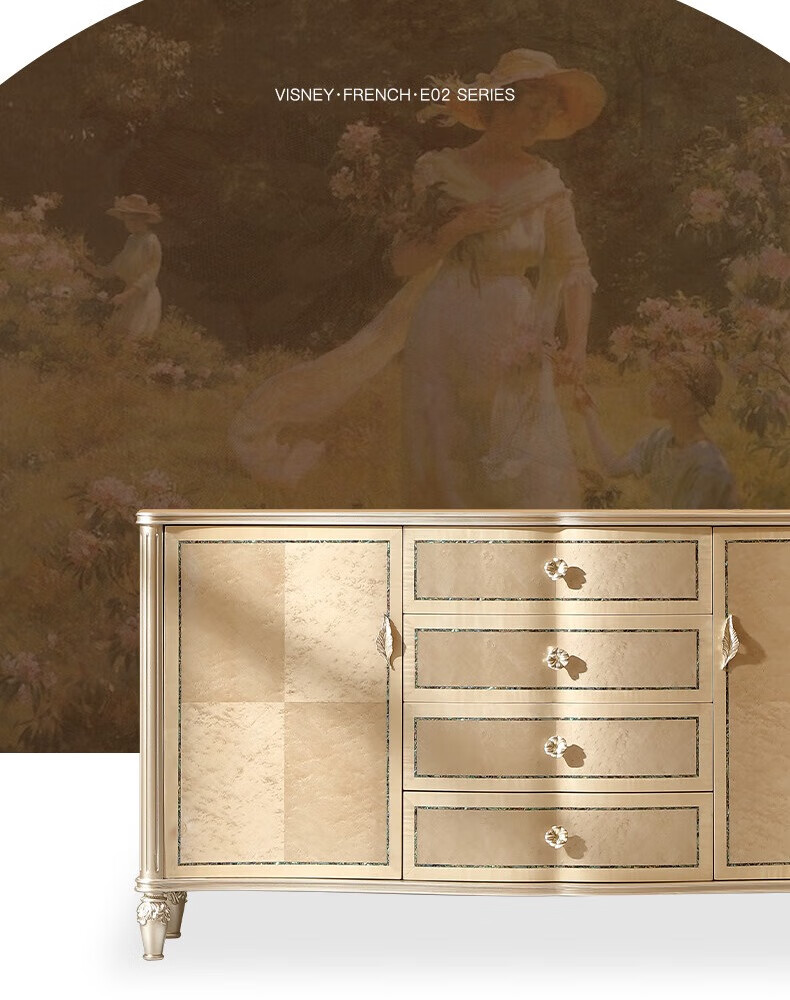卫诗理轻法式高端实木餐边柜欧式罗马尼亚榉木带抽屉储物柜E02 Patrick纯手工彩贝木皮拼花·装饰柜
