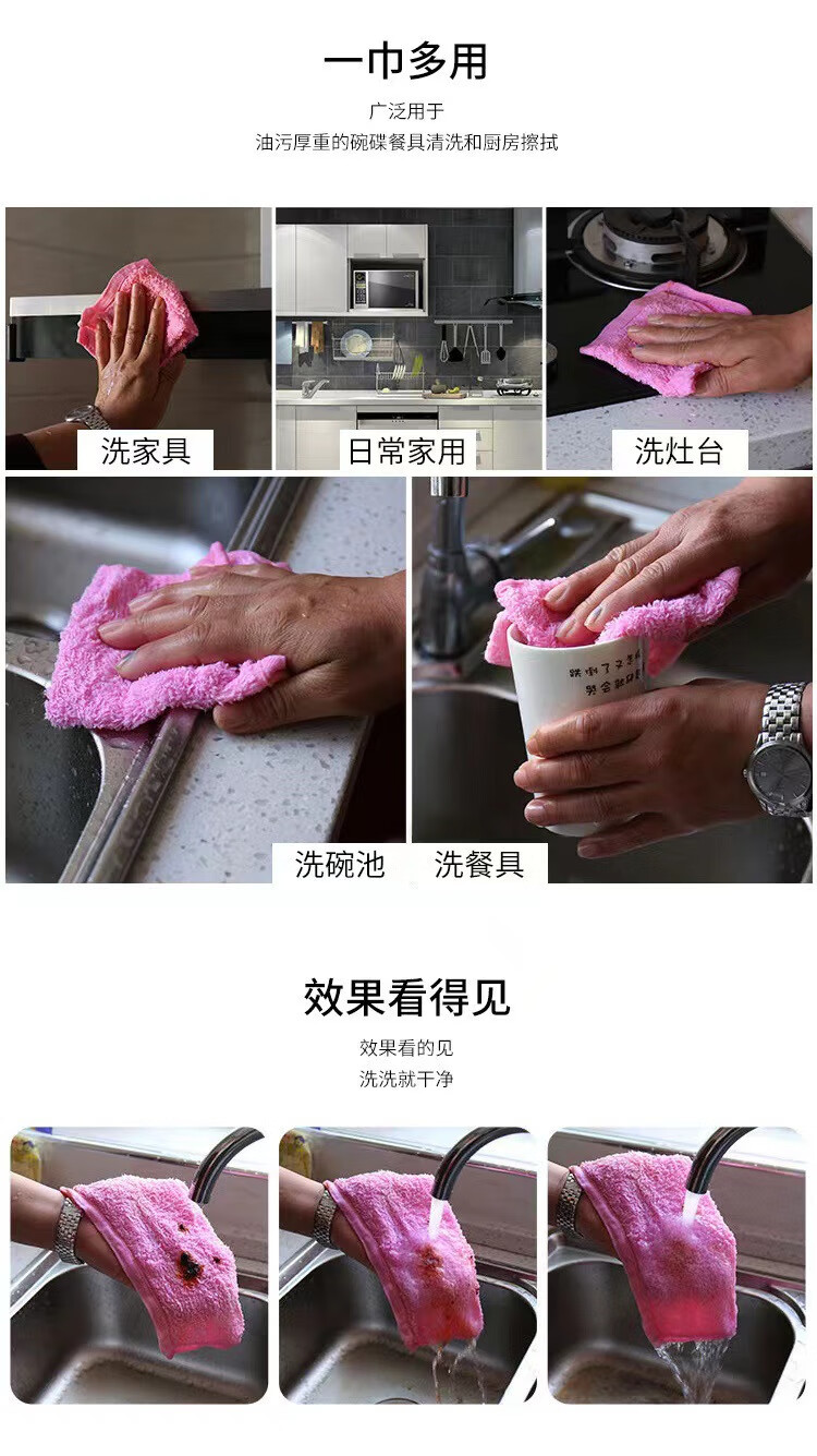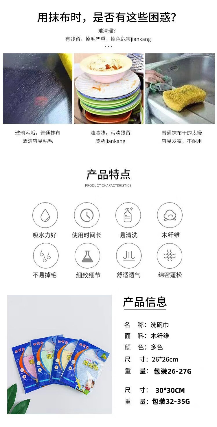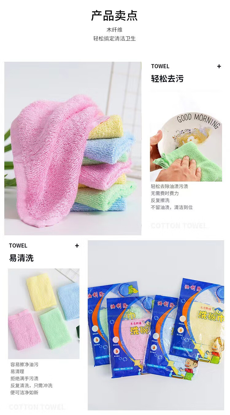 恬舒洗碗巾油利除抹布免洗洁精厨房木纤维清洁懒人多功能洗碗布不沾油 【26*26】独立包装 5条