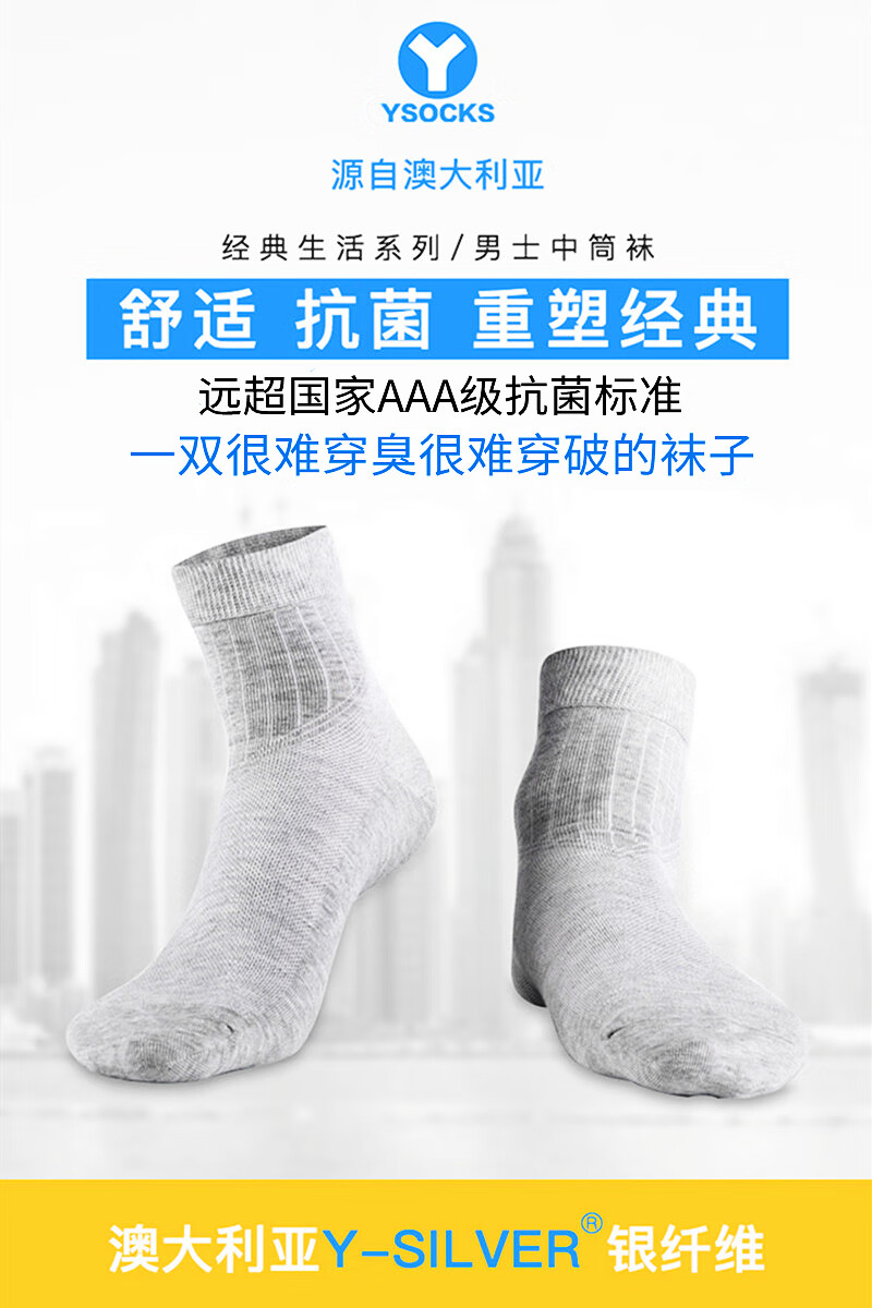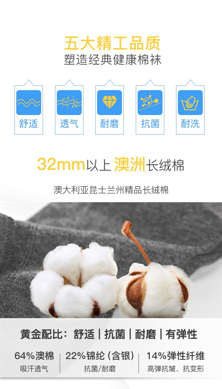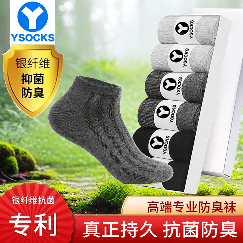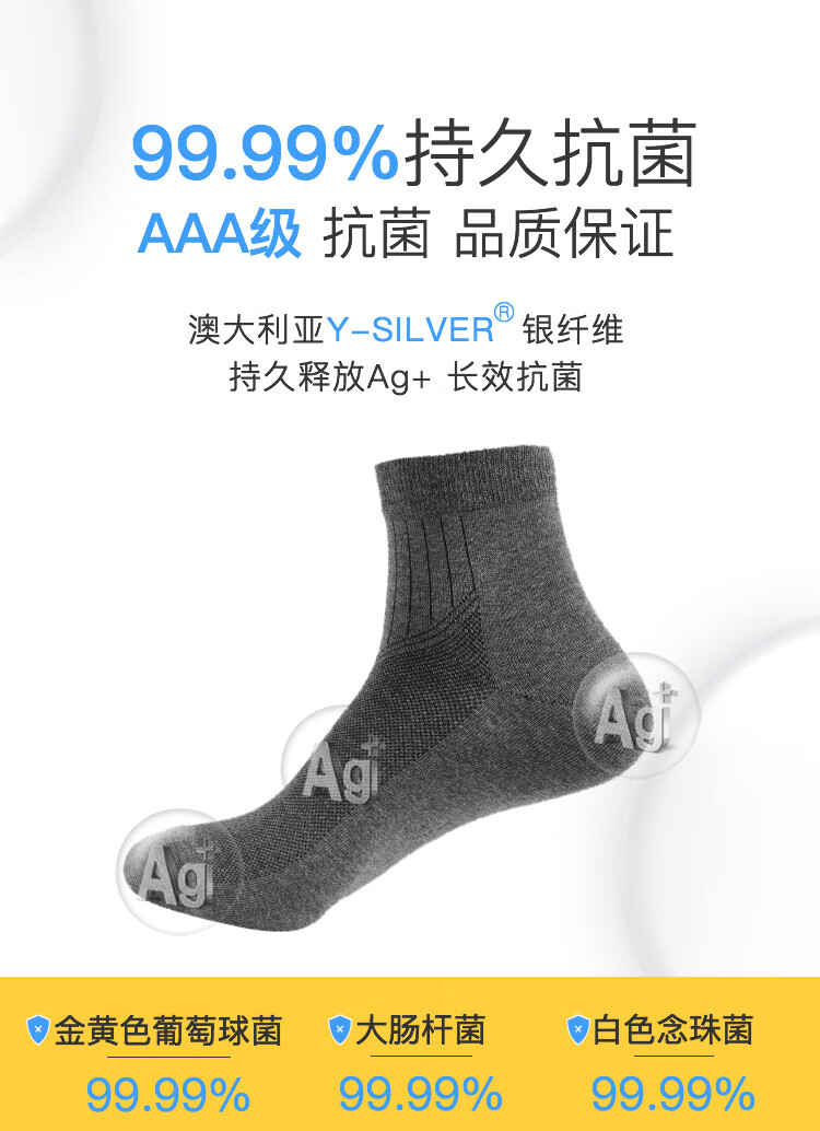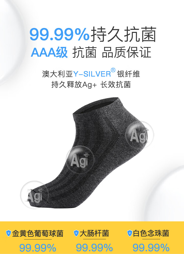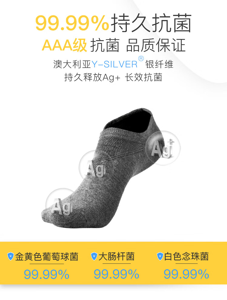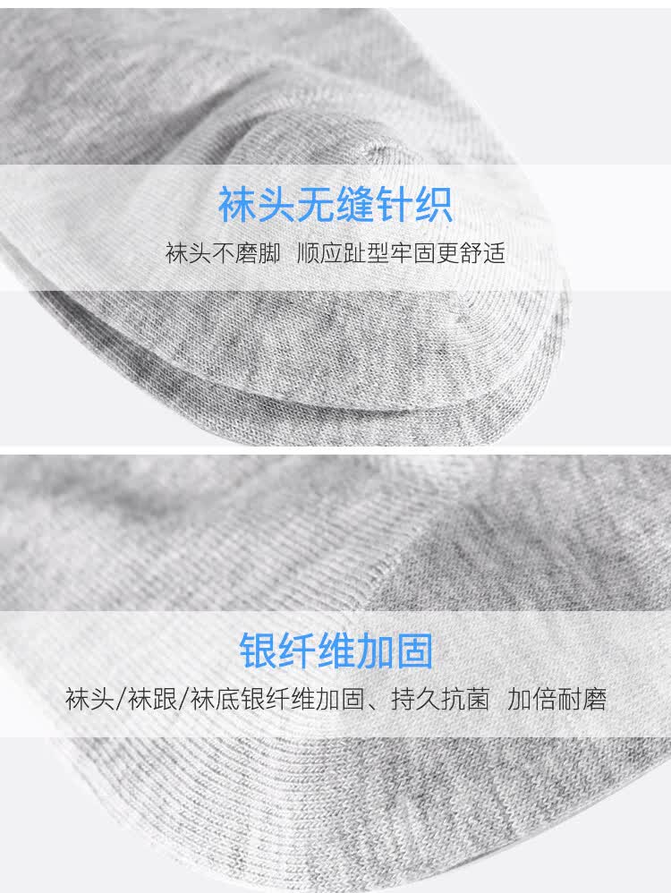 专利防臭袜子男士春夏薄款除臭短袜船袜中筒纯银纤维银离子抗菌棉 经典中筒(浅灰3) 3双 均码