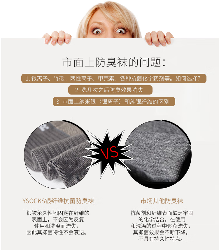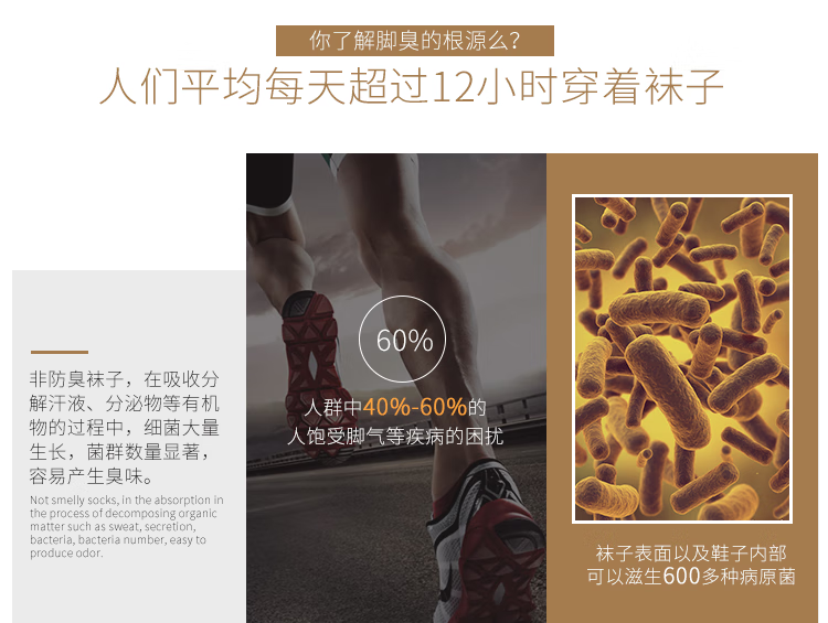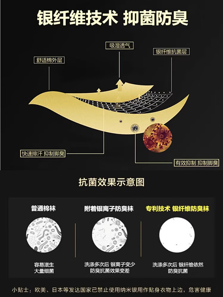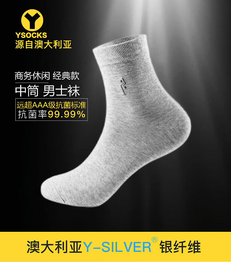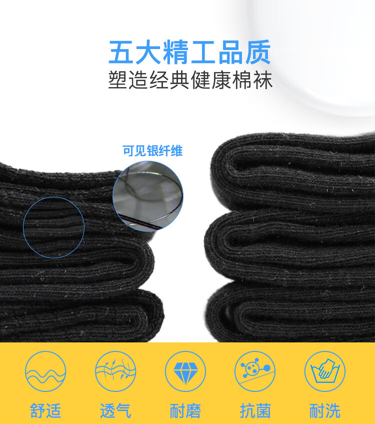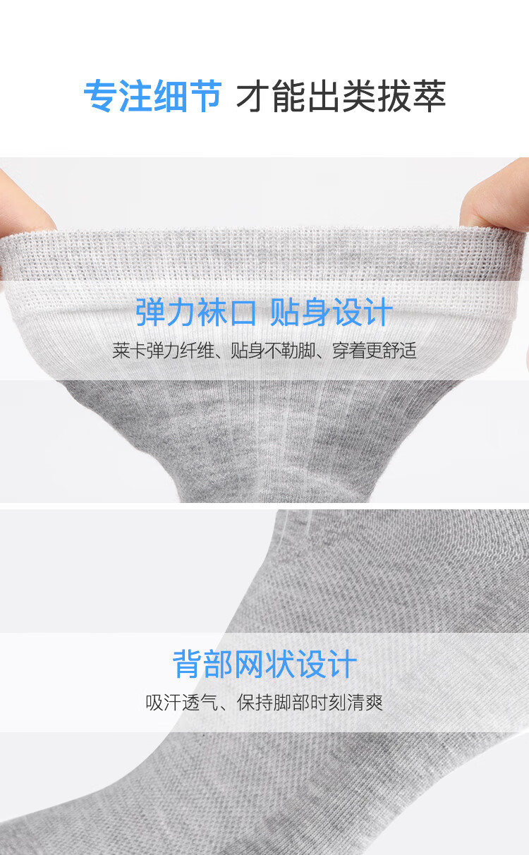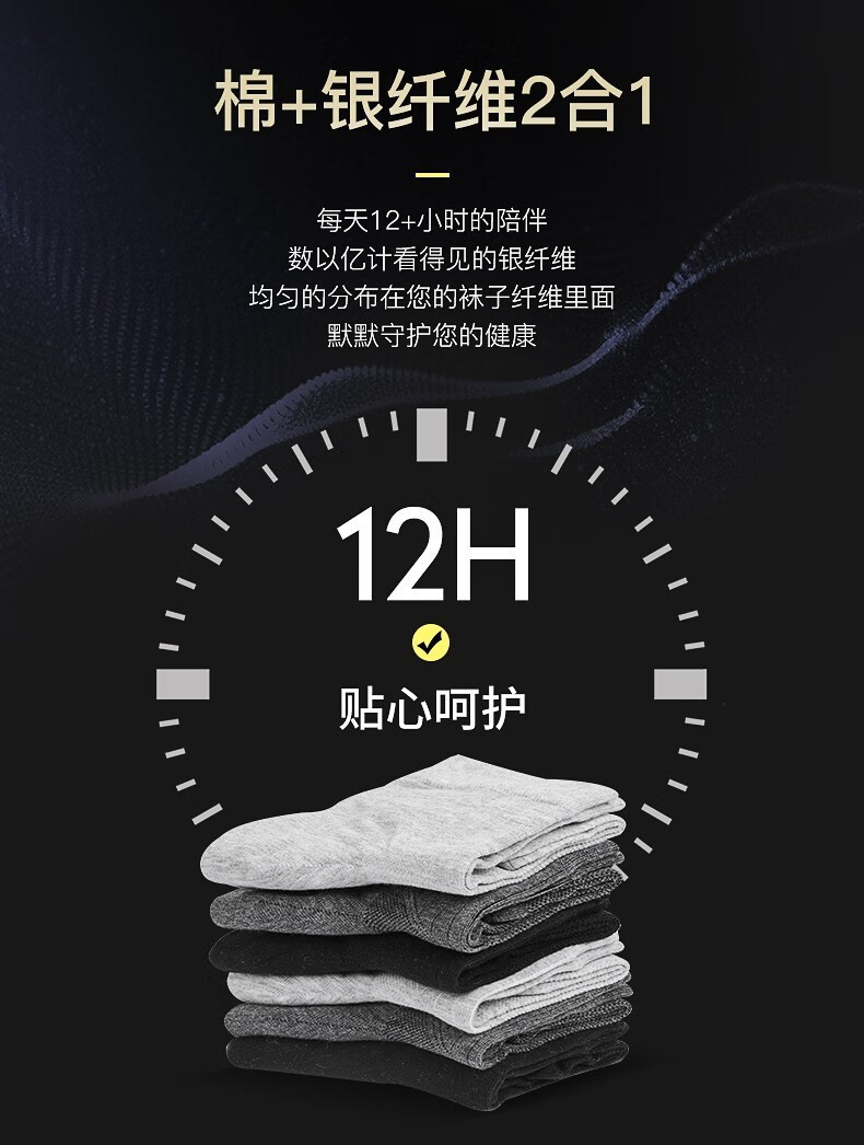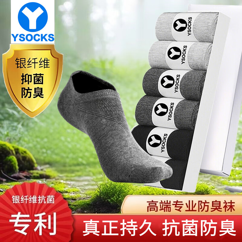 专利防臭袜子男士春夏薄款除臭短袜船袜中筒纯银纤维银离子抗菌棉 经典中筒(浅灰3) 3双 均码