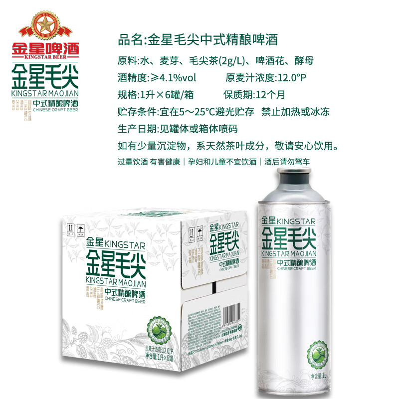 活之酿茉莉花茶中式精酿原浆11°P全麦活啤酒1L*2罐,1L*6整箱包邮 品牌正品,假一赔十 1L 6罐 组合装