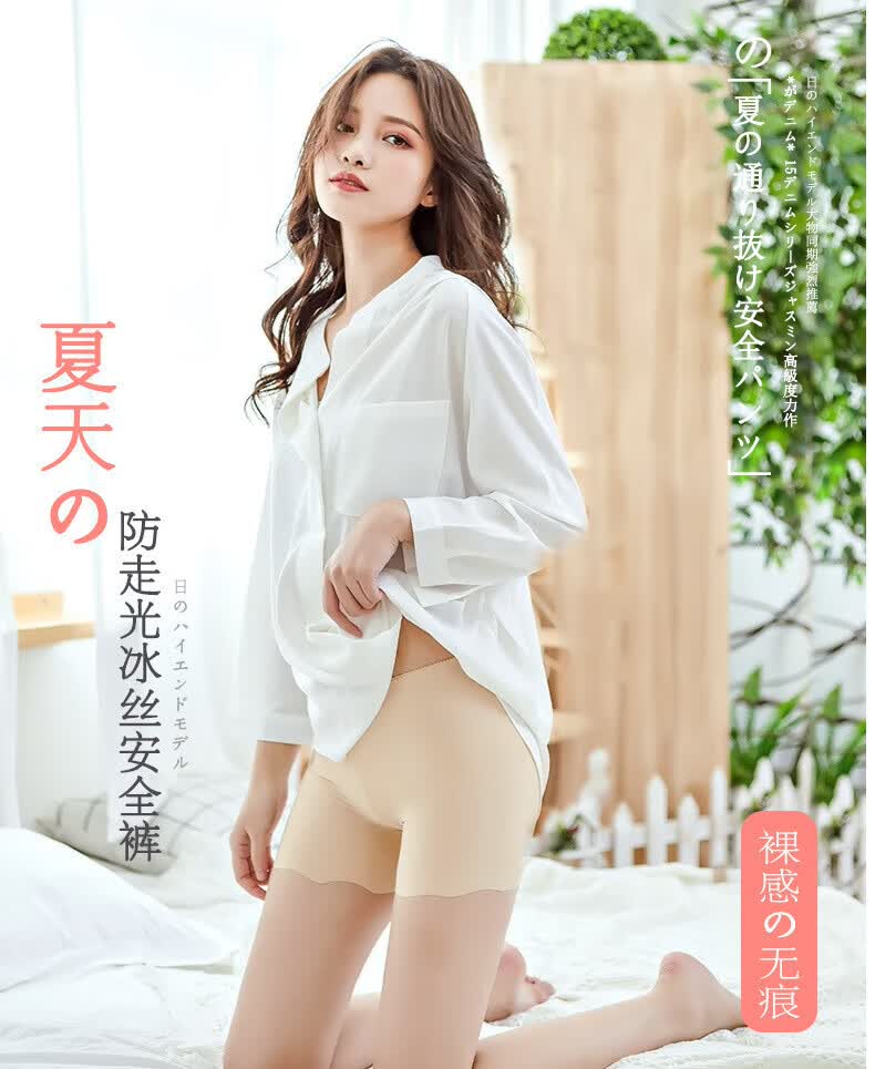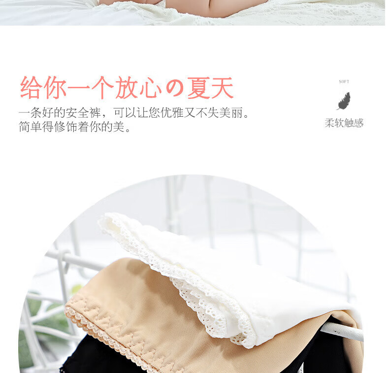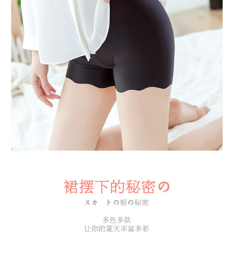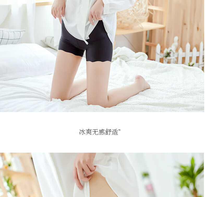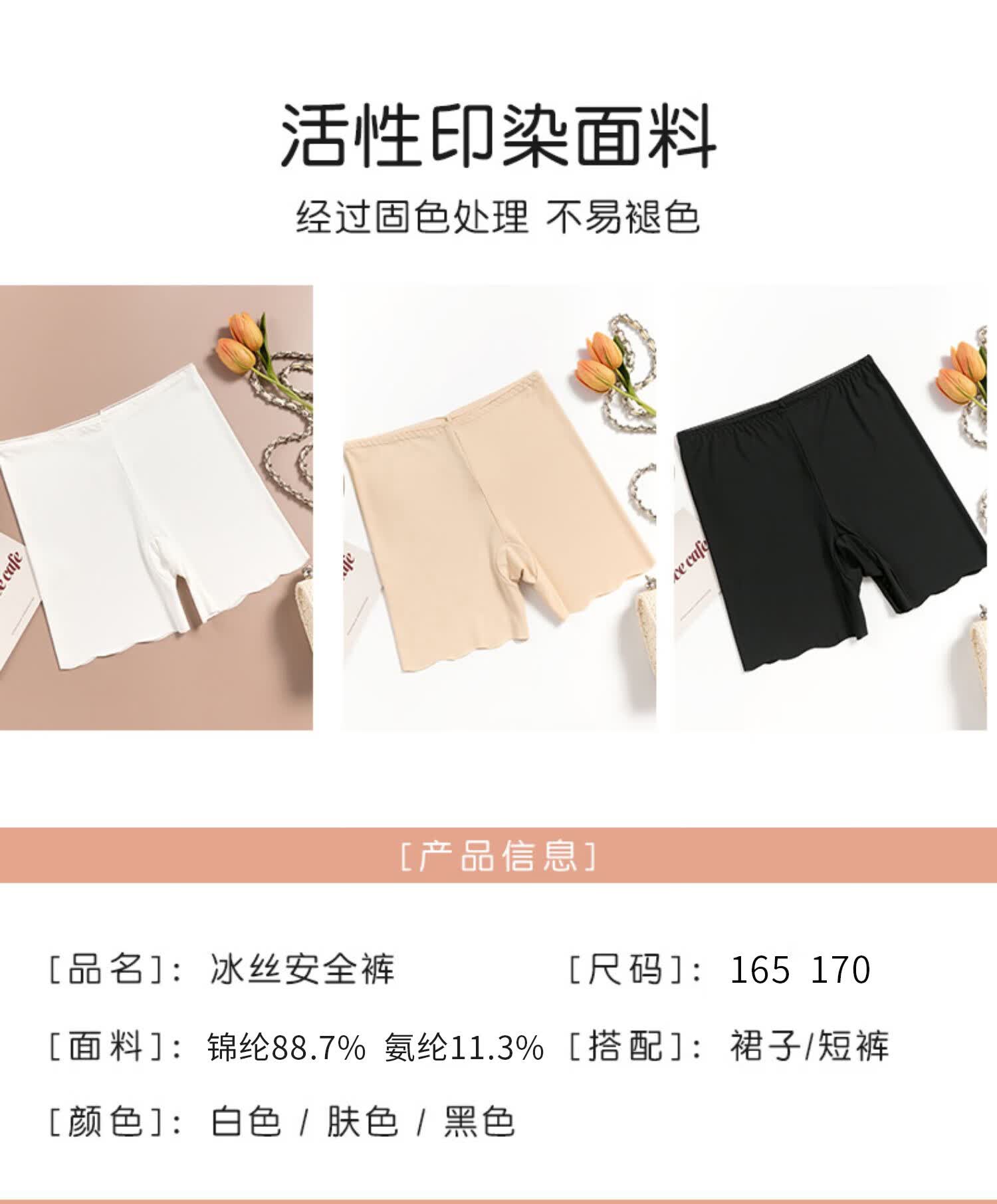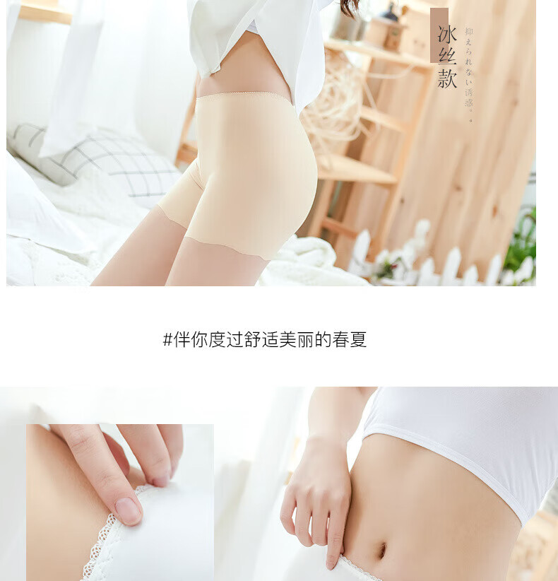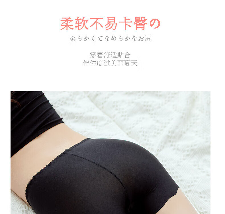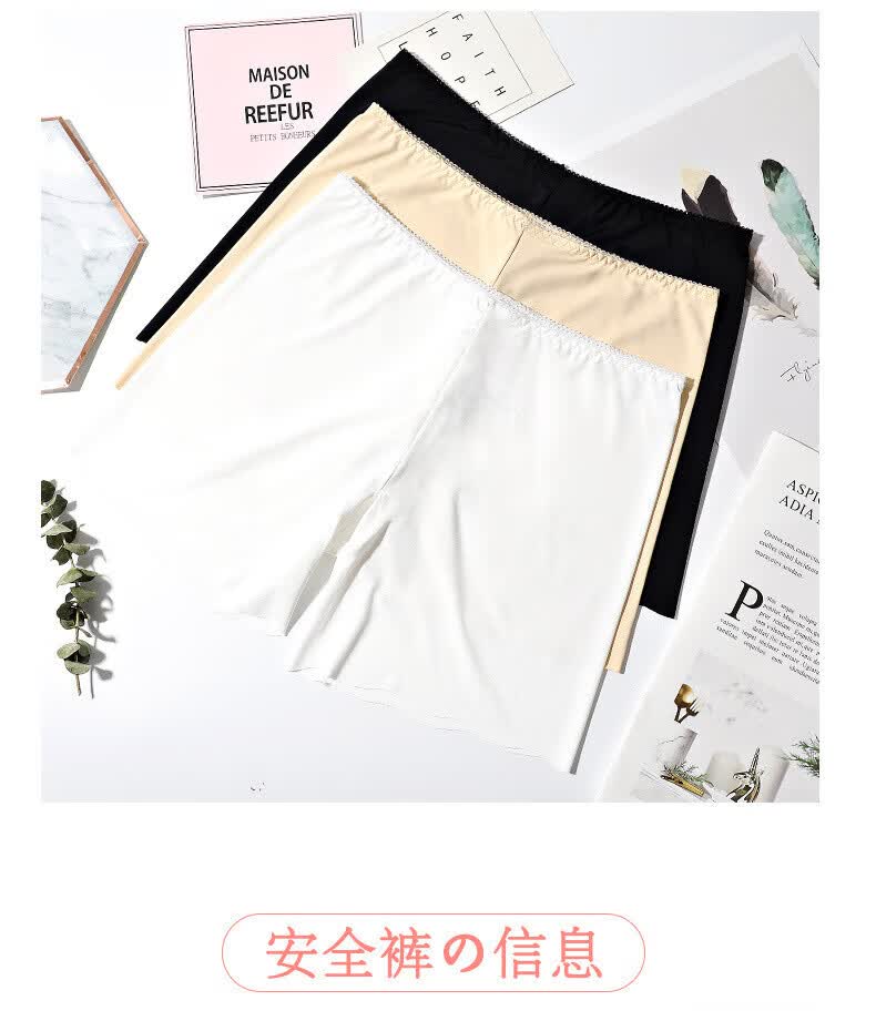 雪茜曼冰丝安全裤3条装夏季防走光短裤女士性感打底保险裤蕾丝不易卷边 黑色+肤色+白色 165