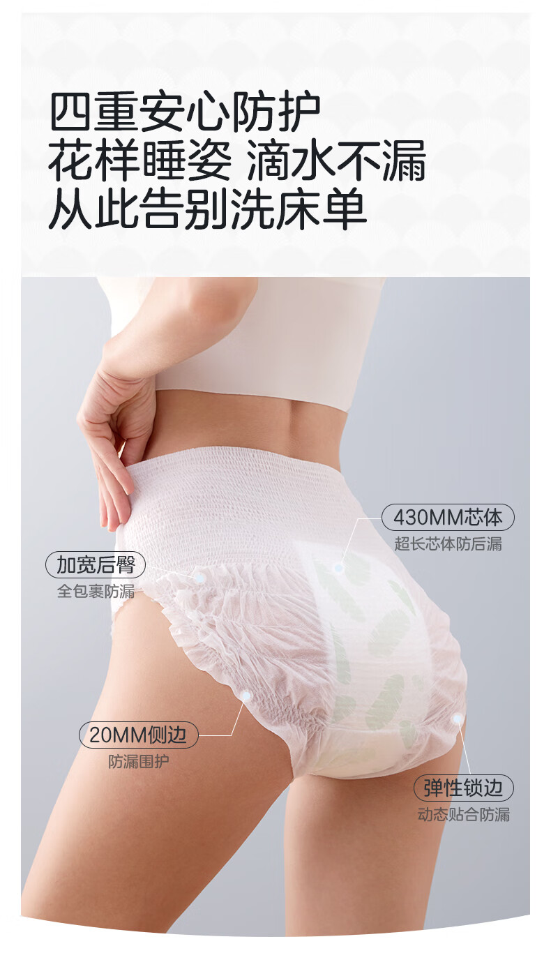 十月结晶唐浅安睡裤产妇卫生巾姨妈经期女拉拉安全裤舒睡裤XL码 4片/包