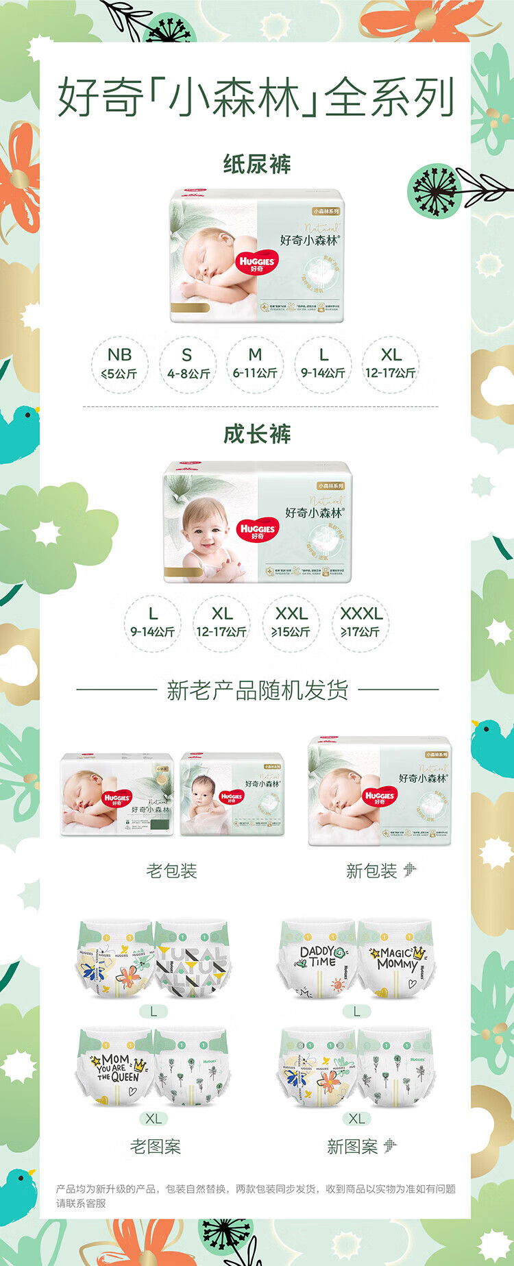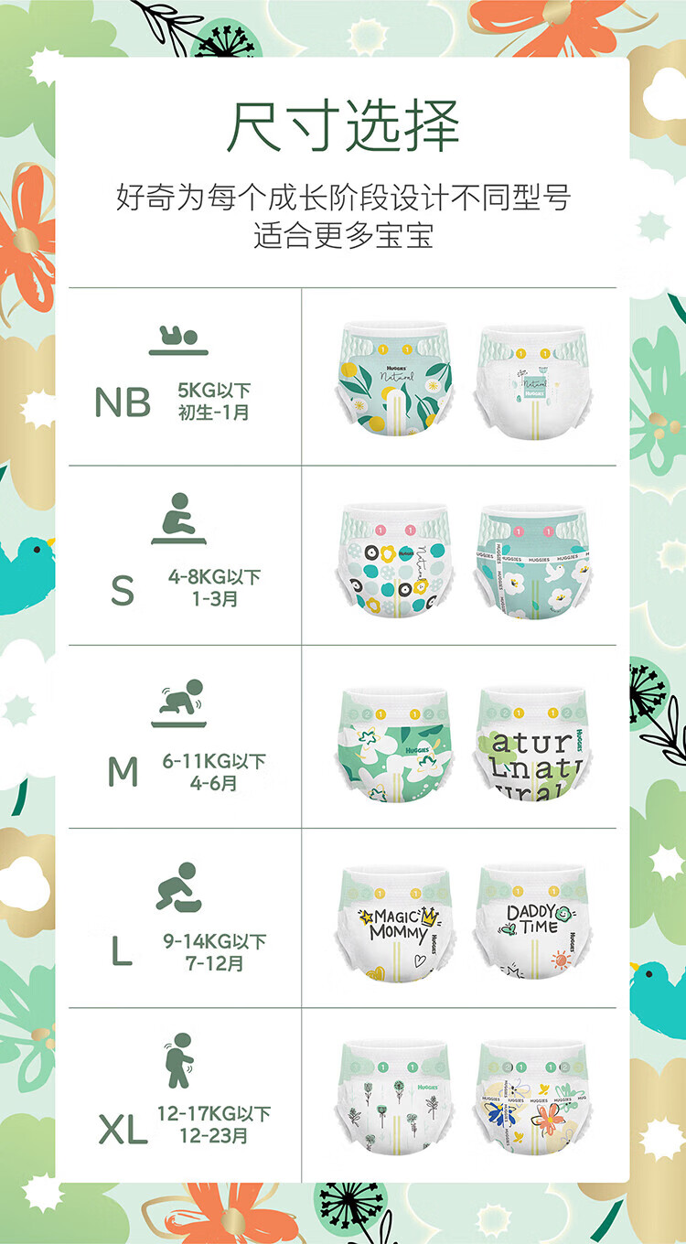 好奇(Huggies)心钻装小森林纸尿裤 婴儿拉拉裤成长裤尿不湿学步裤超薄透气 纸尿裤S62片(4-8kg)