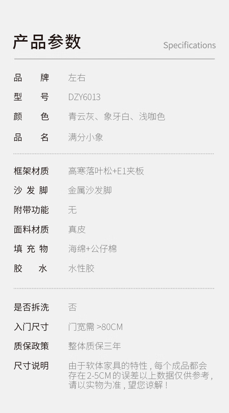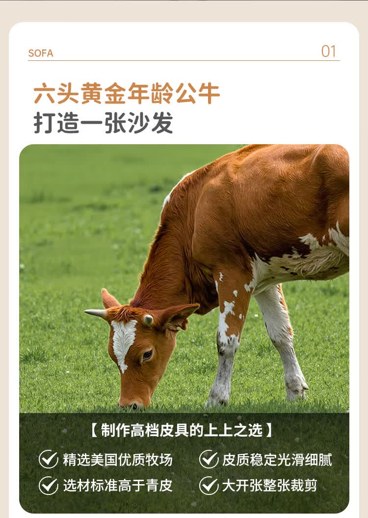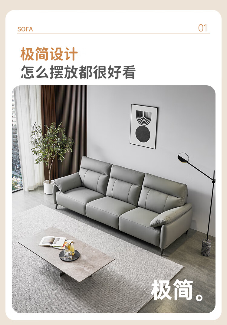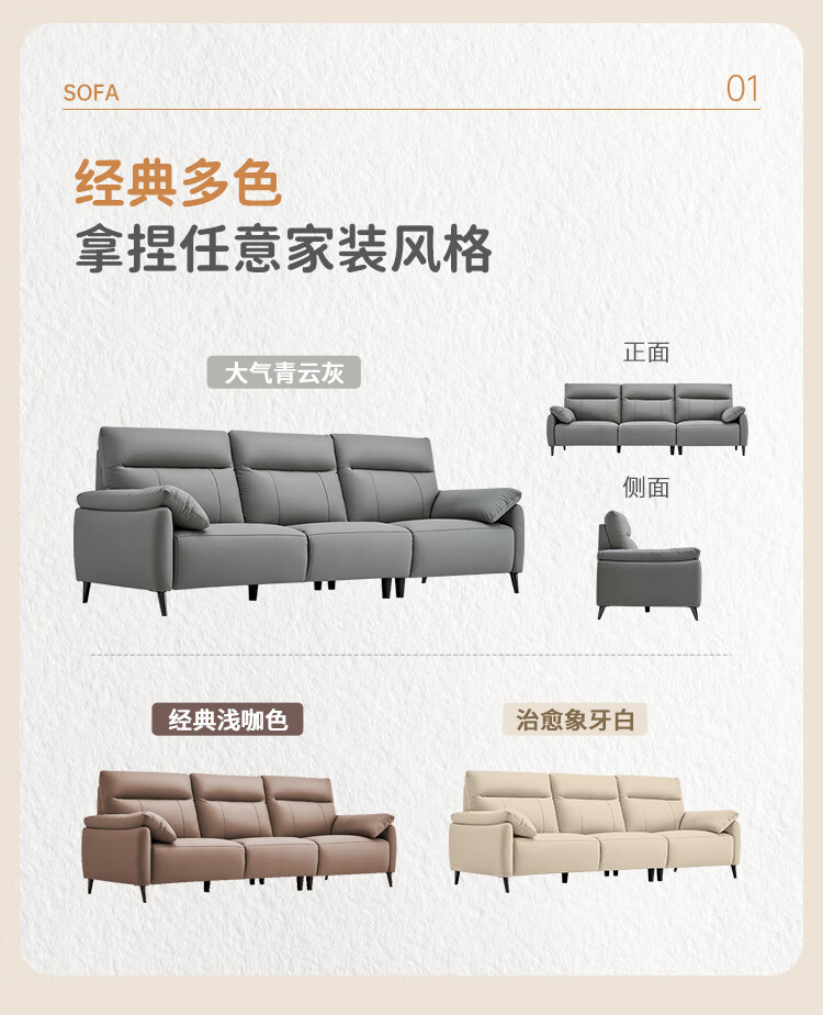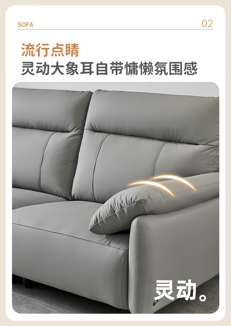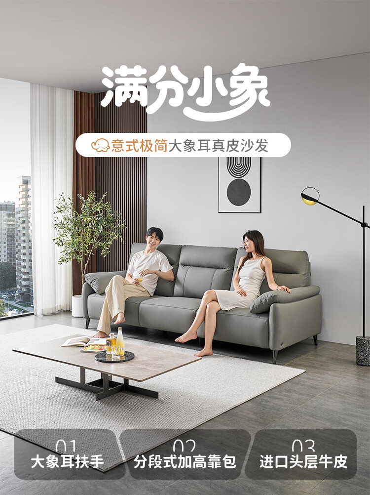 左右头层牛皮沙发现代简约直排大象耳朵大小户型客厅皮艺沙发6013 象牙白 3.48m 四人位