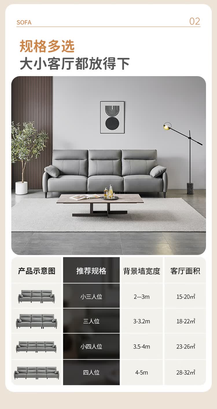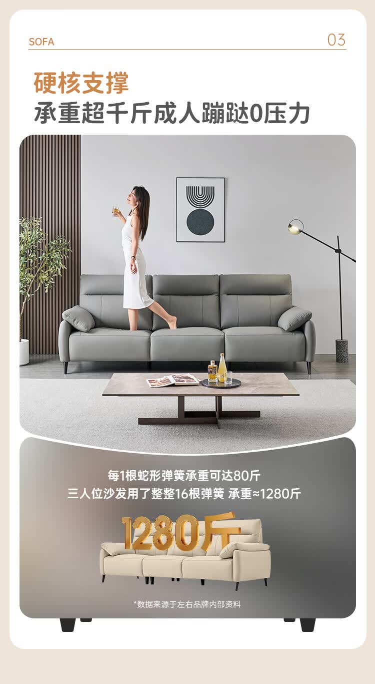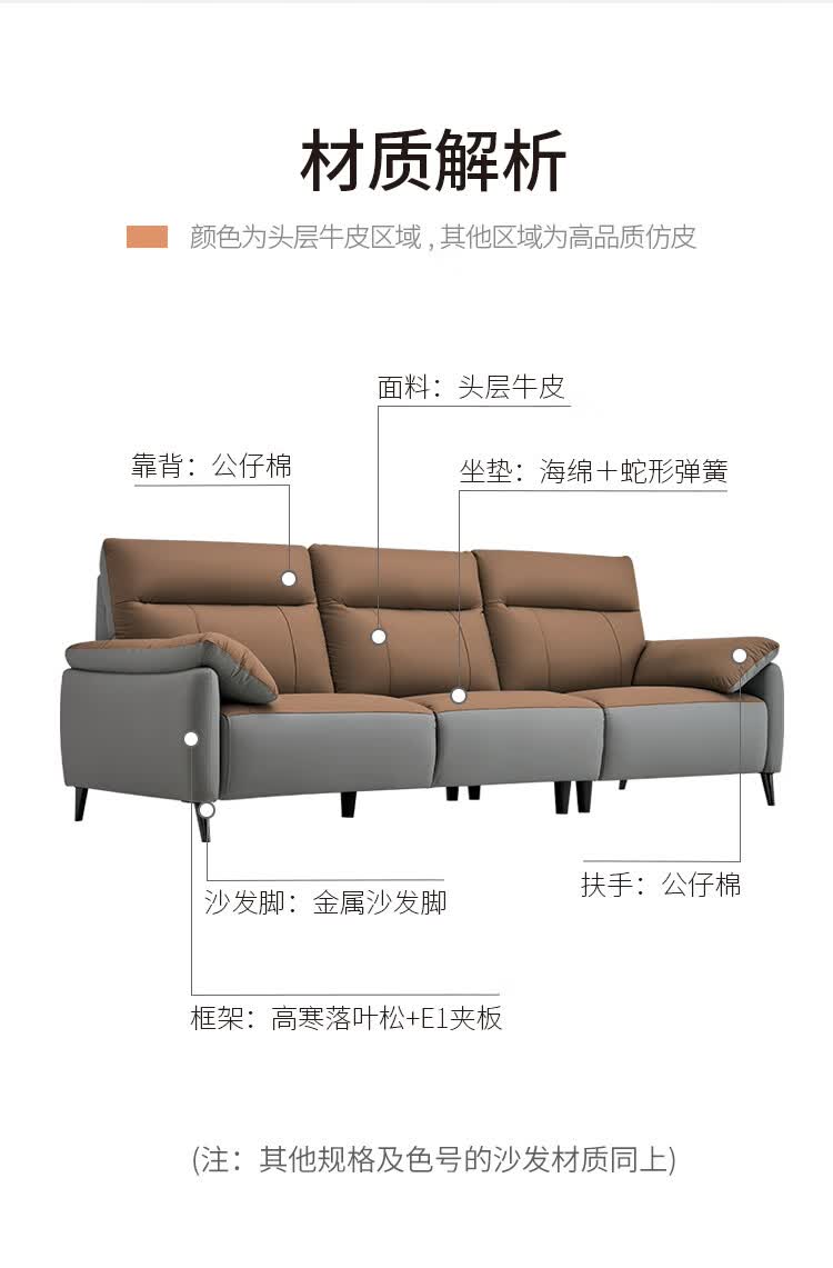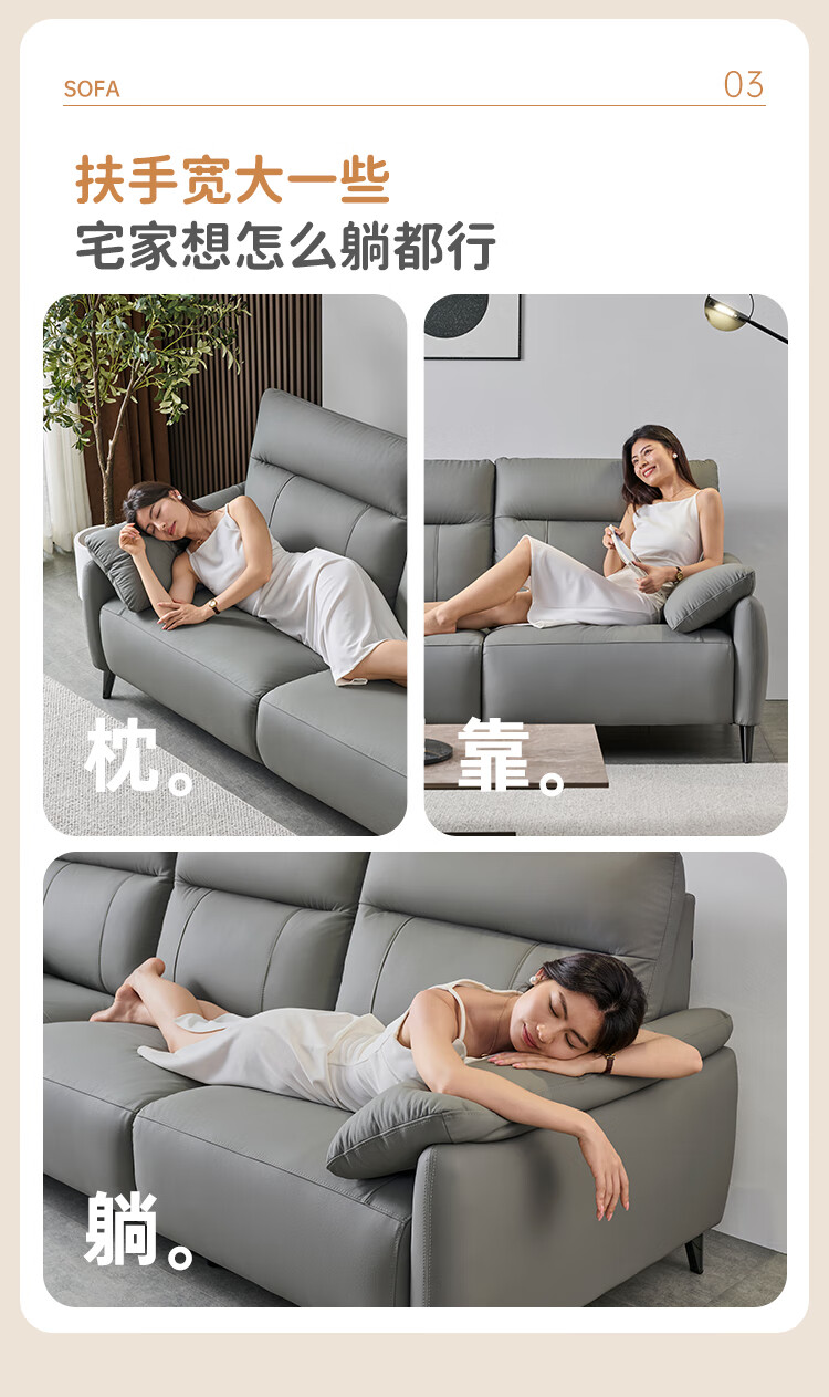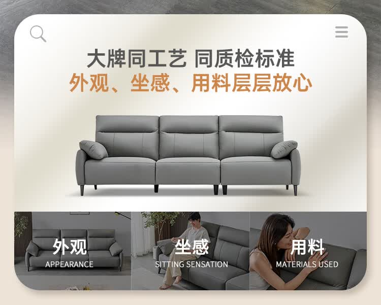 左右头层牛皮沙发现代简约直排大象耳朵大小户型客厅皮艺沙发6013 象牙白 3.48m 四人位