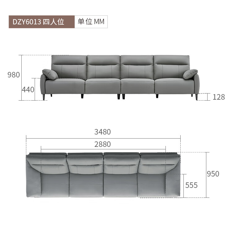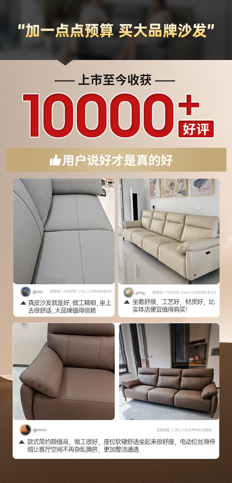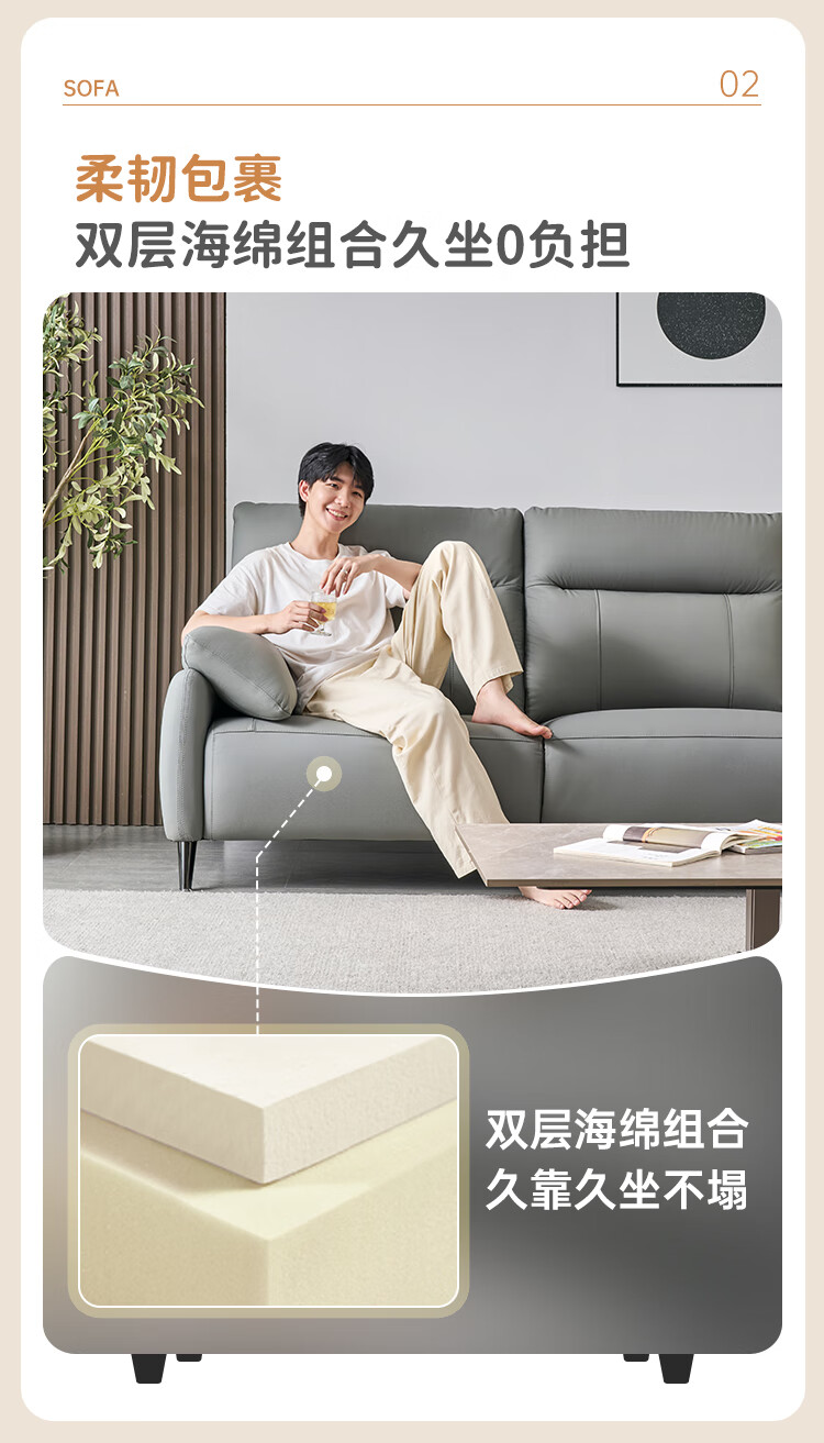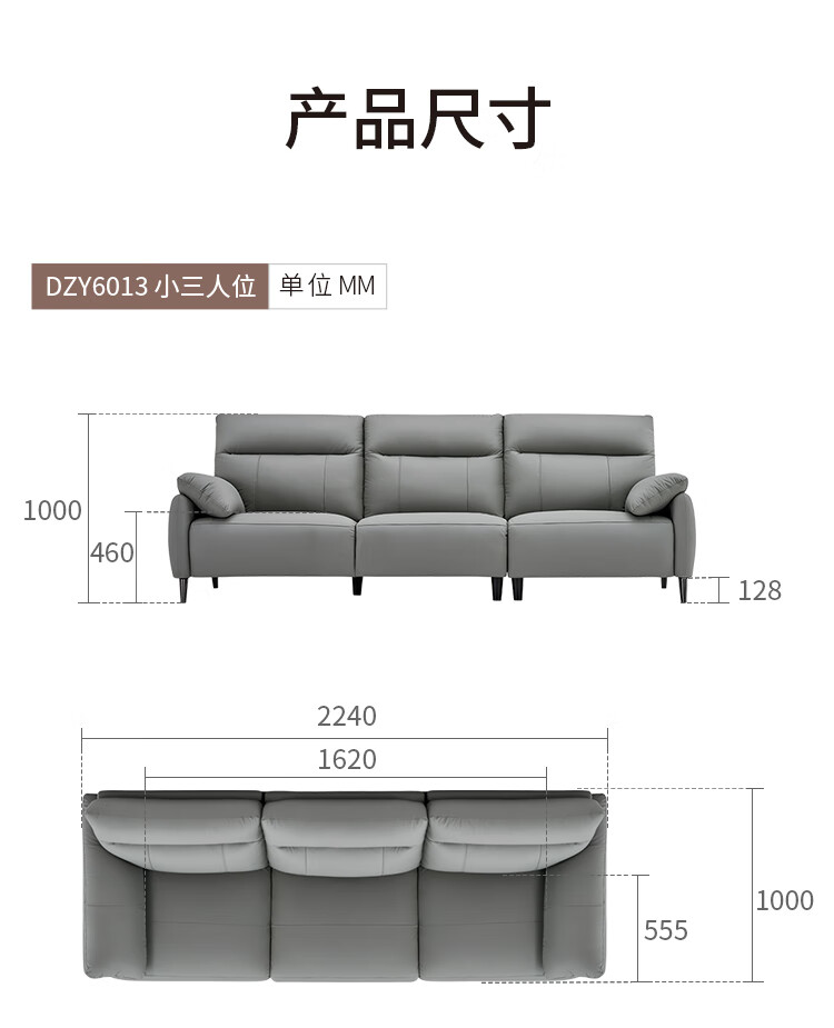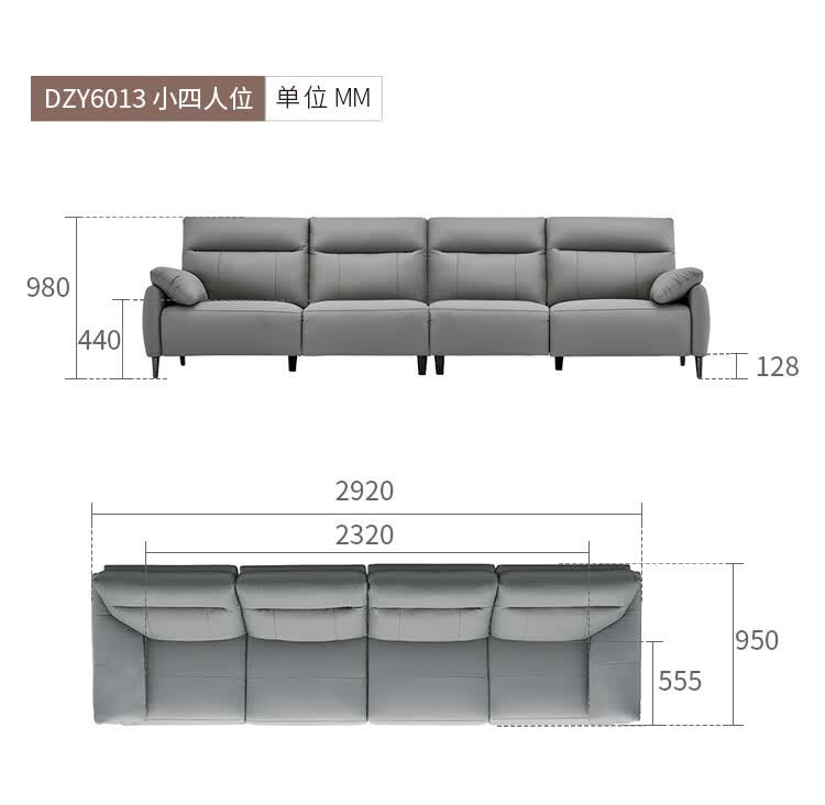 左右头层牛皮沙发现代简约直排大象耳朵大小户型客厅皮艺沙发6013 象牙白 3.48m 四人位