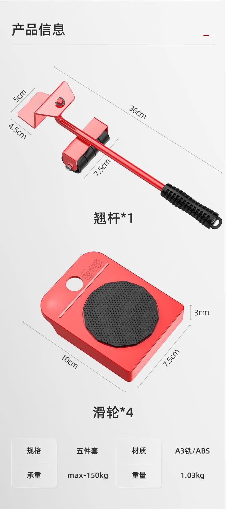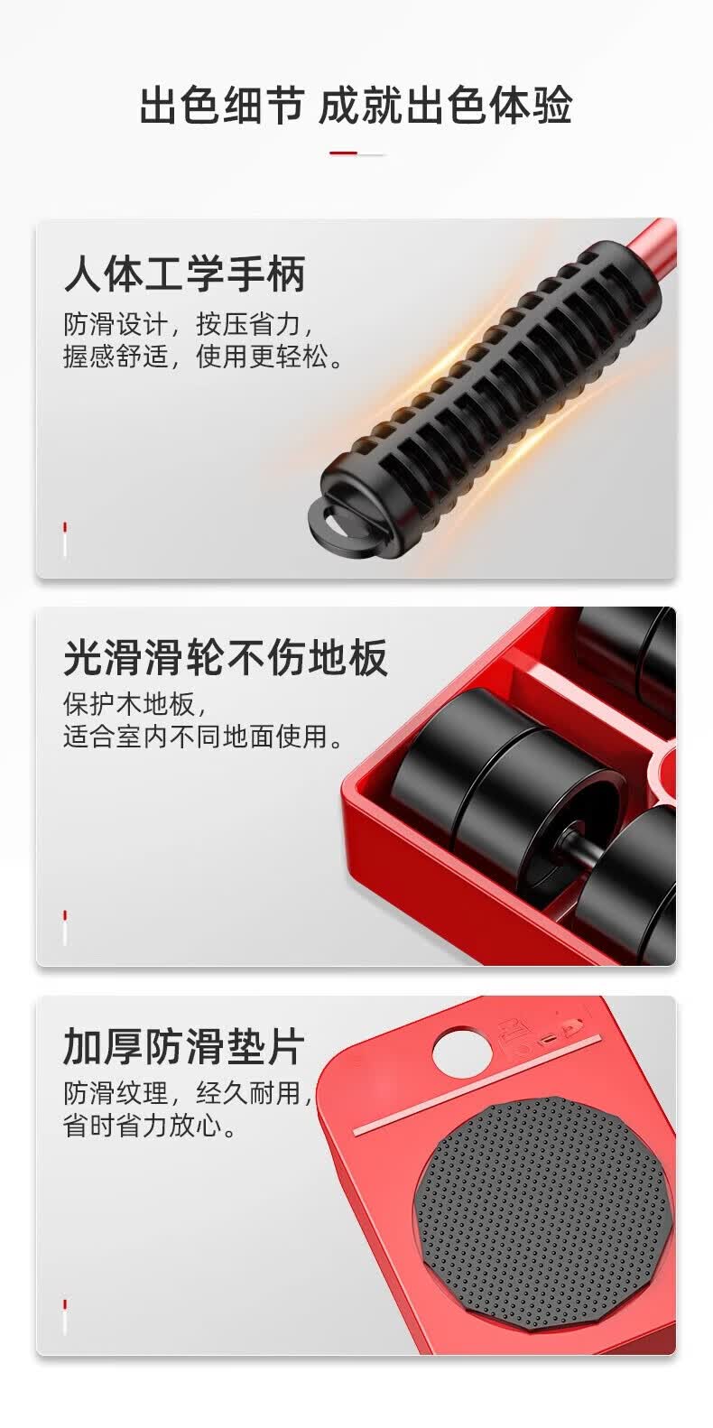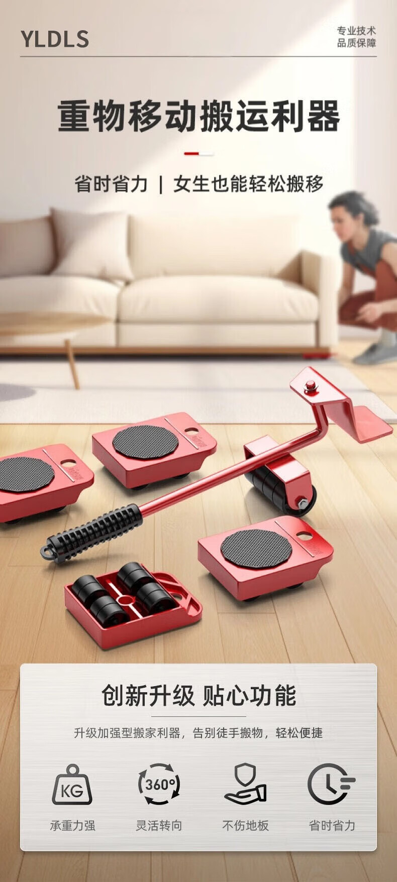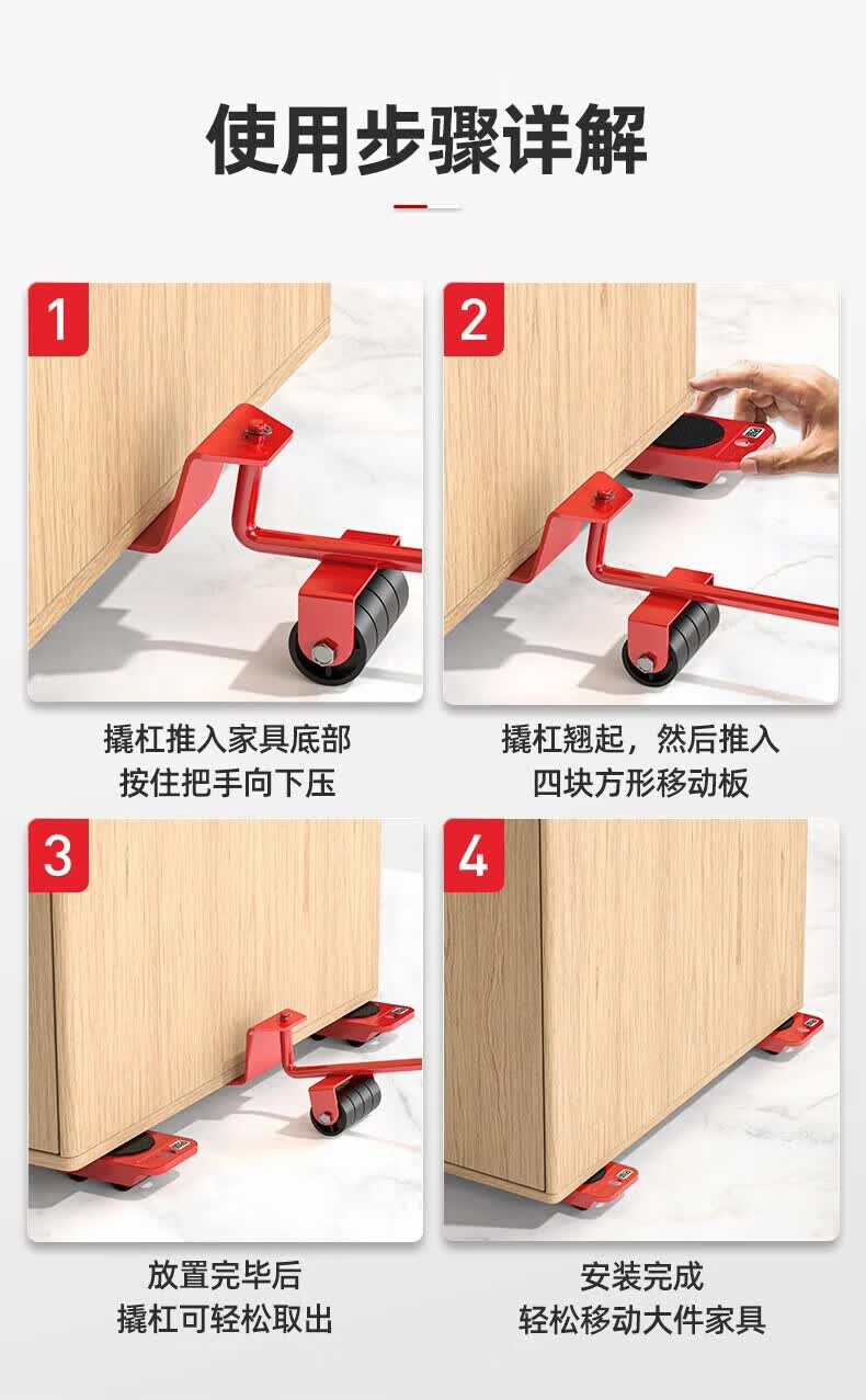 亚伦大力士搬重物搬家神器万向轮搬家具搬运挪床移动器滑轮省力单人搬家工具 5件套【低价冲量】使用便捷-比男人更可靠 四步轻松使用-家具轻松移动
