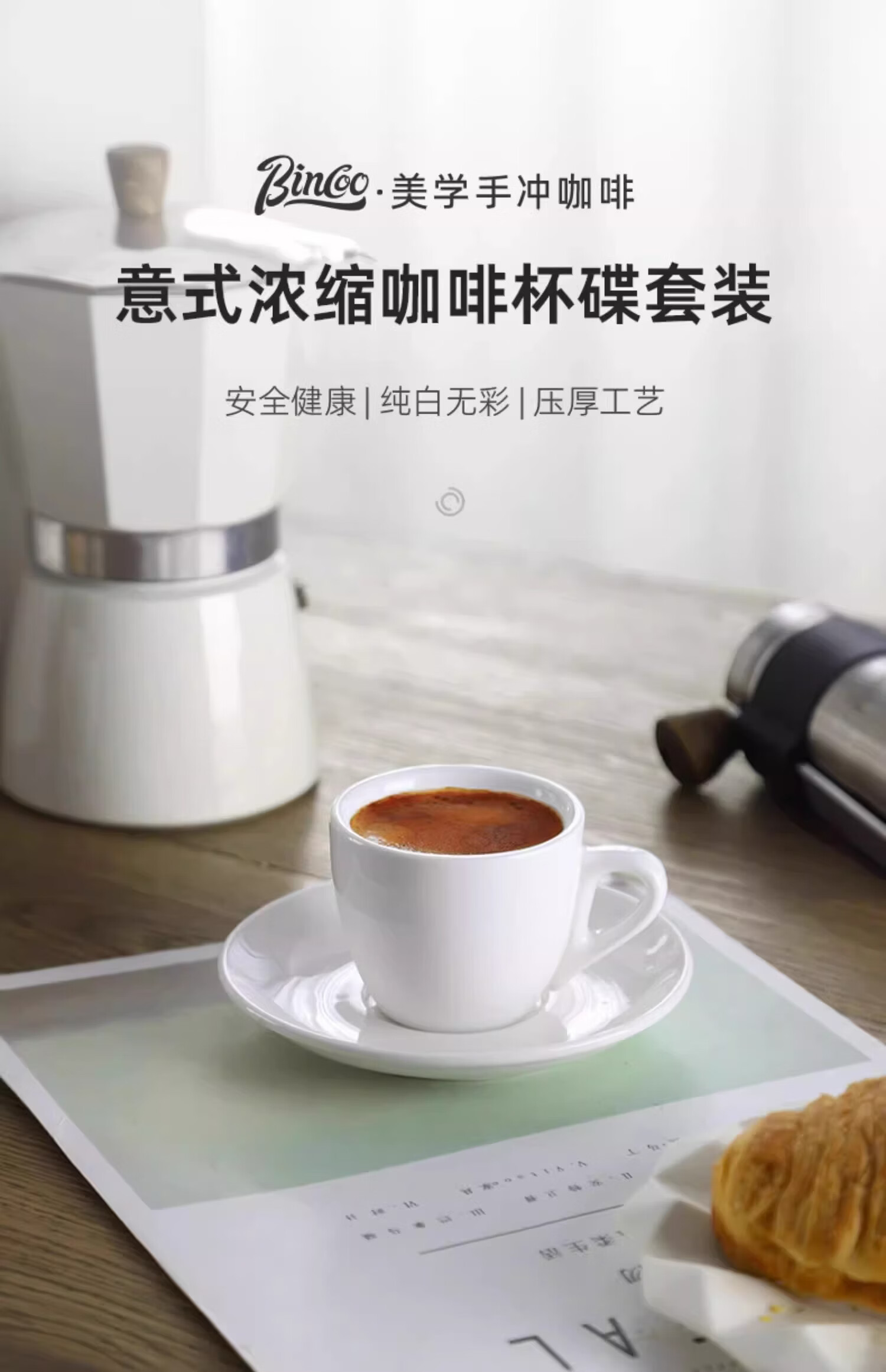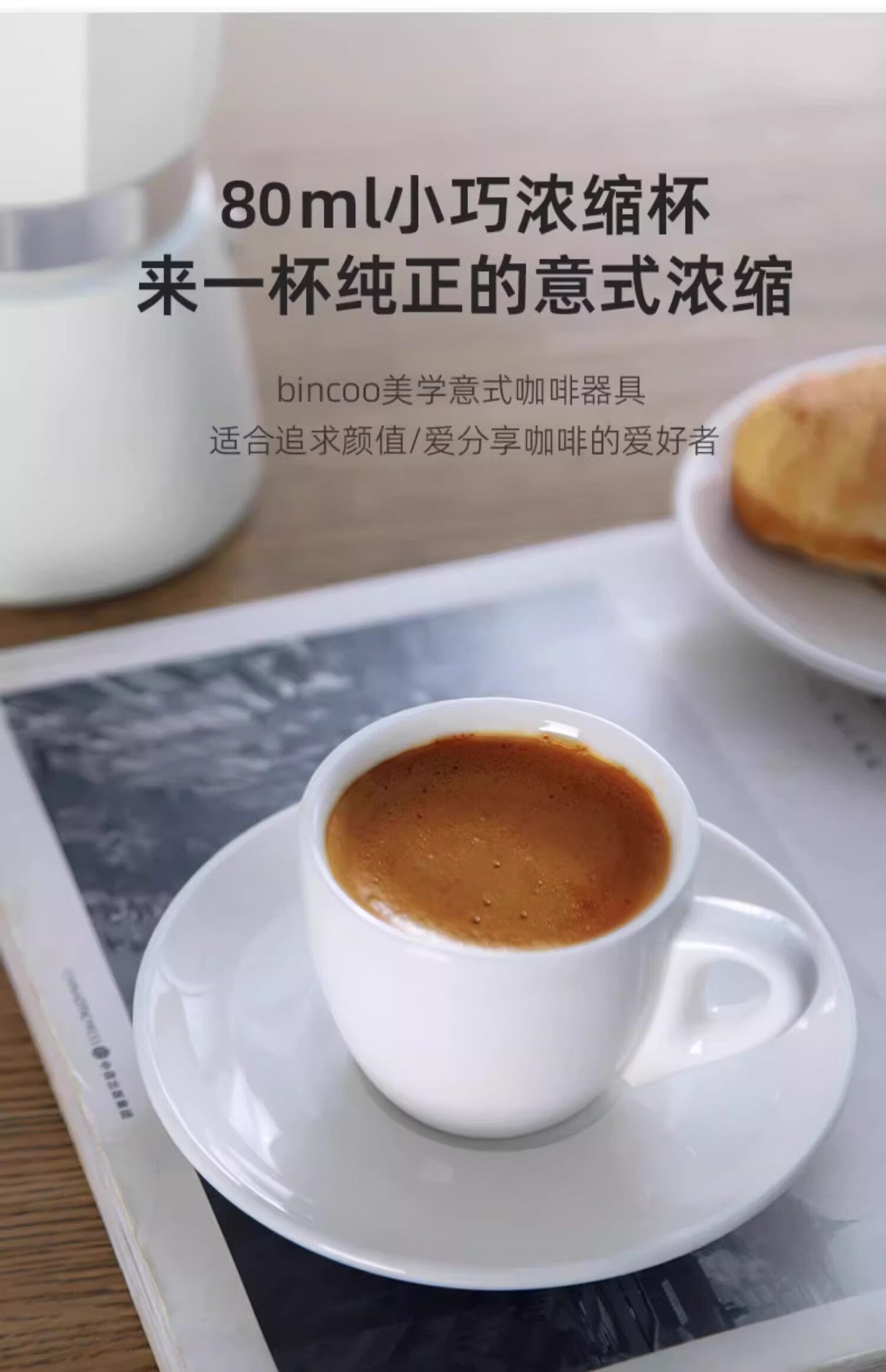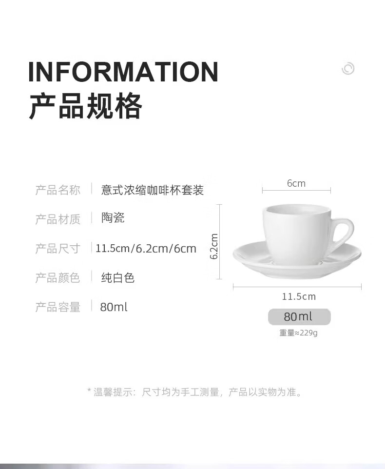 Bincoo咖啡杯碟意式浓缩杯espresso小杯简约精致欧式陶瓷杯子80ml 纯白咖啡杯碟-80ml