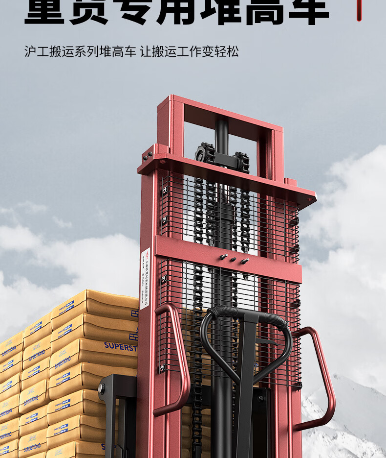 沪工正品叉车手动液压叉车搬运车液压升降叉车机平台堆高车升高车定制 【精品C型钢】2吨升2米叉1.5m