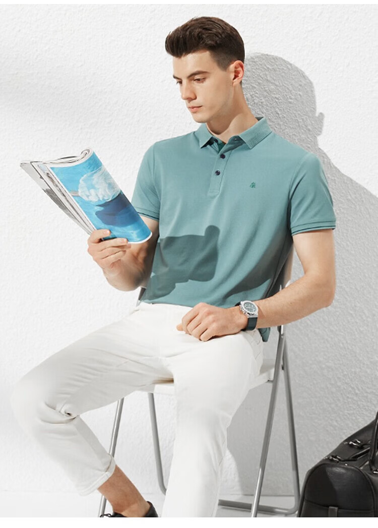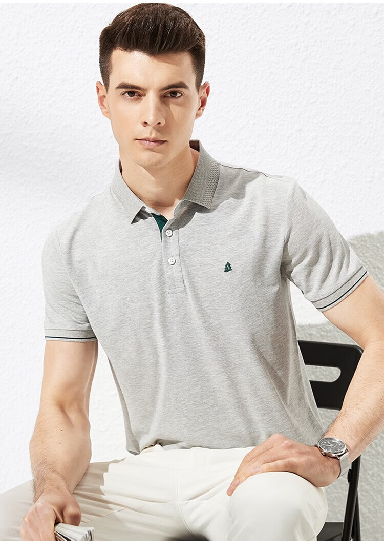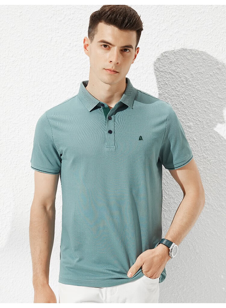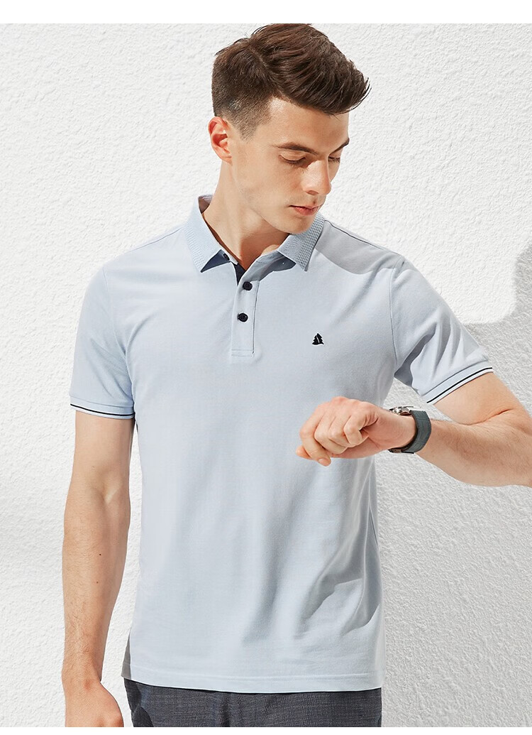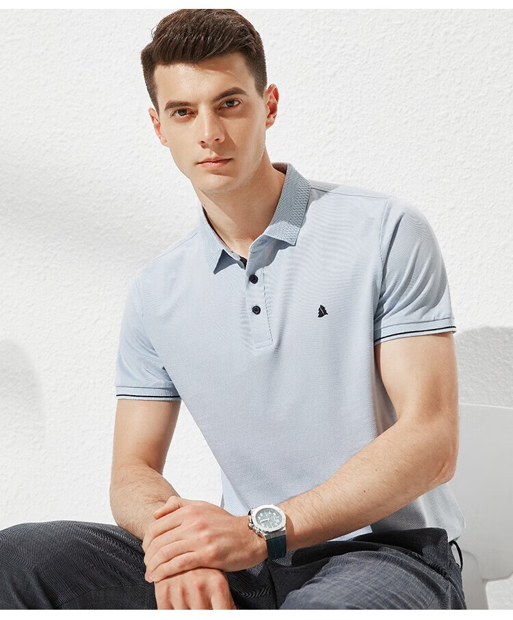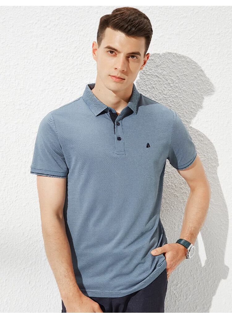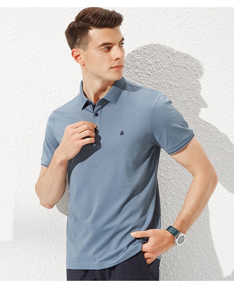 杉杉(FIRS)【轻奢桑蚕丝】夏装男士透气商务休闲短袖上衣T恤男父亲节礼物 雾霾蓝 M (170/88A)
