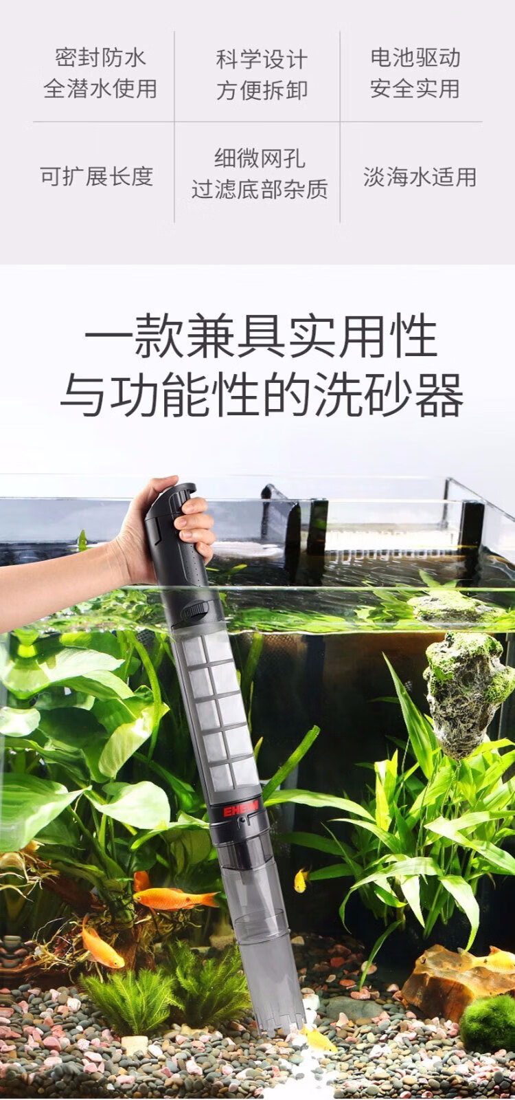 伊罕EHEIM 鱼缸力洁玻璃清洁器电动抽水吸便鱼缸清洁工具适合60cm鱼缸 电动砂砾清洁器60cm
