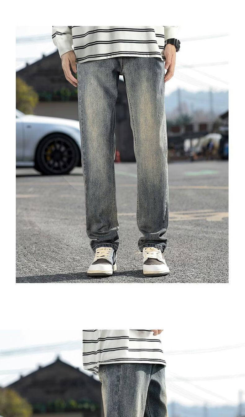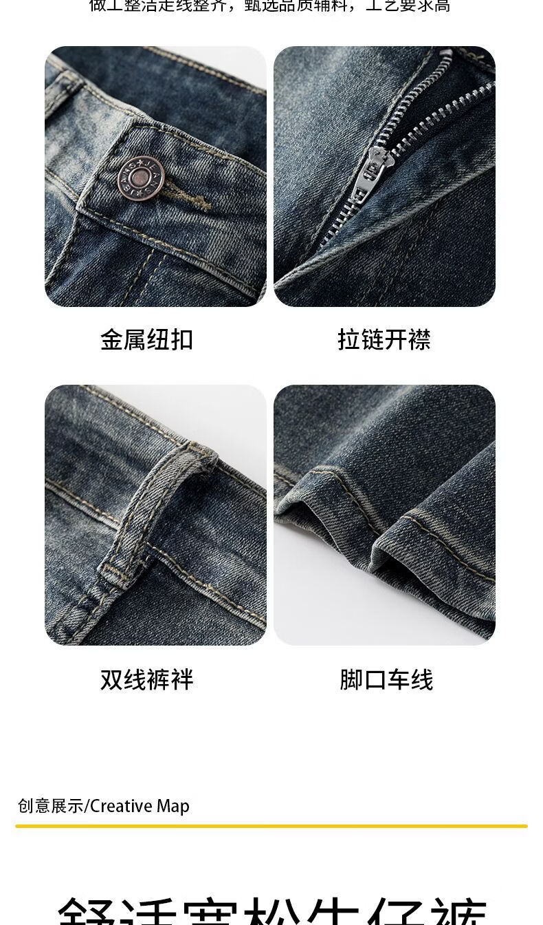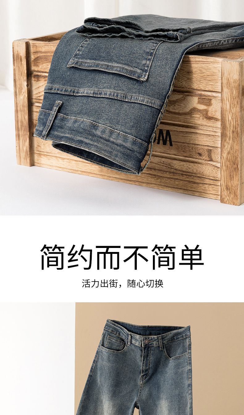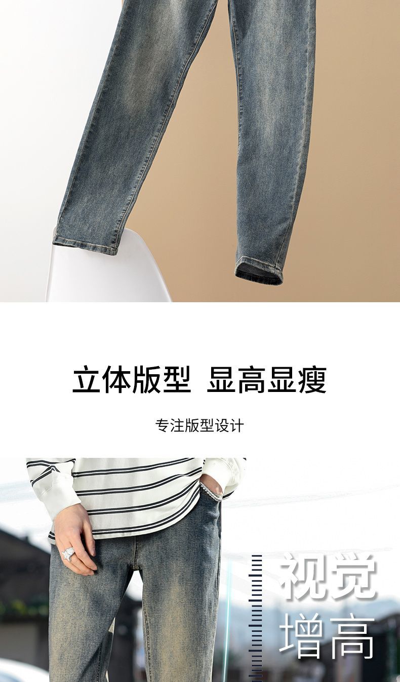 真维斯(Jeanswest)真维斯秋冬新款加绒加厚美式复古牛仔裤男士潮牌修身小直筒休闲裤 复古蓝 M