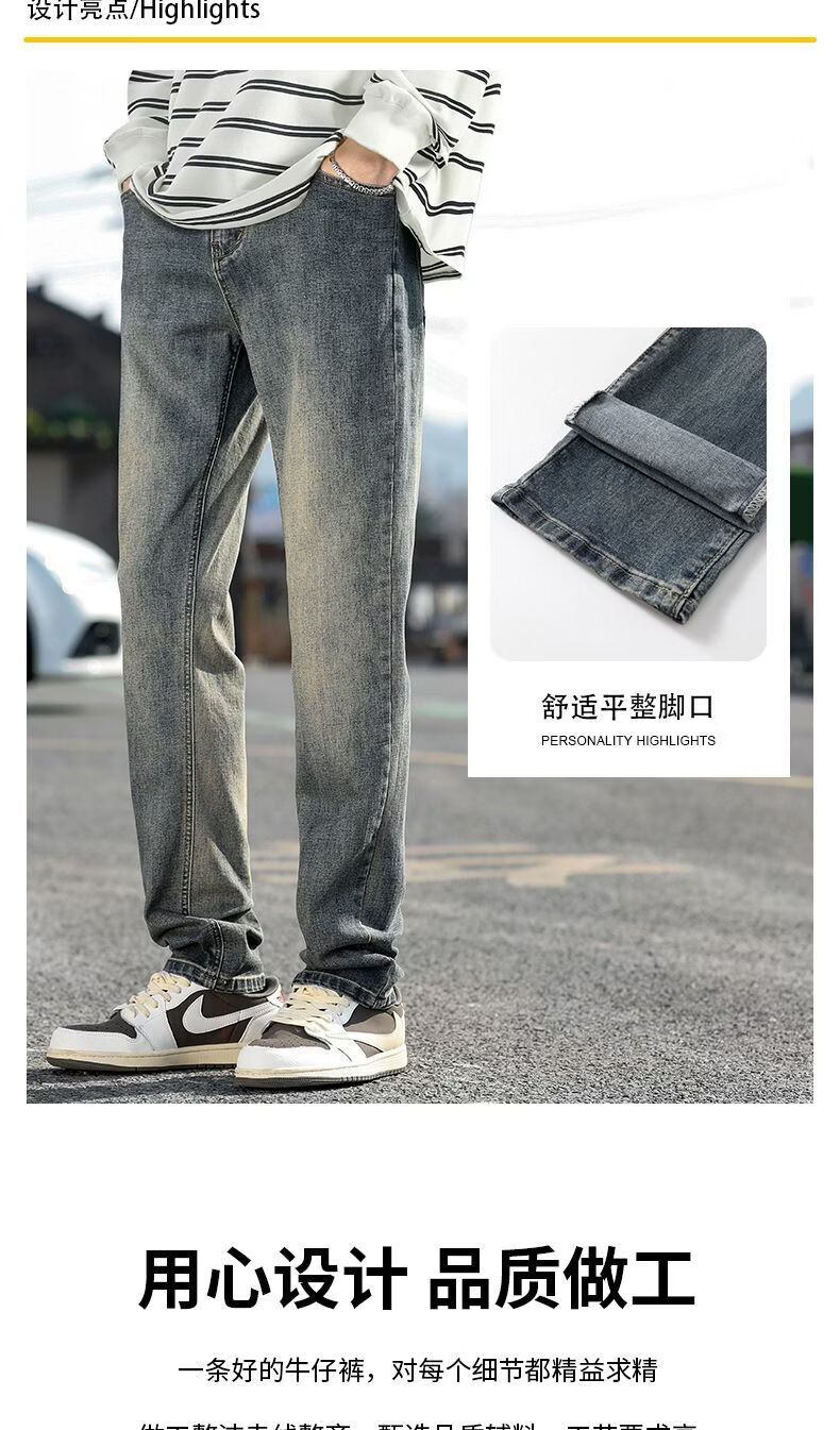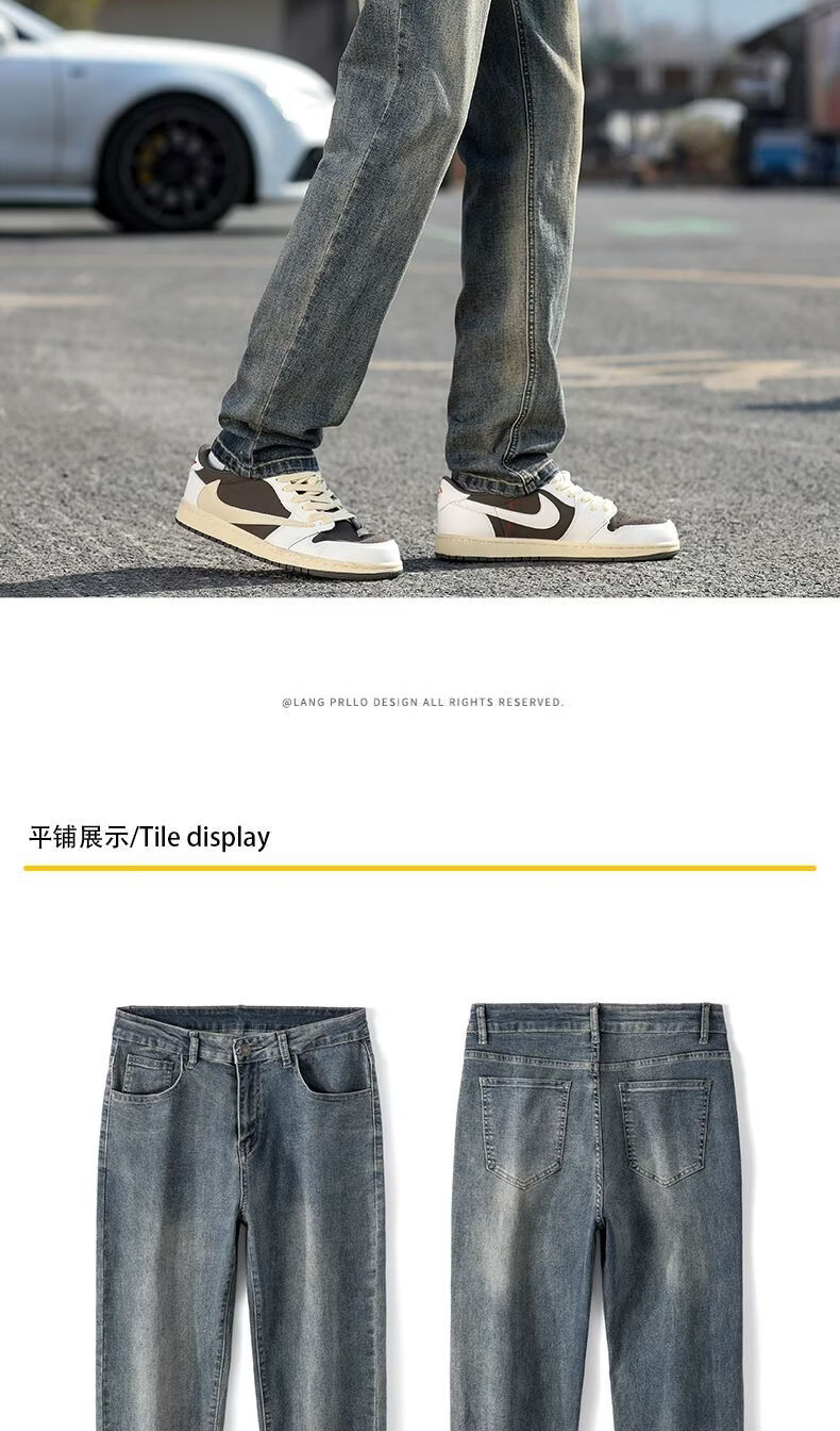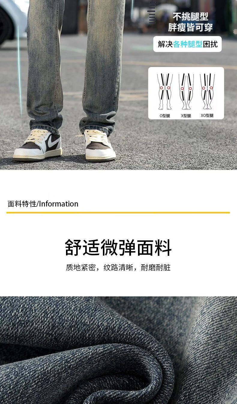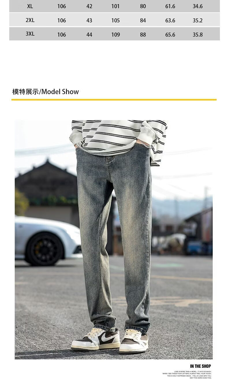 真维斯(Jeanswest)真维斯秋冬新款加绒加厚美式复古牛仔裤男士潮牌修身小直筒休闲裤 复古蓝 M