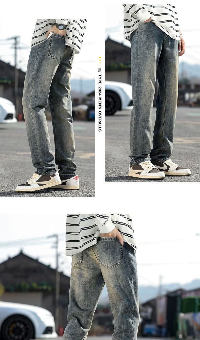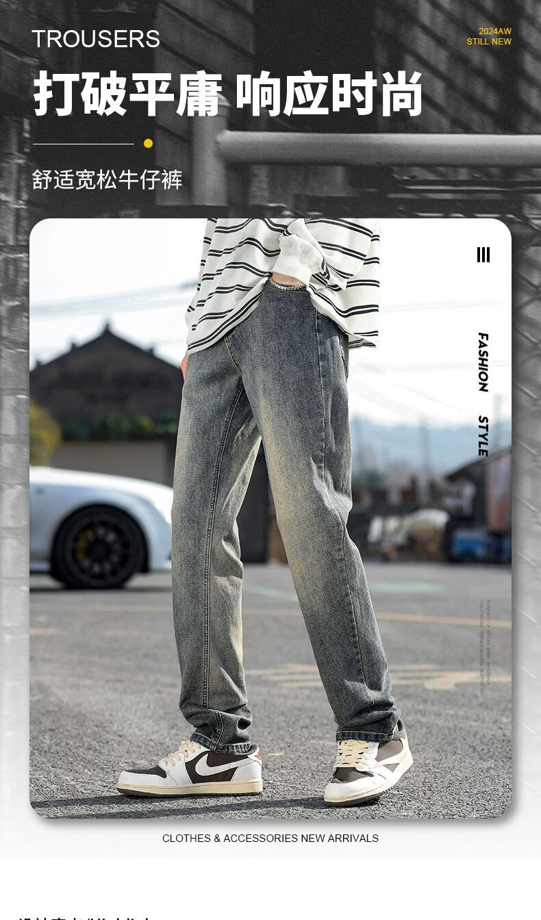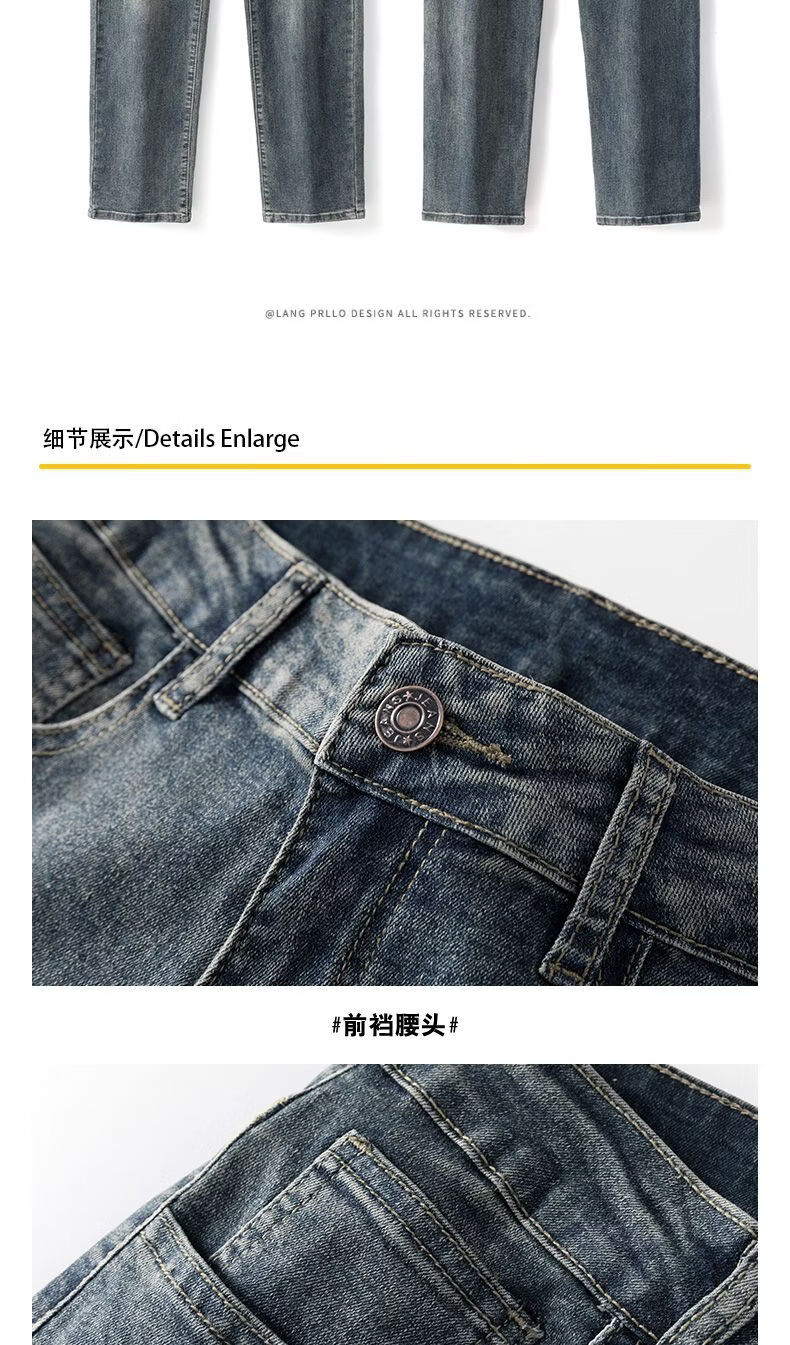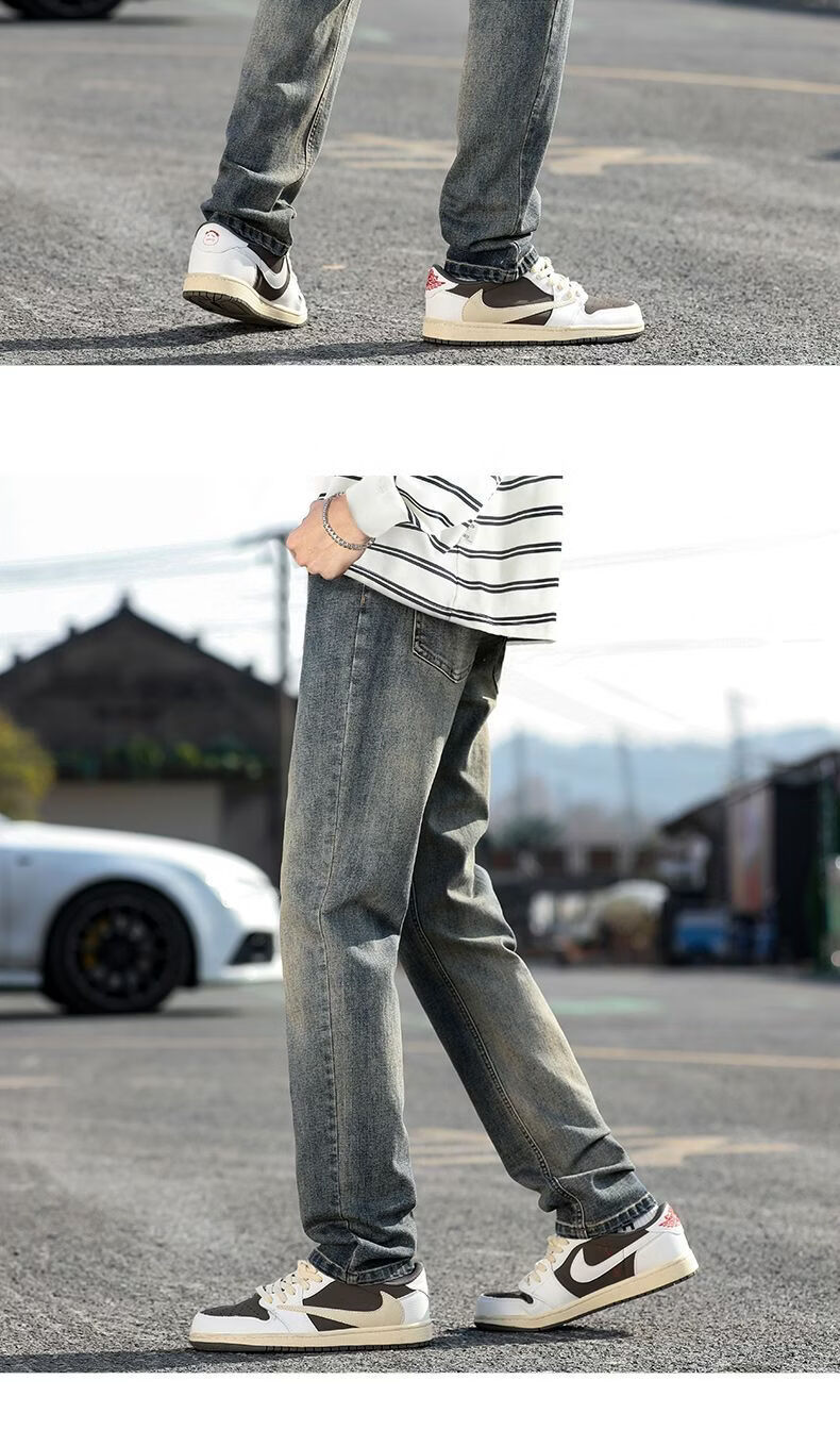 真维斯(Jeanswest)真维斯秋冬新款加绒加厚美式复古牛仔裤男士潮牌修身小直筒休闲裤 复古蓝 M