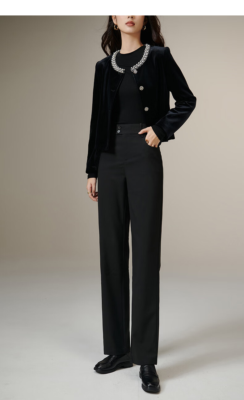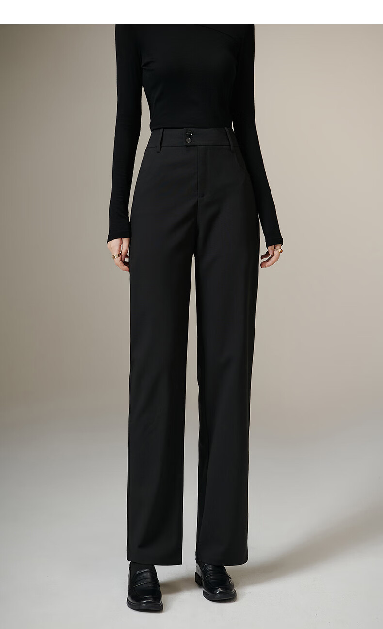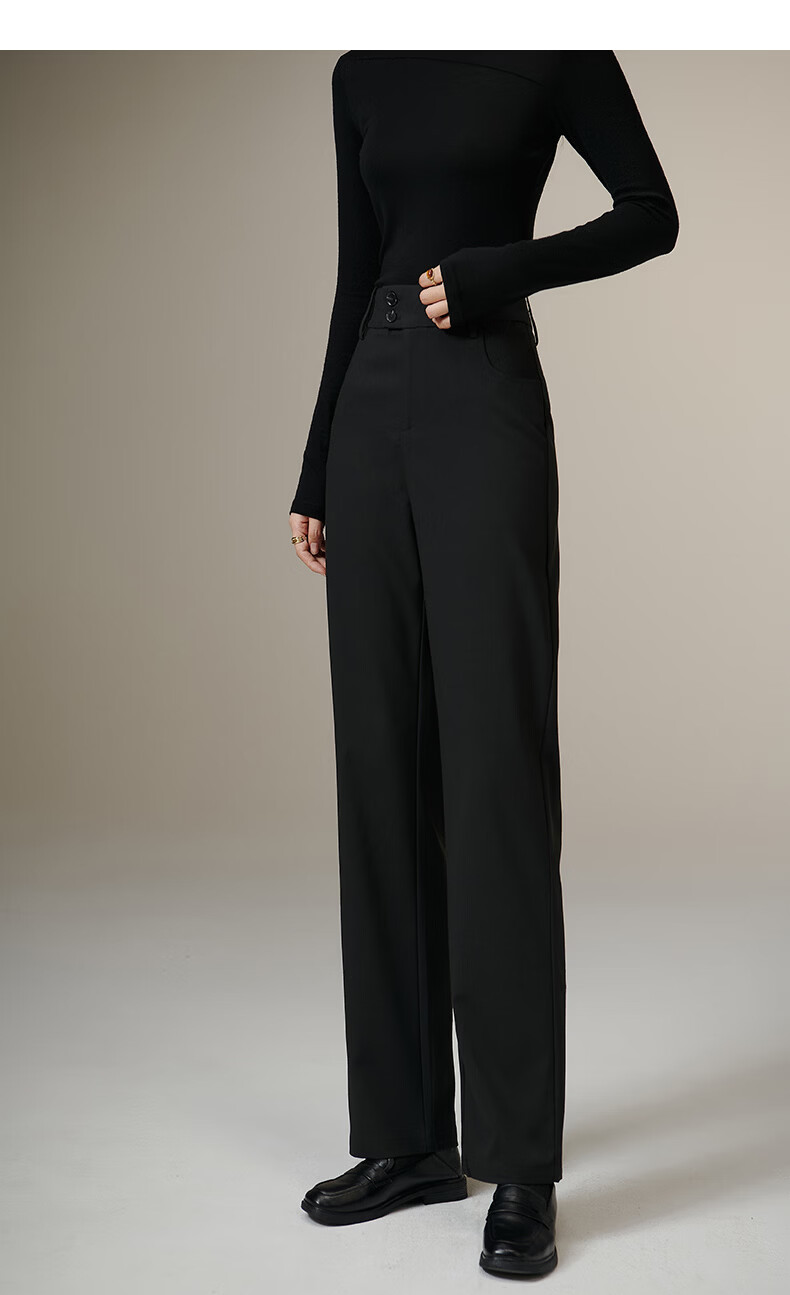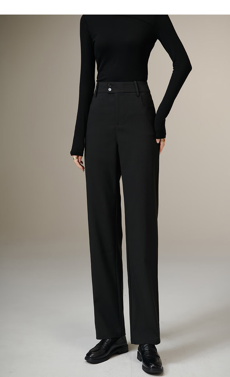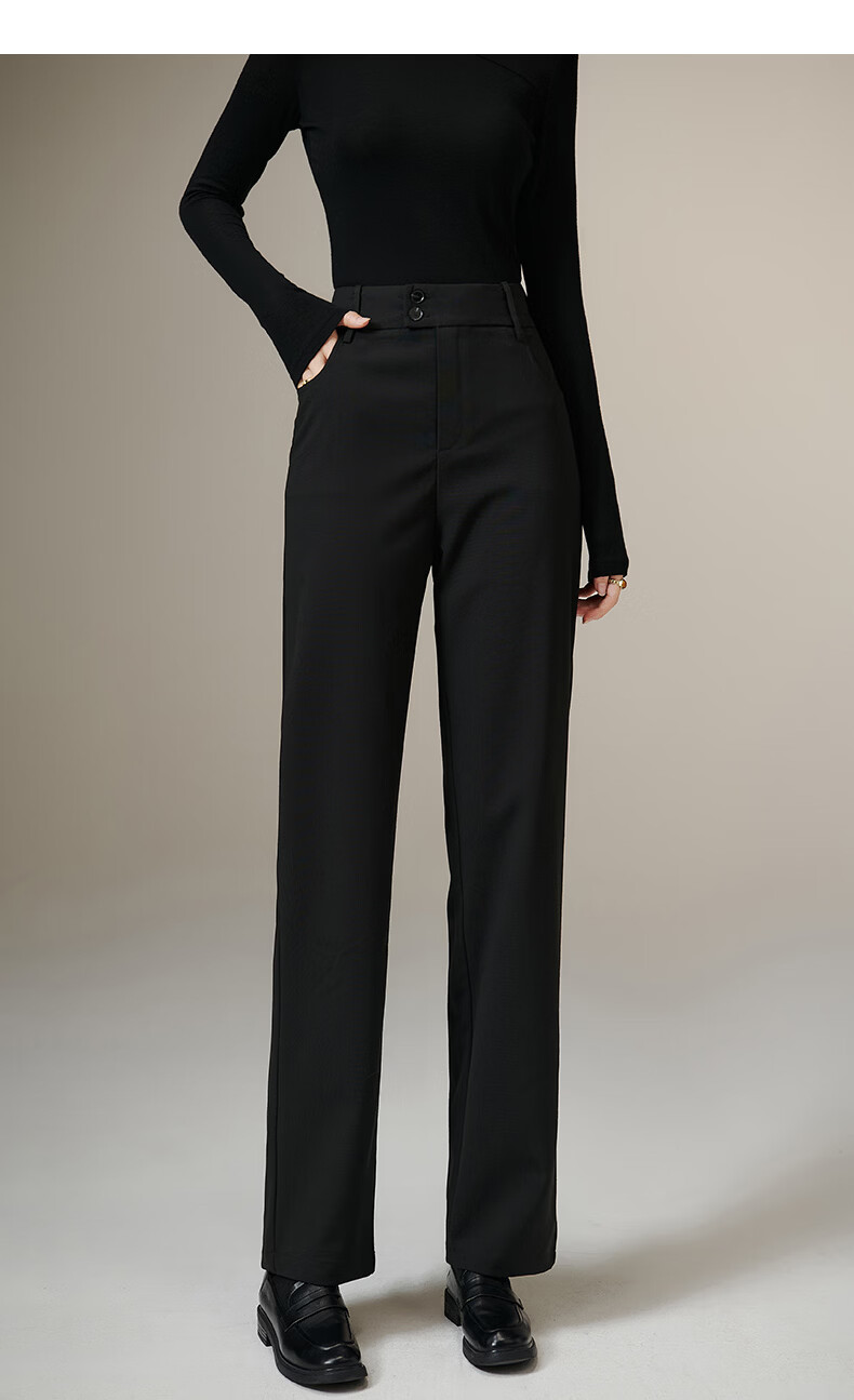 晚白【新品】2026春款经典高腰裤子气质干练职场通勤窄版直筒裤女 黑色 27