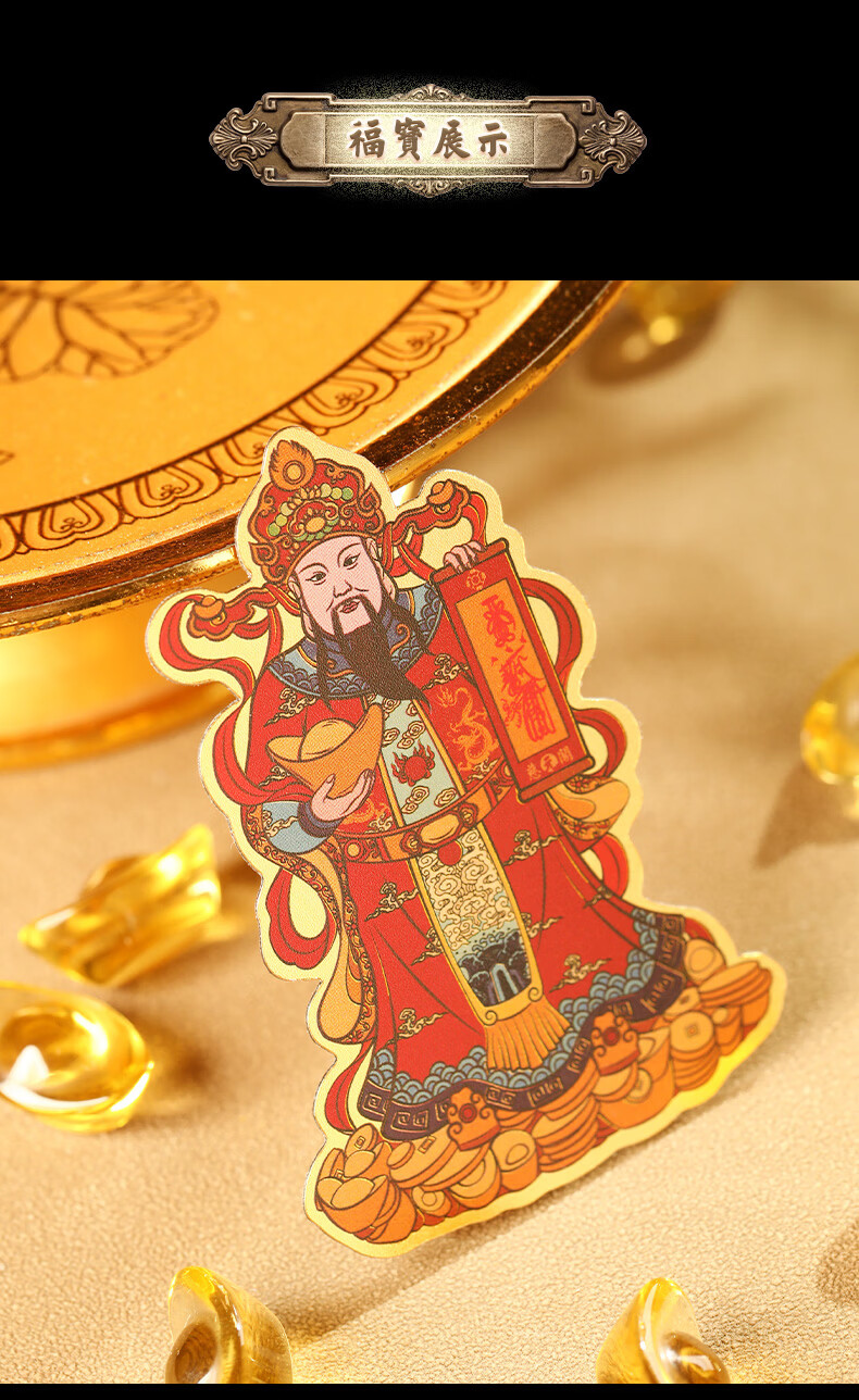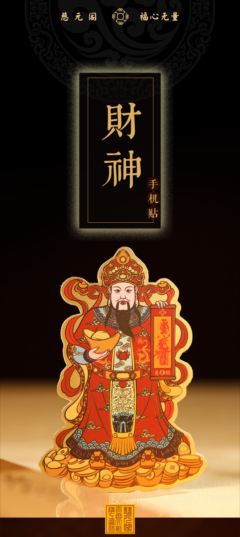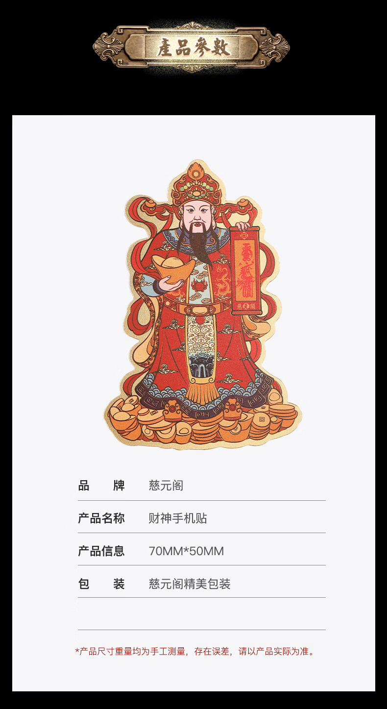 慈元阁原创彩绘财神手机贴复古招财元宝男女手机壳装饰品随身配饰送父母 彩绘财神手机贴