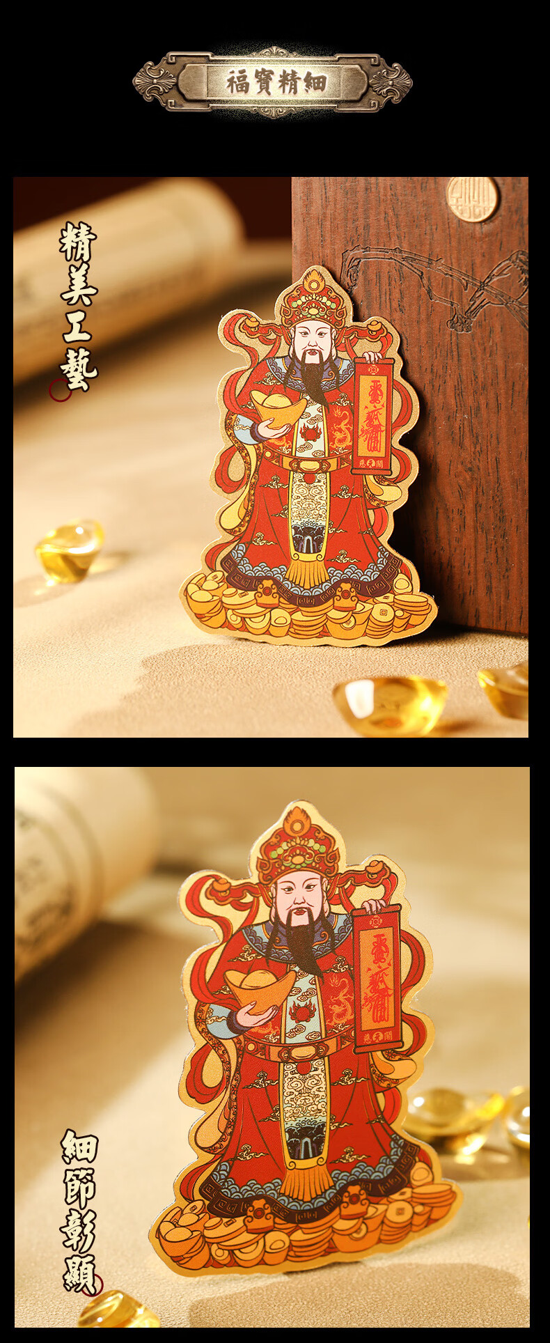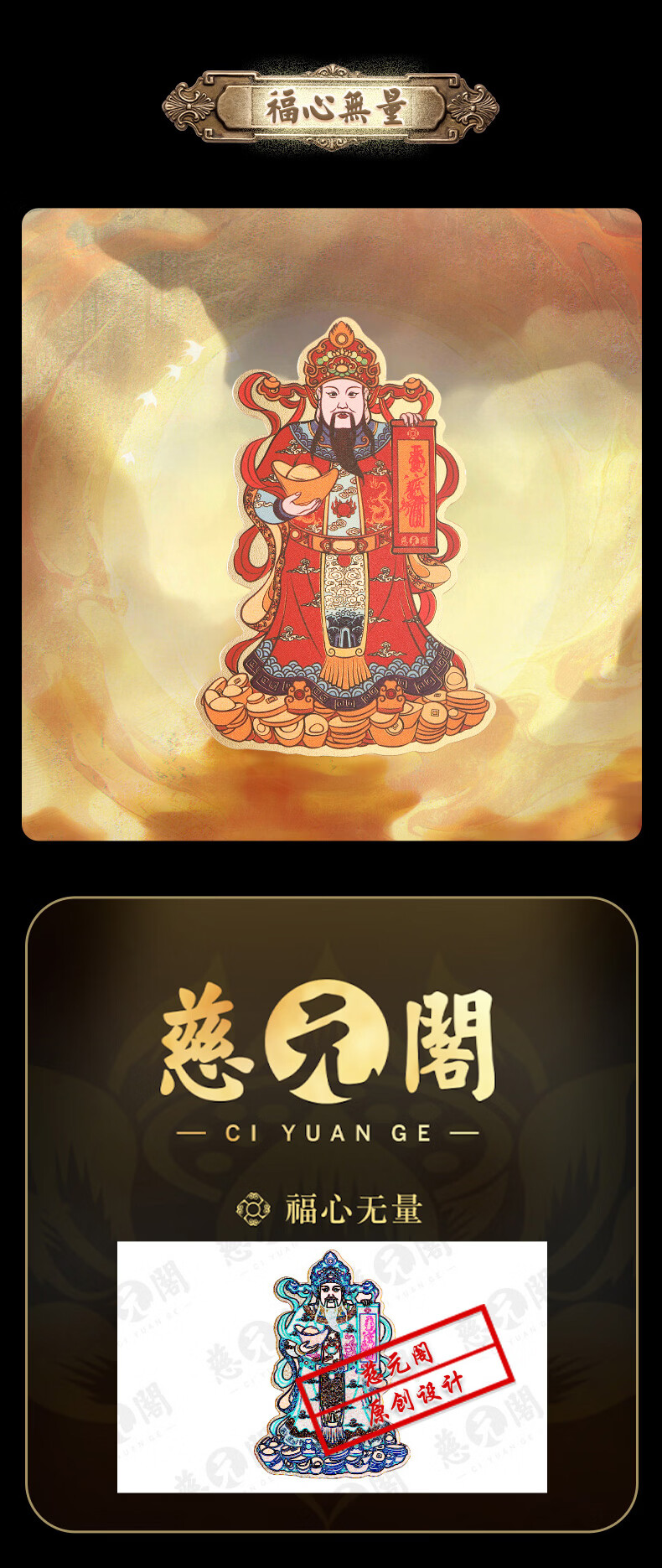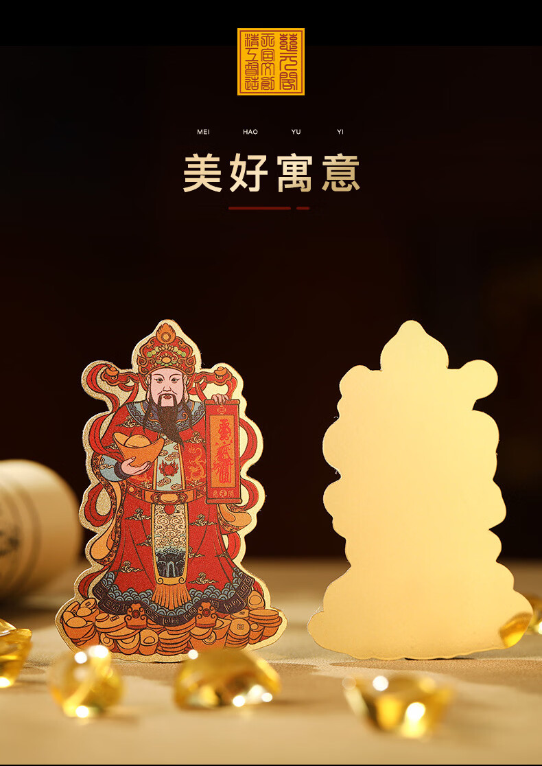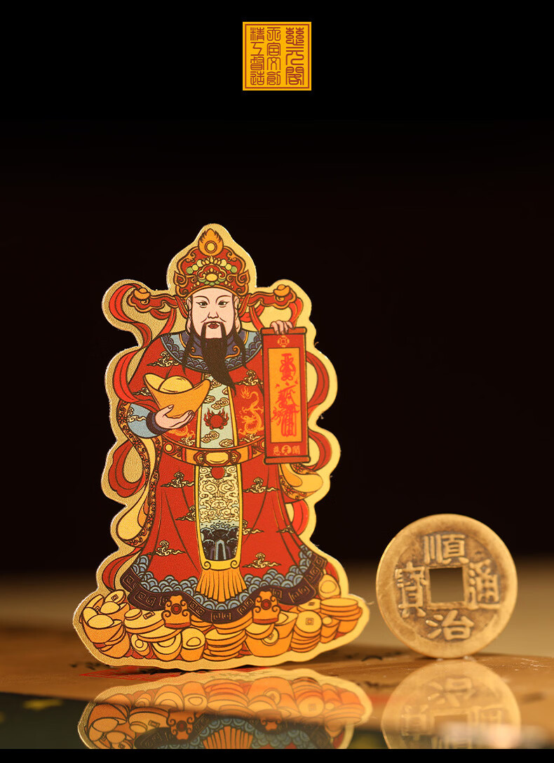慈元阁原创彩绘财神手机贴复古招财元宝男女手机壳装饰品随身配饰送父母 彩绘财神手机贴