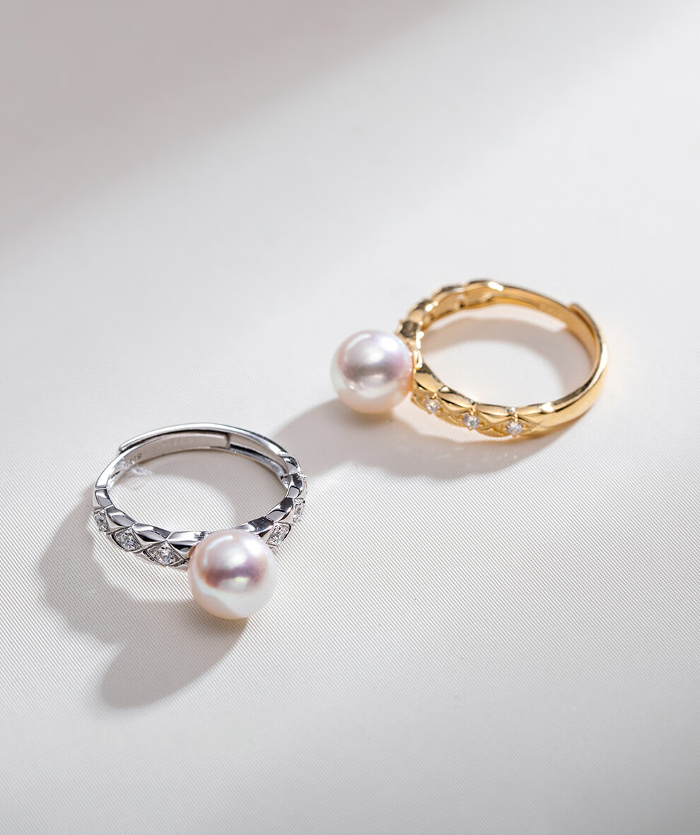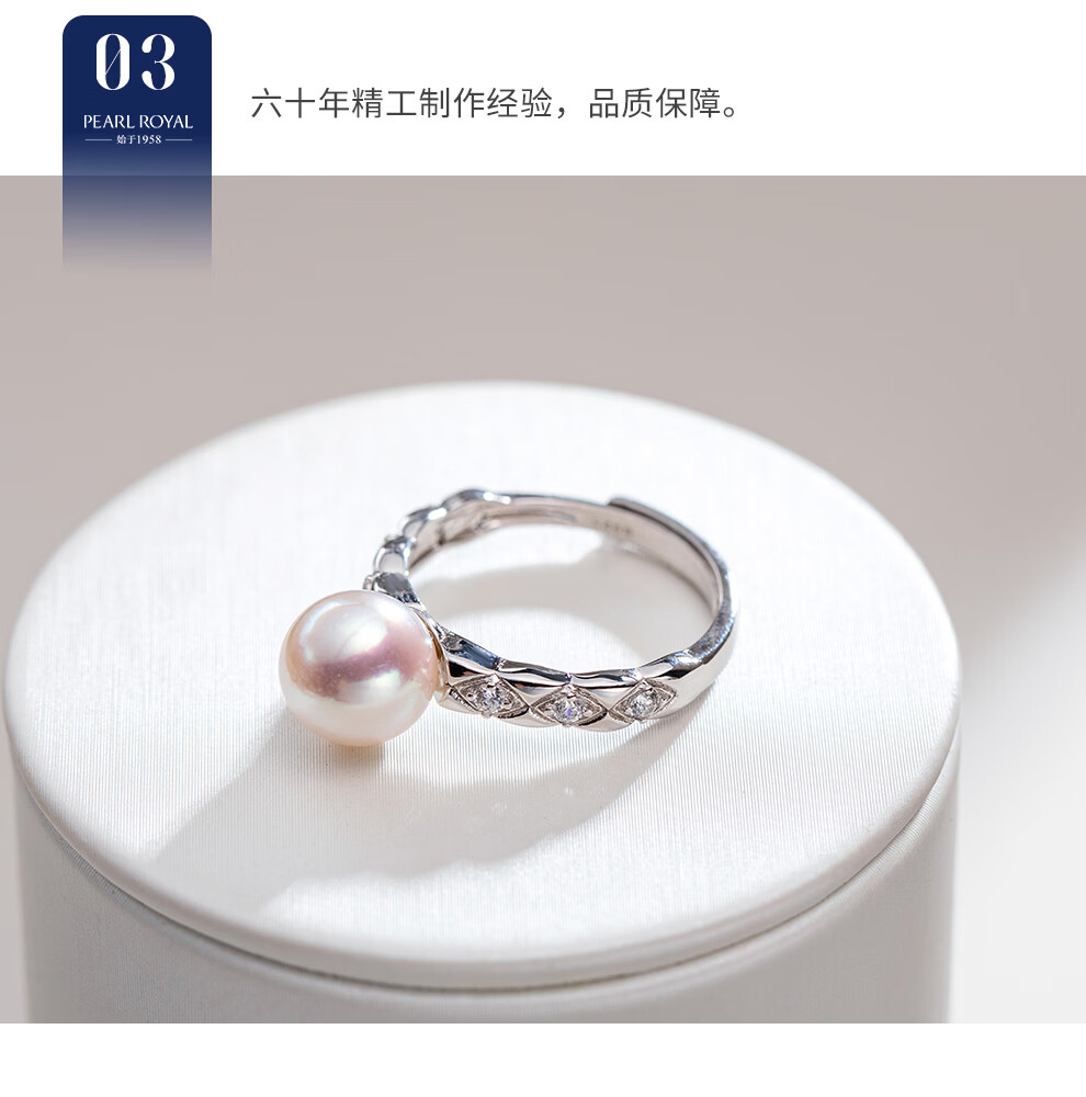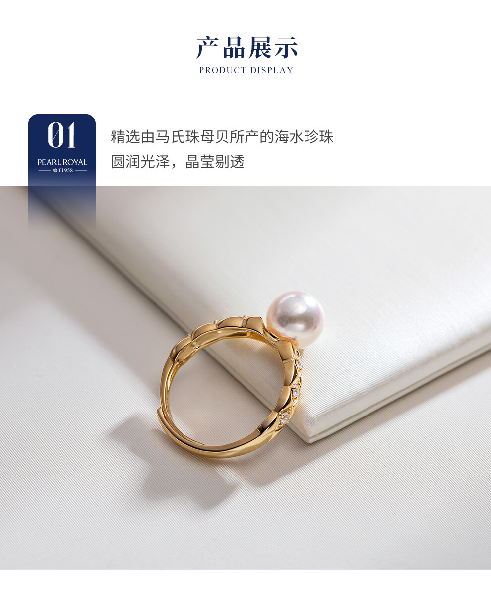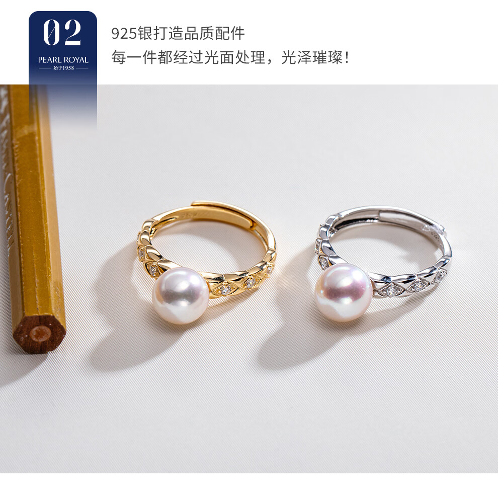 南珠宫菱辉925银海水珍珠戒指职场百搭高级感生日礼物送女友 金色款 8.0-8.5mm
