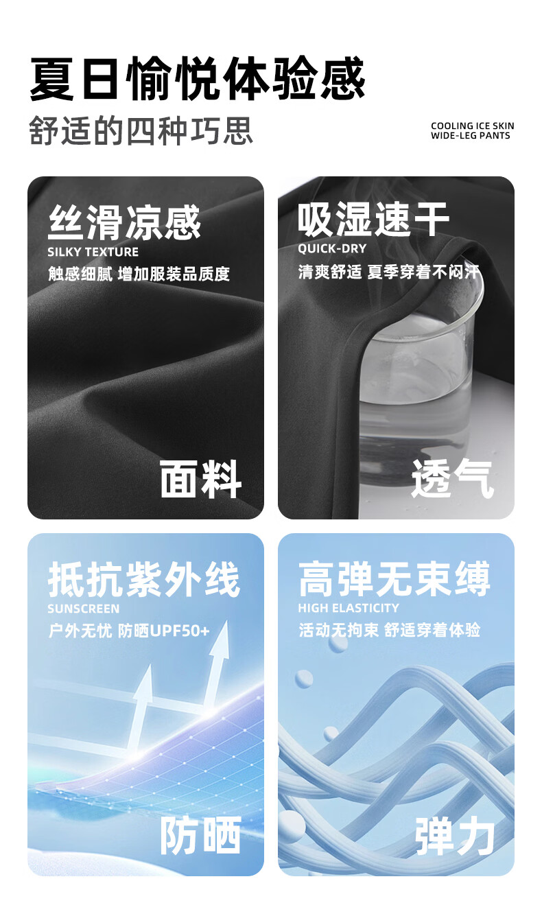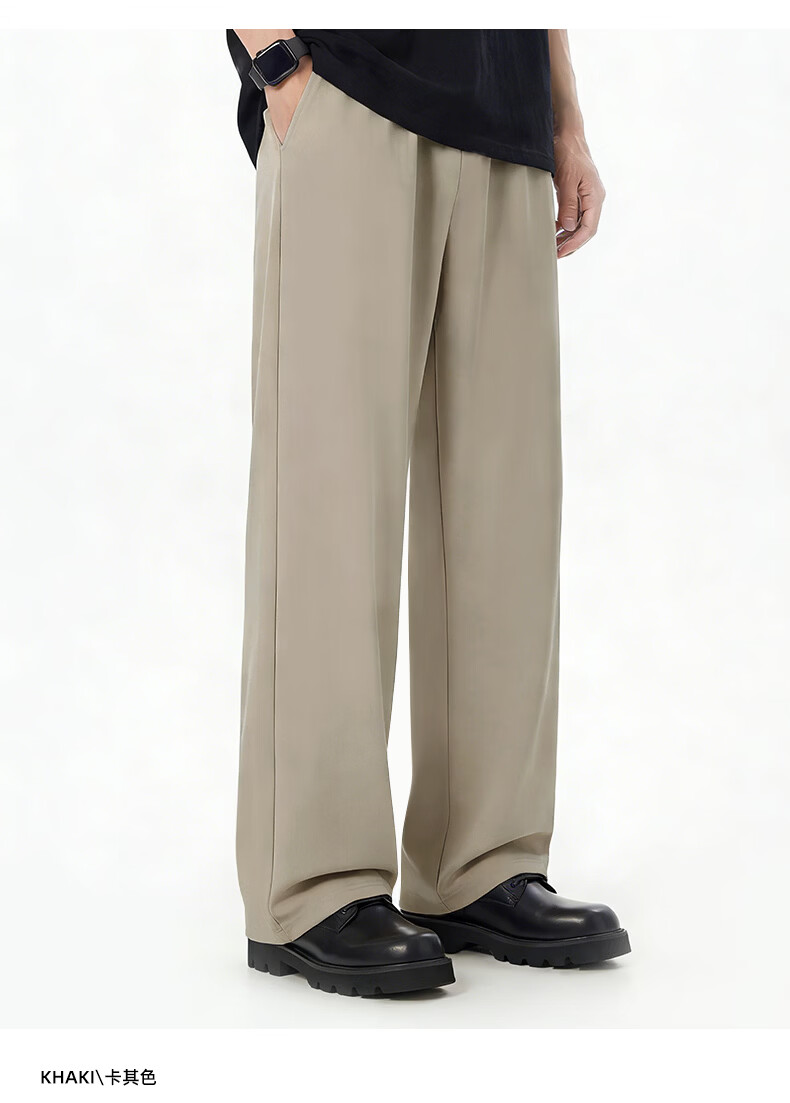 真维斯(Jeanswest)休闲直筒裤男款夏UPF50+防晒薄款冰丝裤宽松透气运动裤男生阔腿裤 卡其 纯色 M