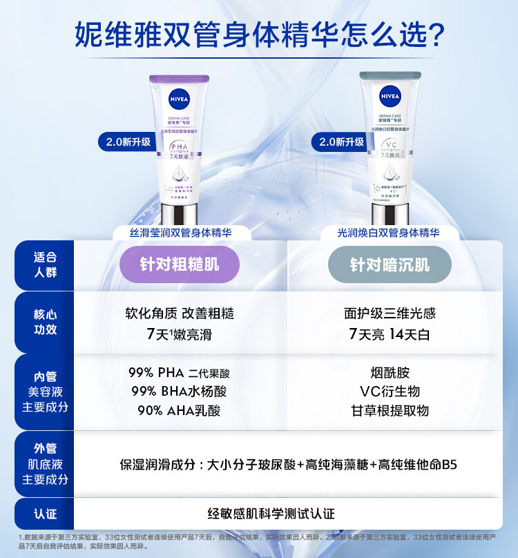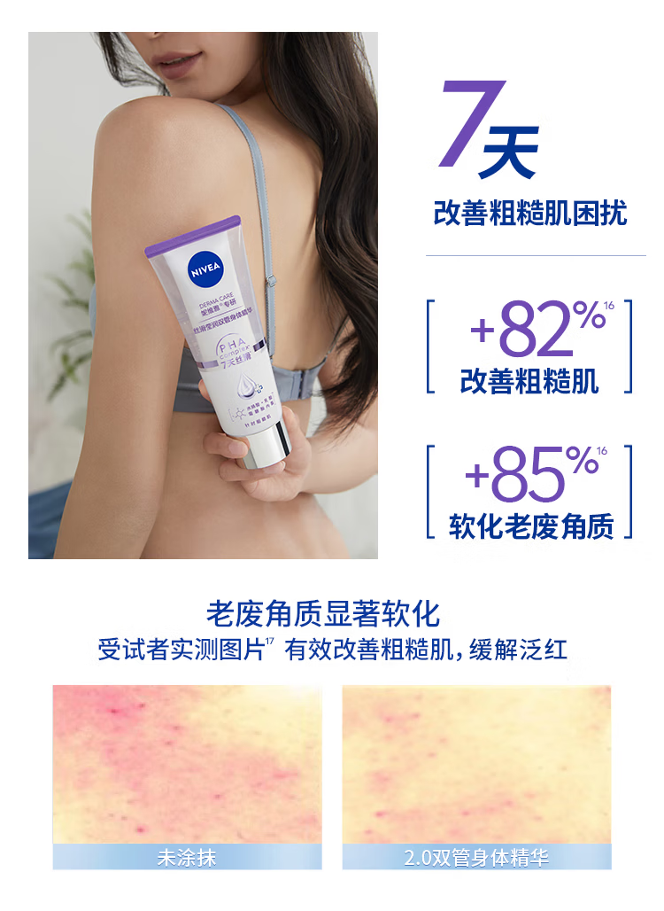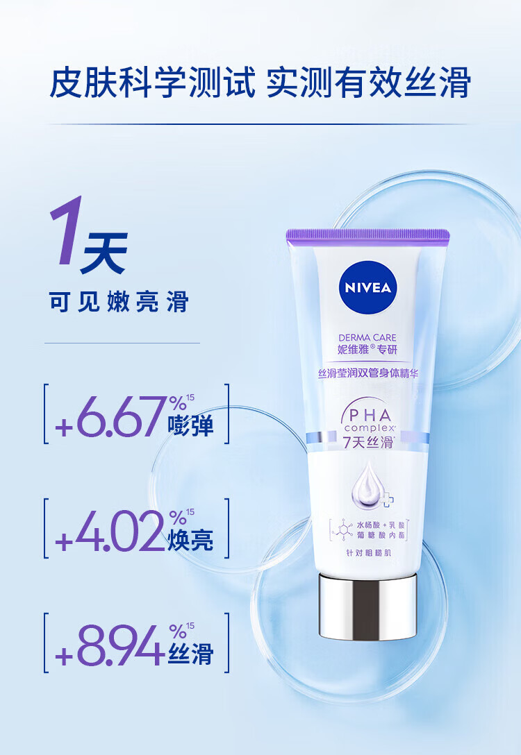 妮维雅(NIVEA)孙颖莎同款丝滑莹润双管身体精华乳女士200ml果酸保湿