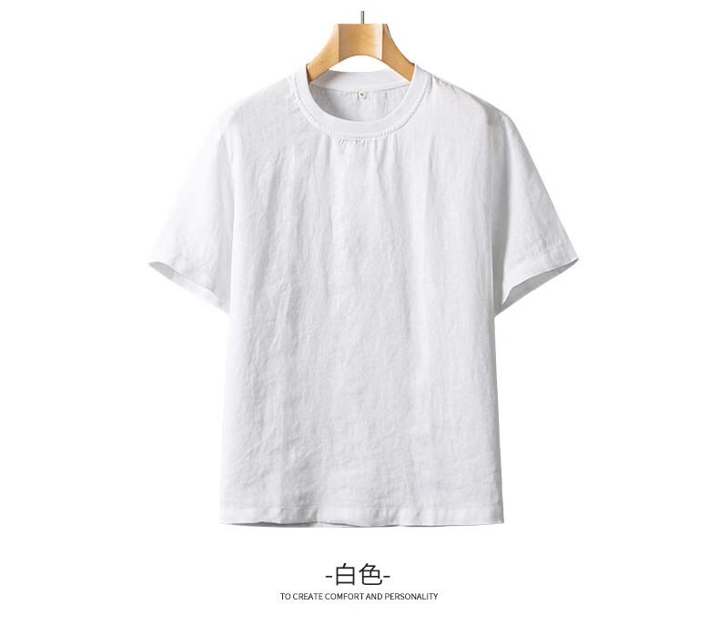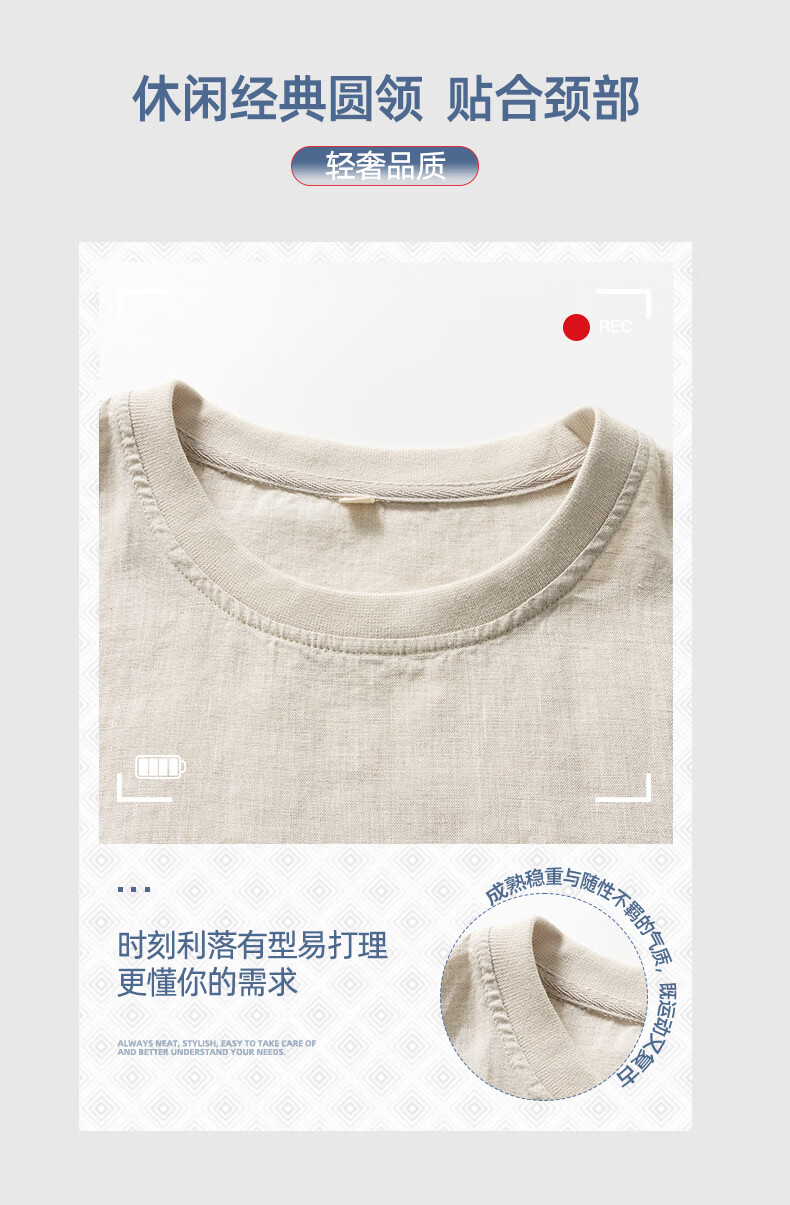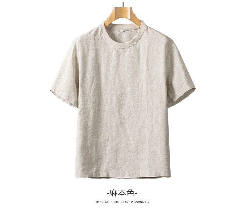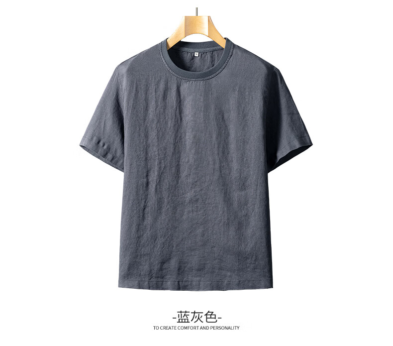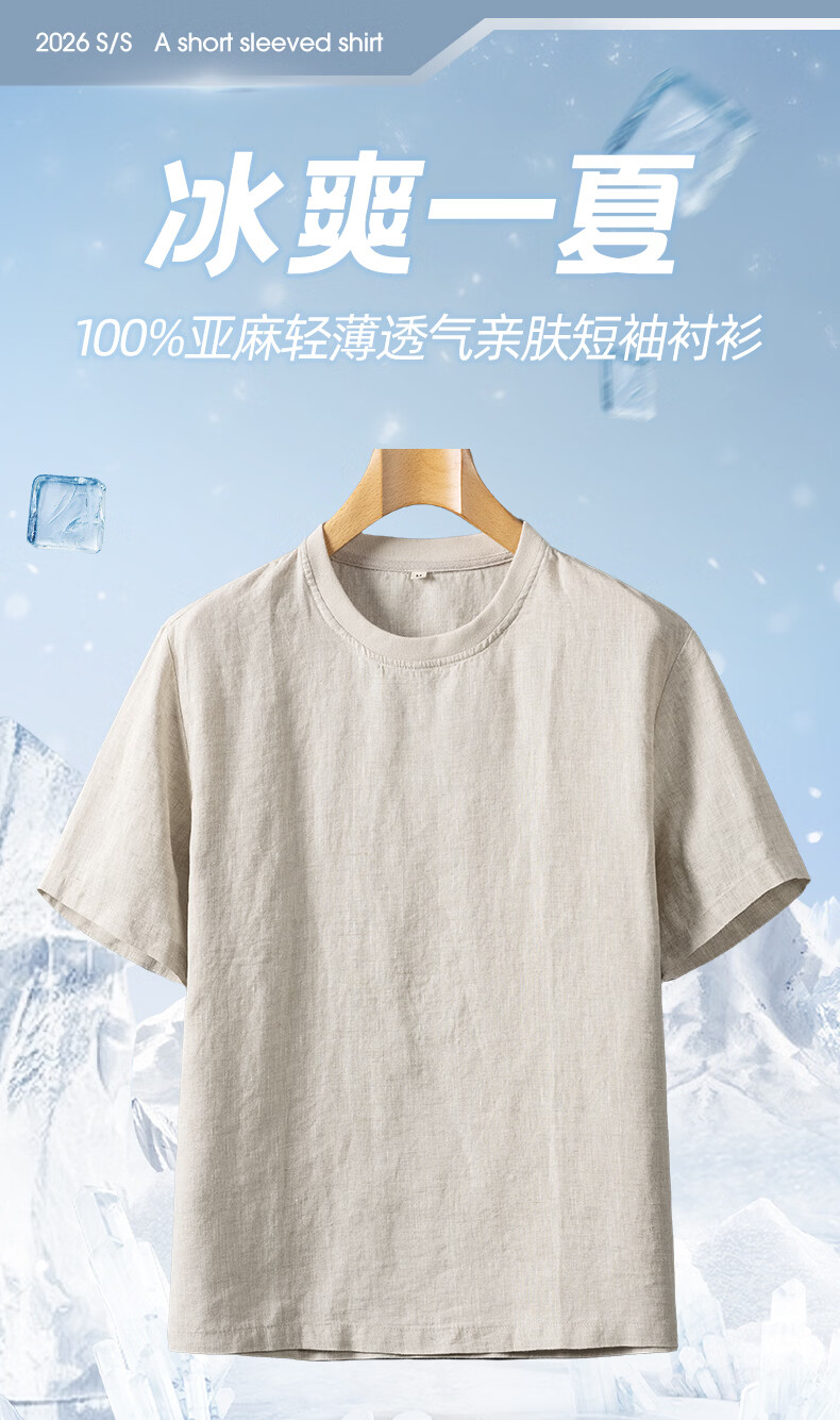 SHANSHAN杉杉【天然亚麻】短袖T恤男2026夏季新款简约休闲圆领打底男上衣 蓝灰色 M /170