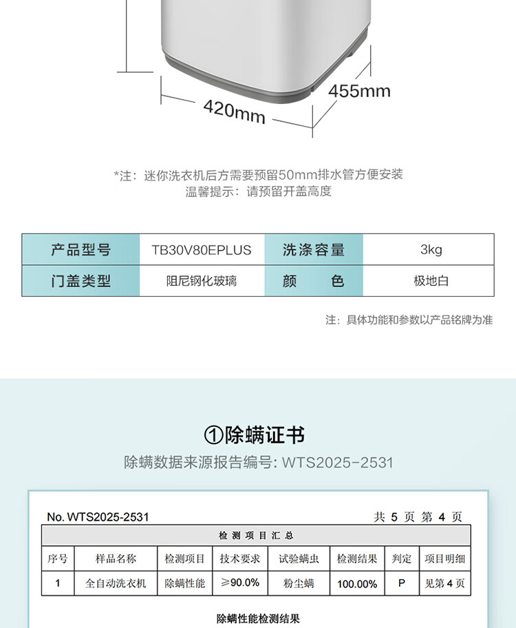 小天鹅(LittleSwan)波轮洗衣机小型全自动家用 3KG迷你 内衣洗 儿童婴儿 健康除螨 TB30V80EPLUS 以旧换新 京东自营