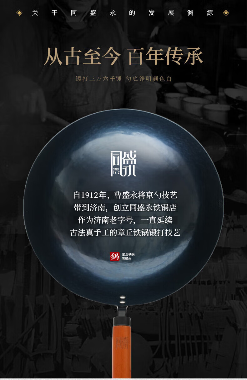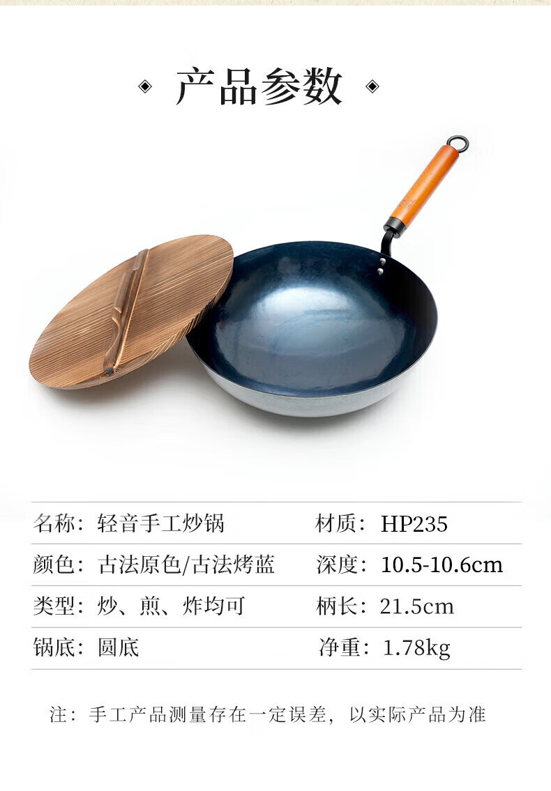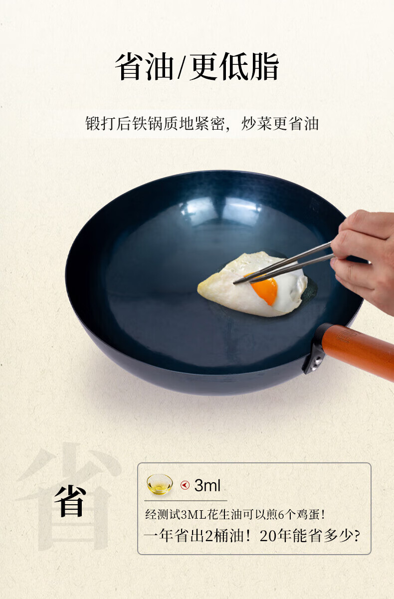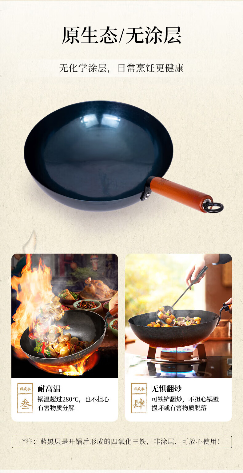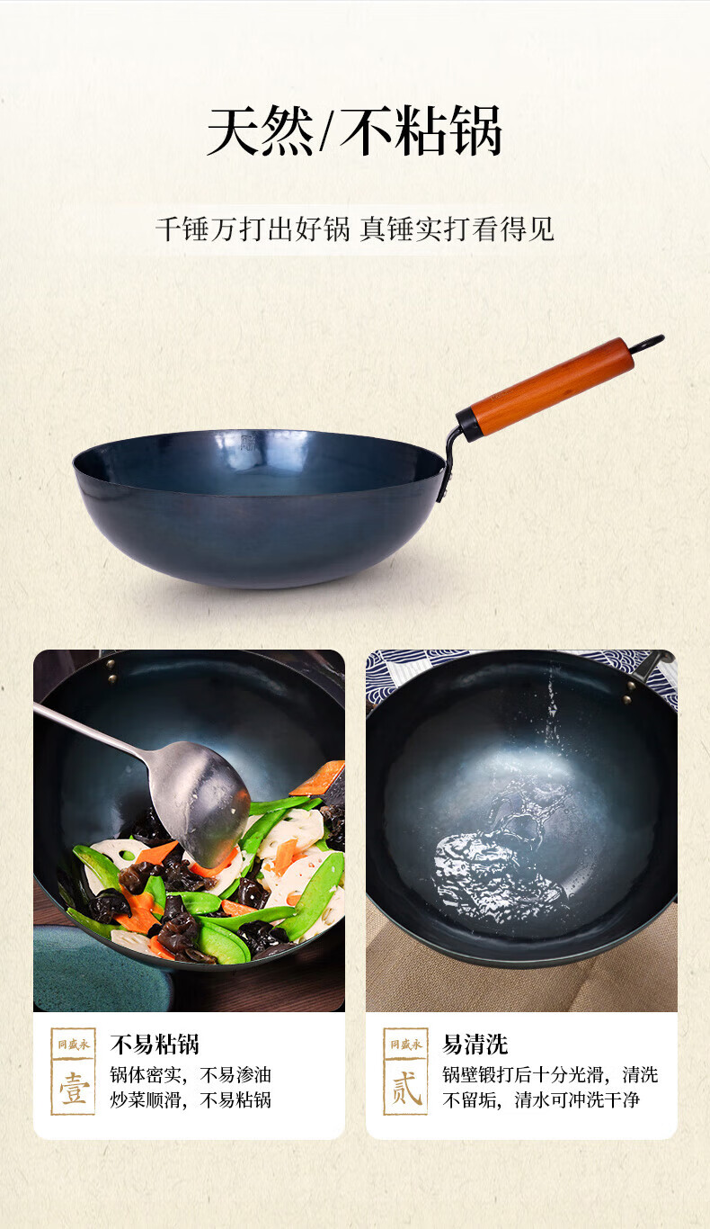 章丘铁锅舌尖上的中国手工锻打物理不粘锅熟铁炒锅无涂层铁锅34cm