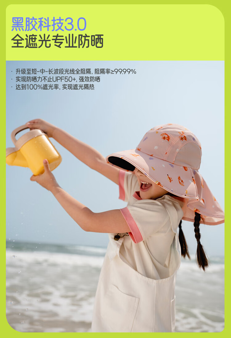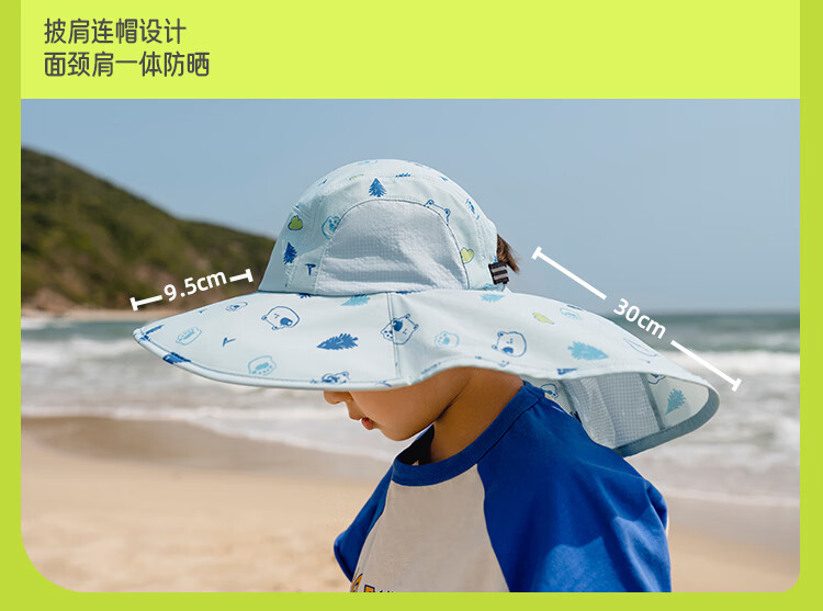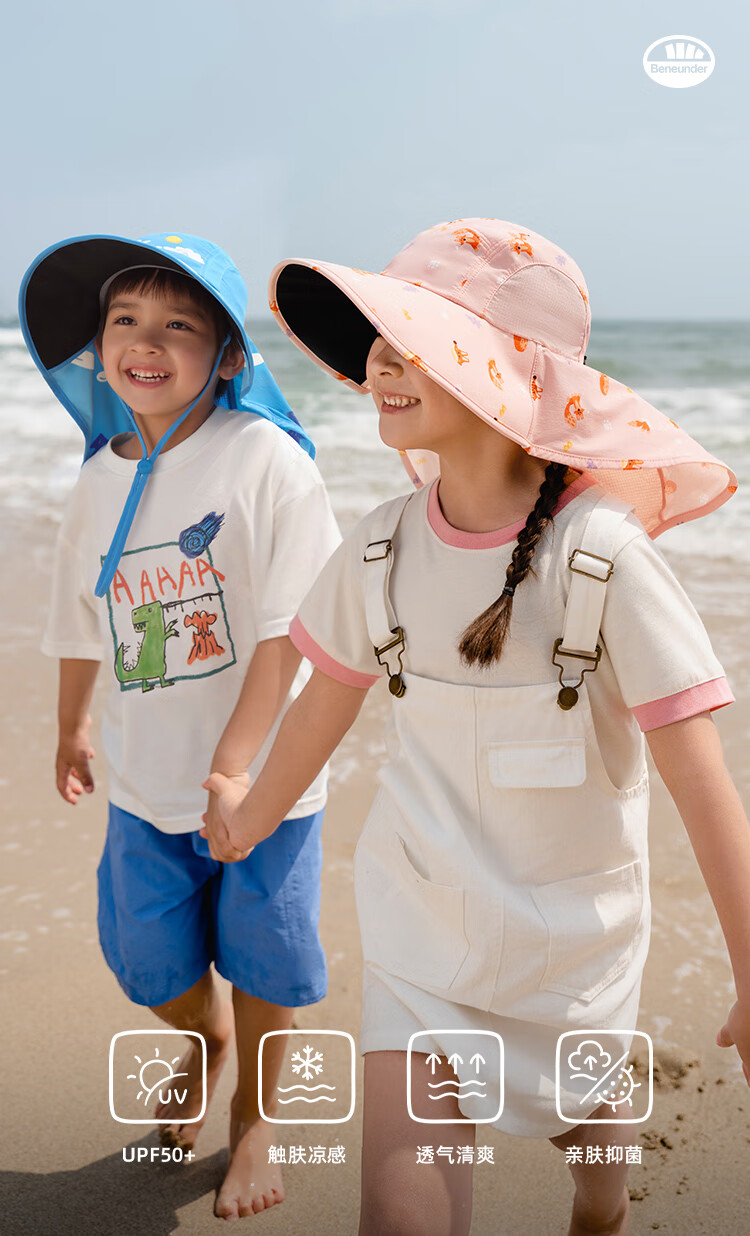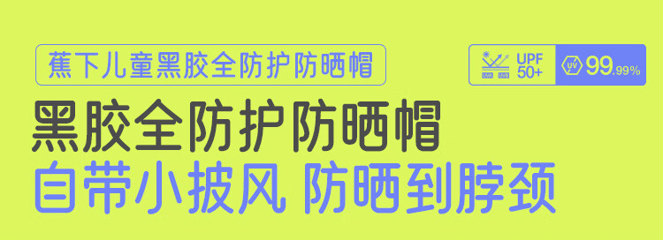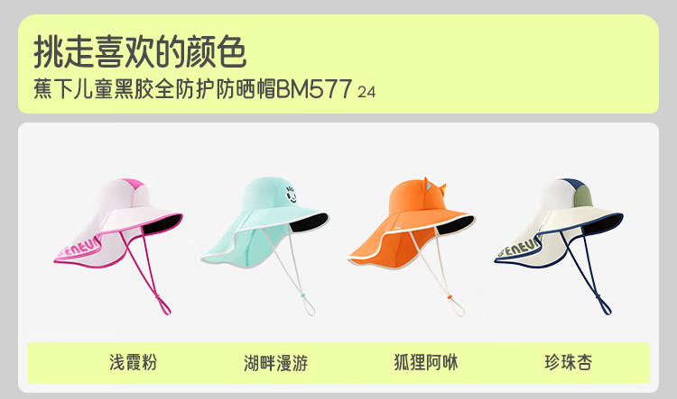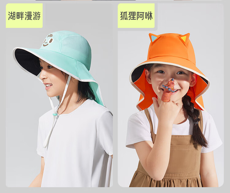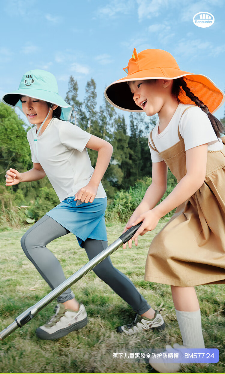蕉下(beneunder)儿童防晒帽遮阳帽太阳帽子渔夫帽男女童黑胶BM57724湖畔漫游48-50