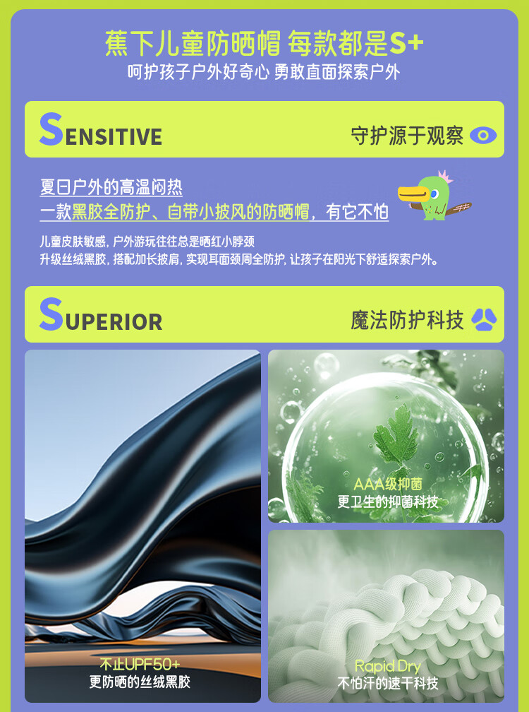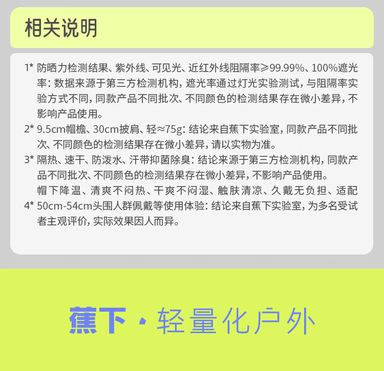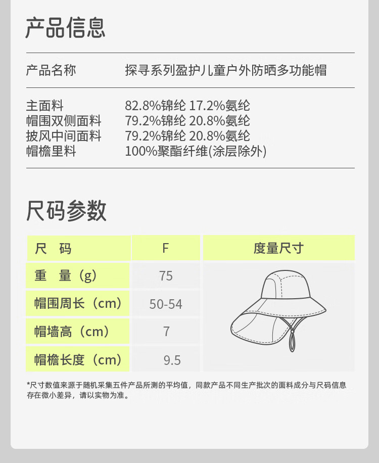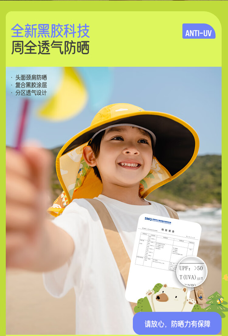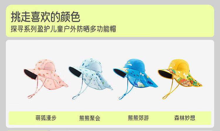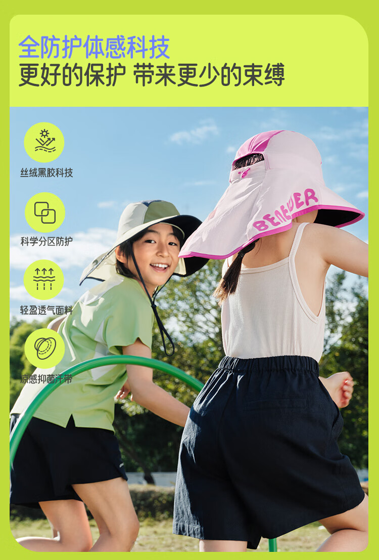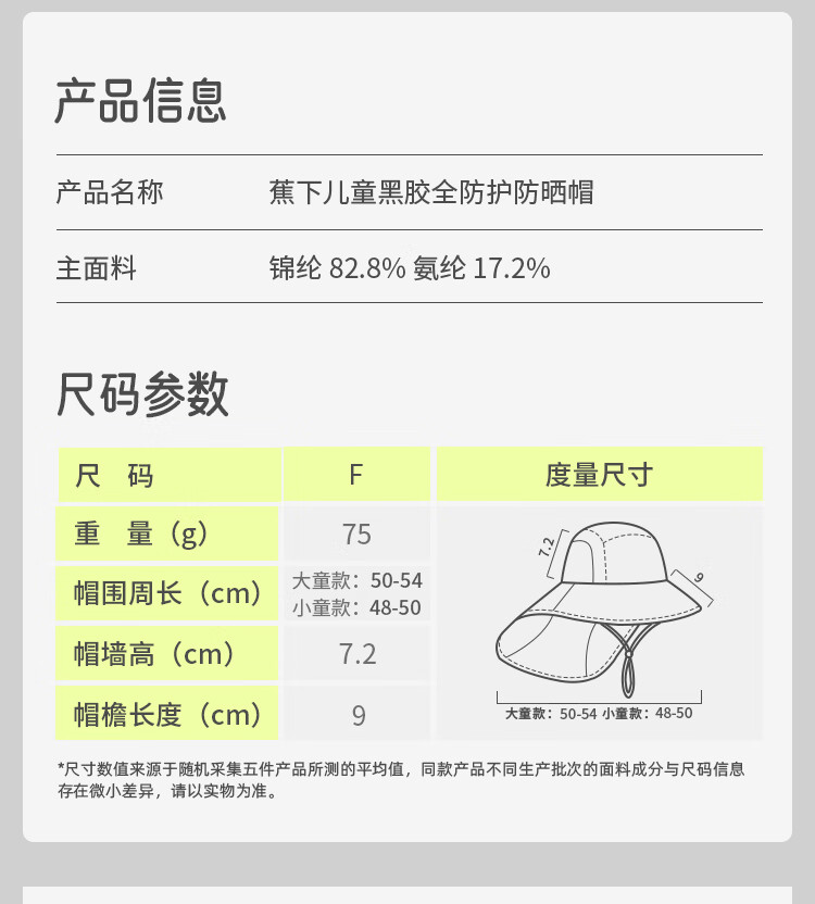 蕉下(beneunder)儿童防晒帽遮阳帽太阳帽子渔夫帽男女童黑胶BM57724湖畔漫游48-50