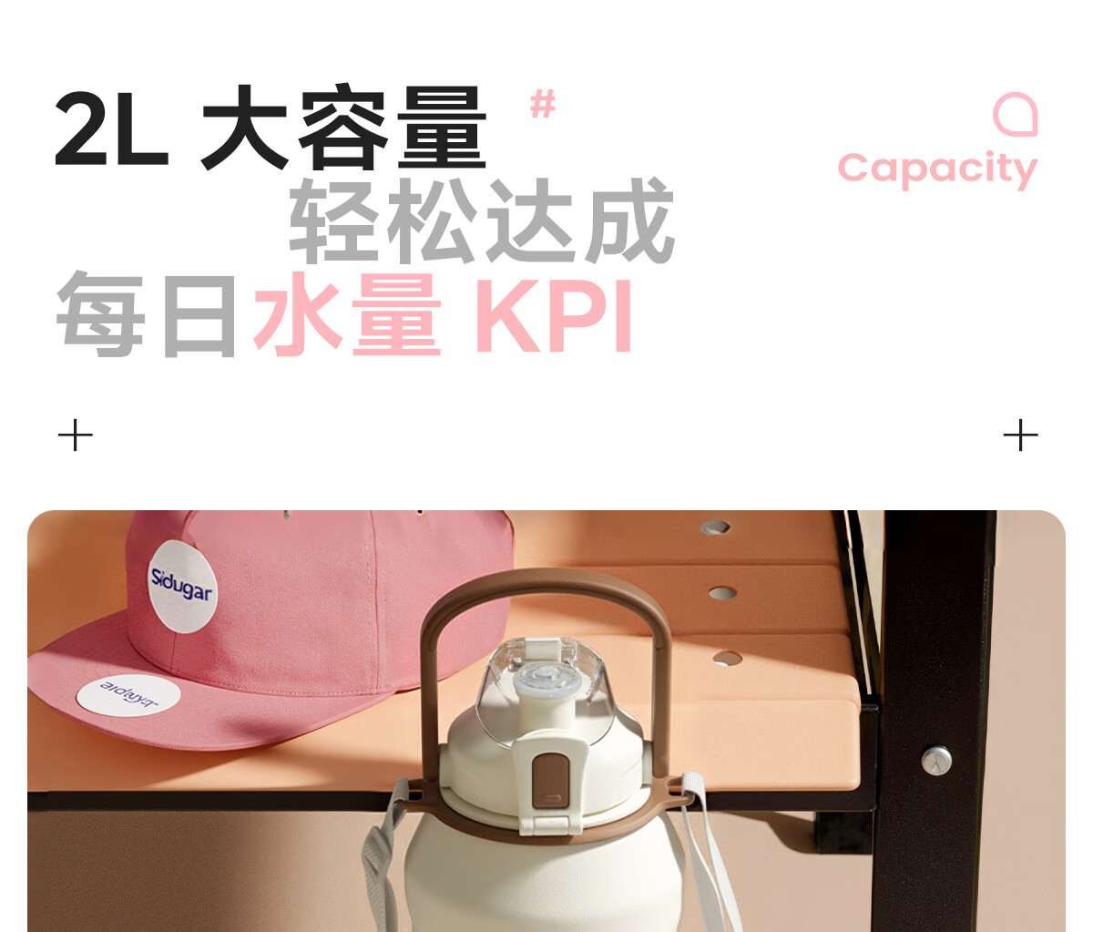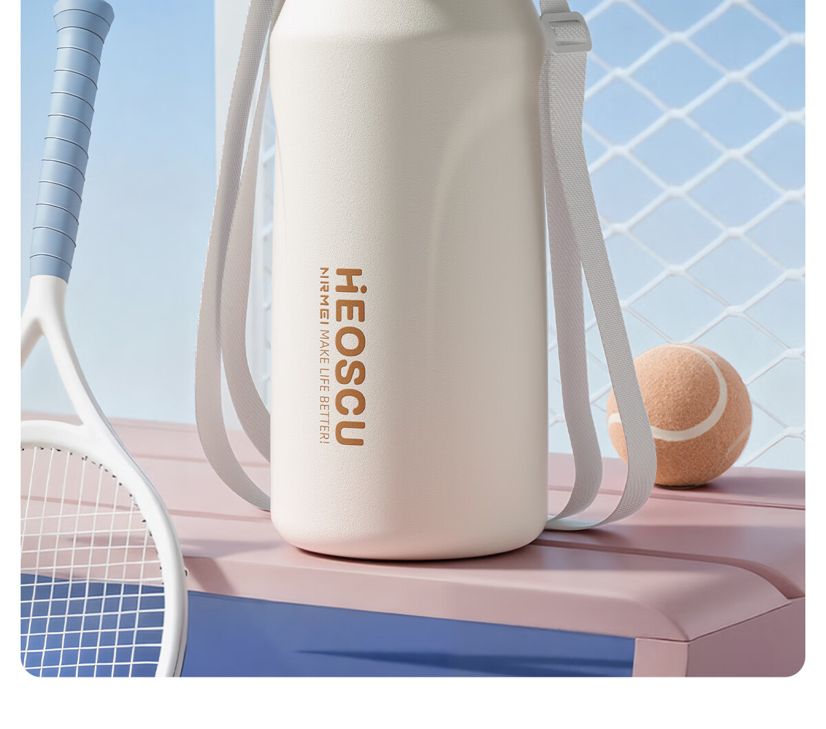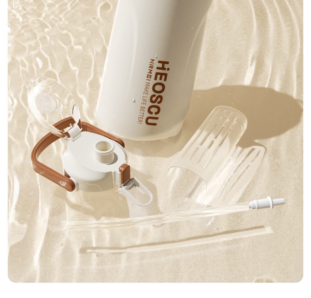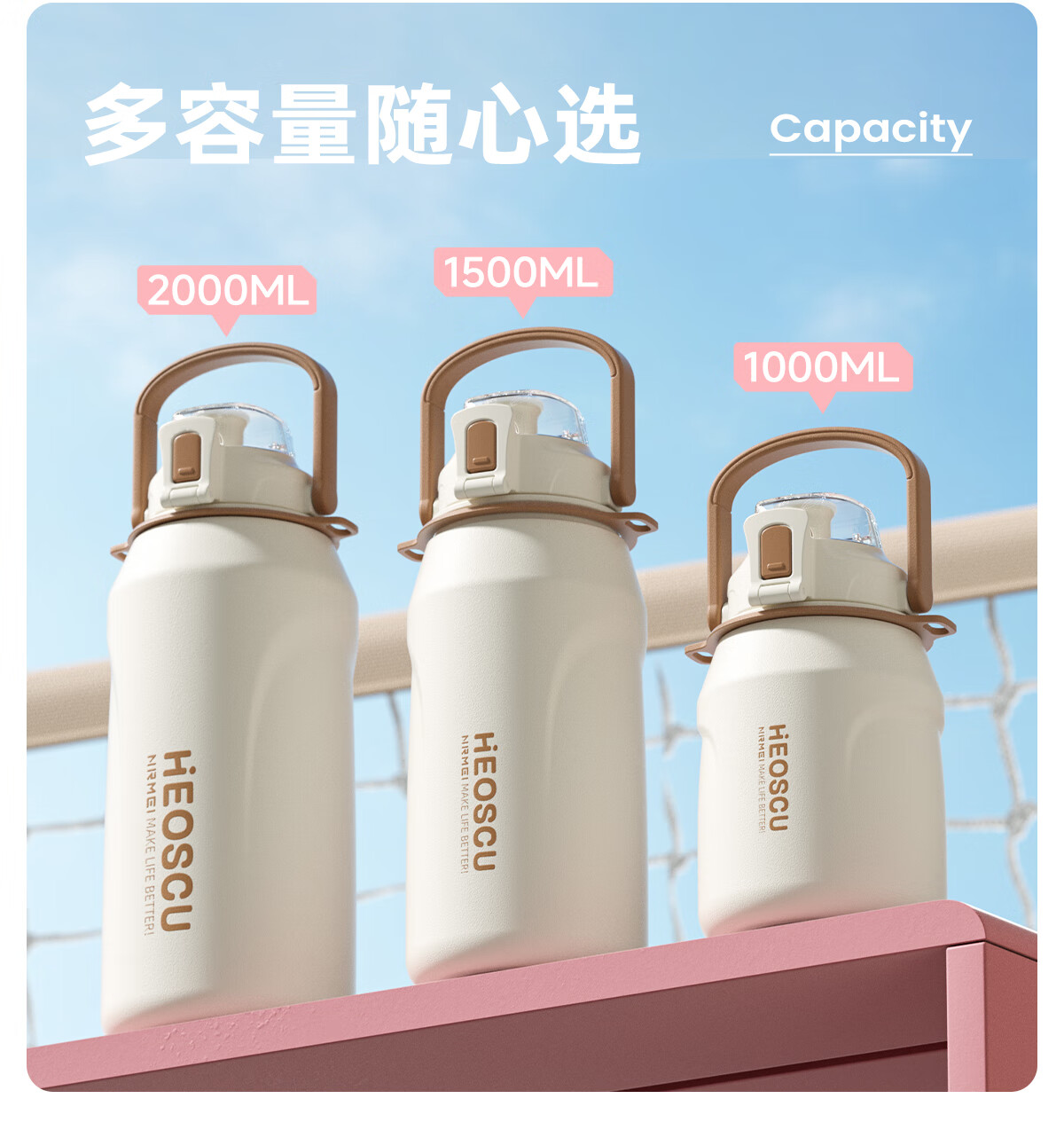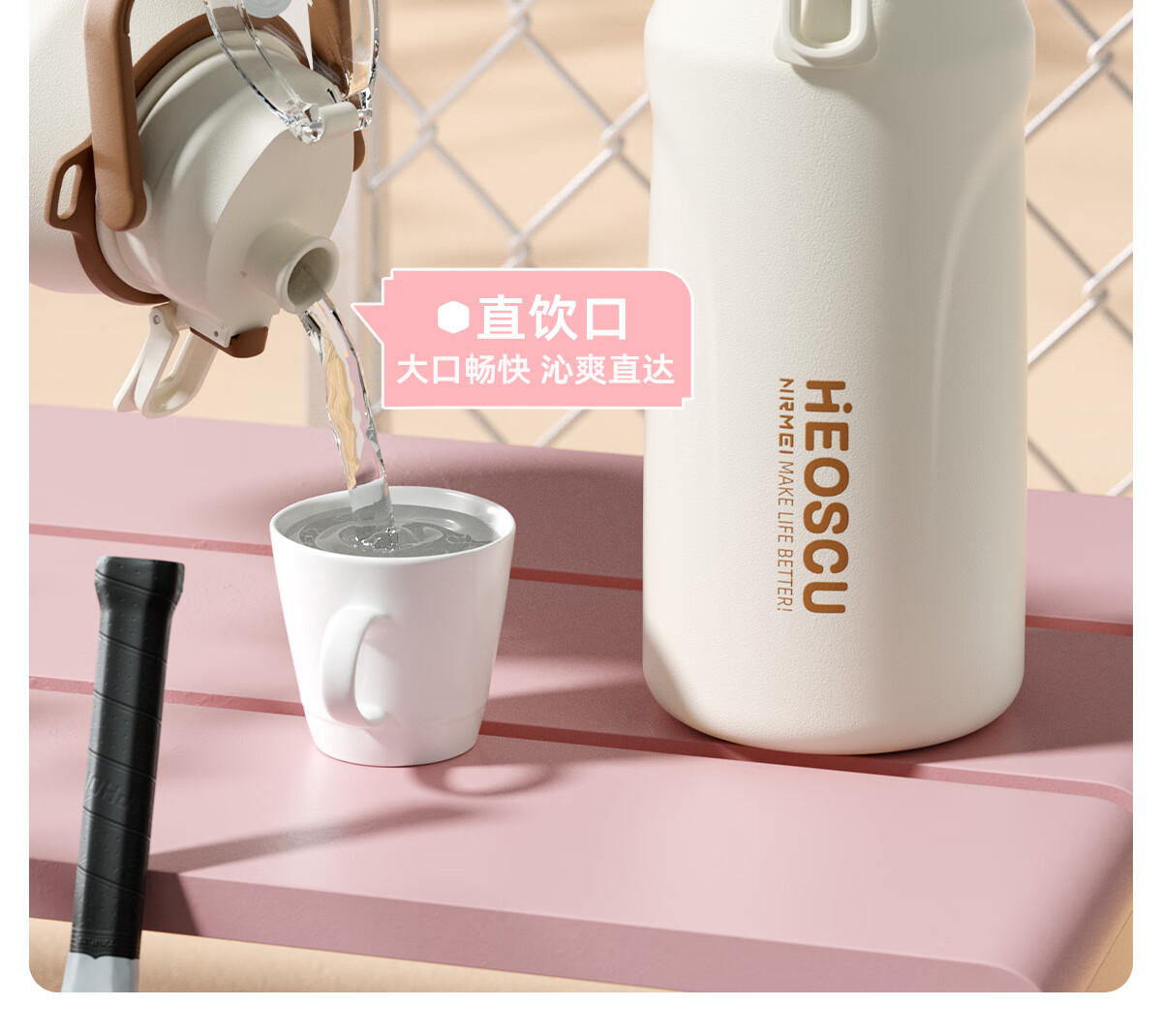 恩尔美(nRMEi)保温杯大容量女款高颜值青少年12-18岁上学专用男运动水壶水杯子 【316不锈钢】白咖色2000ml【一杯双饮/背带提绳】