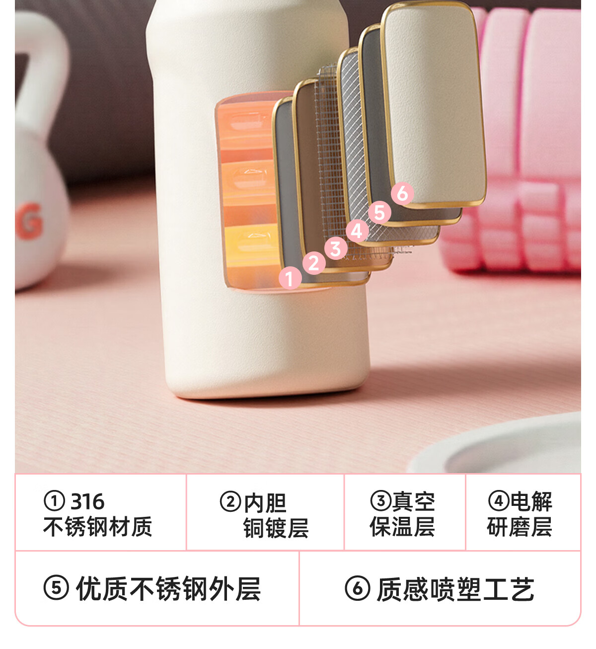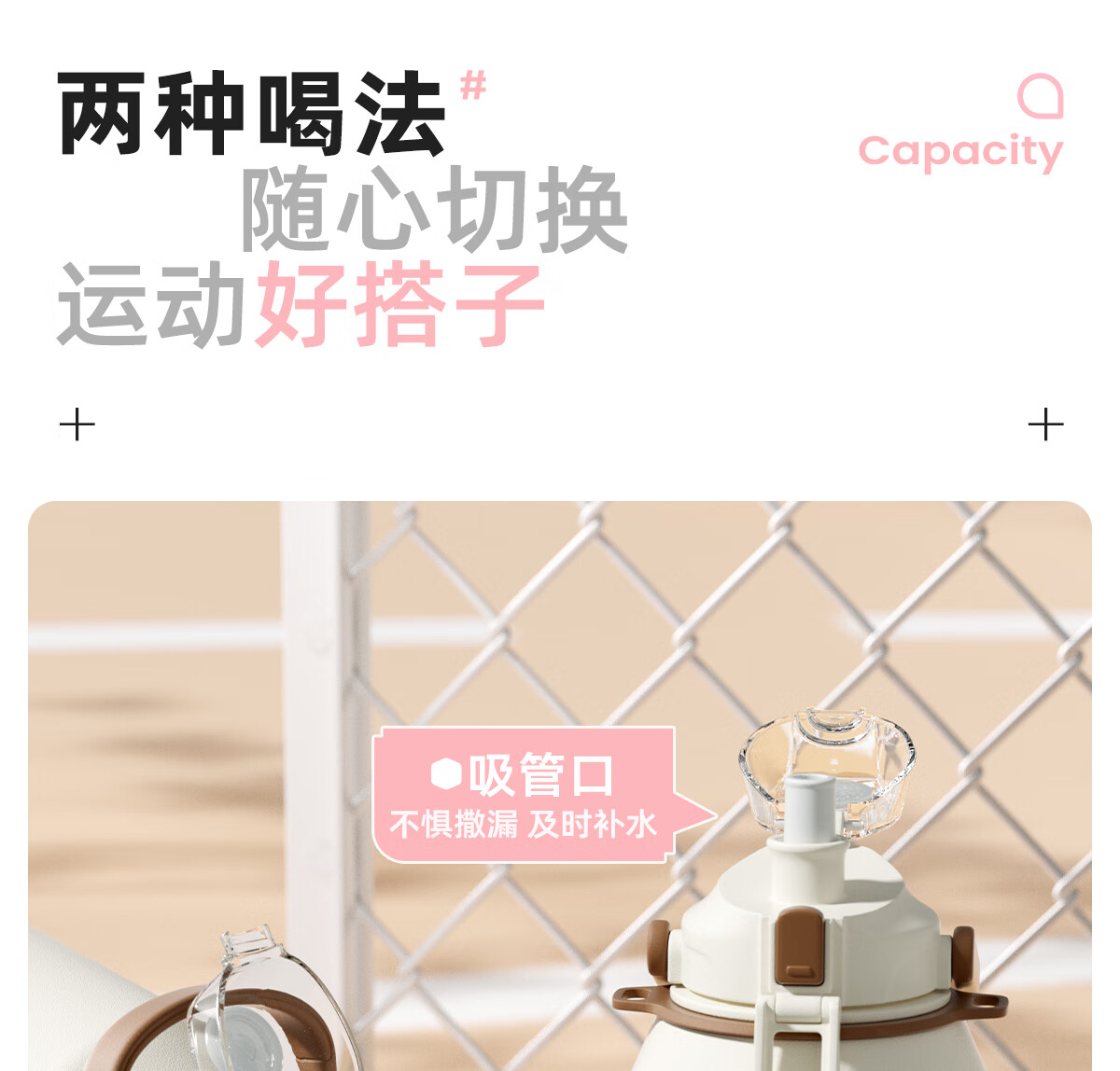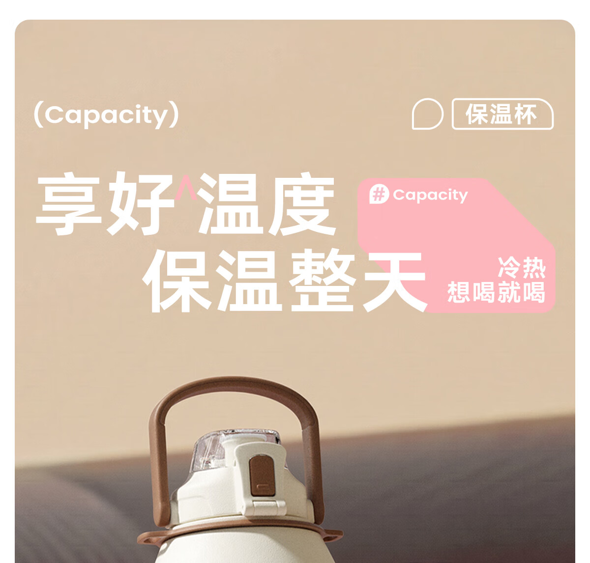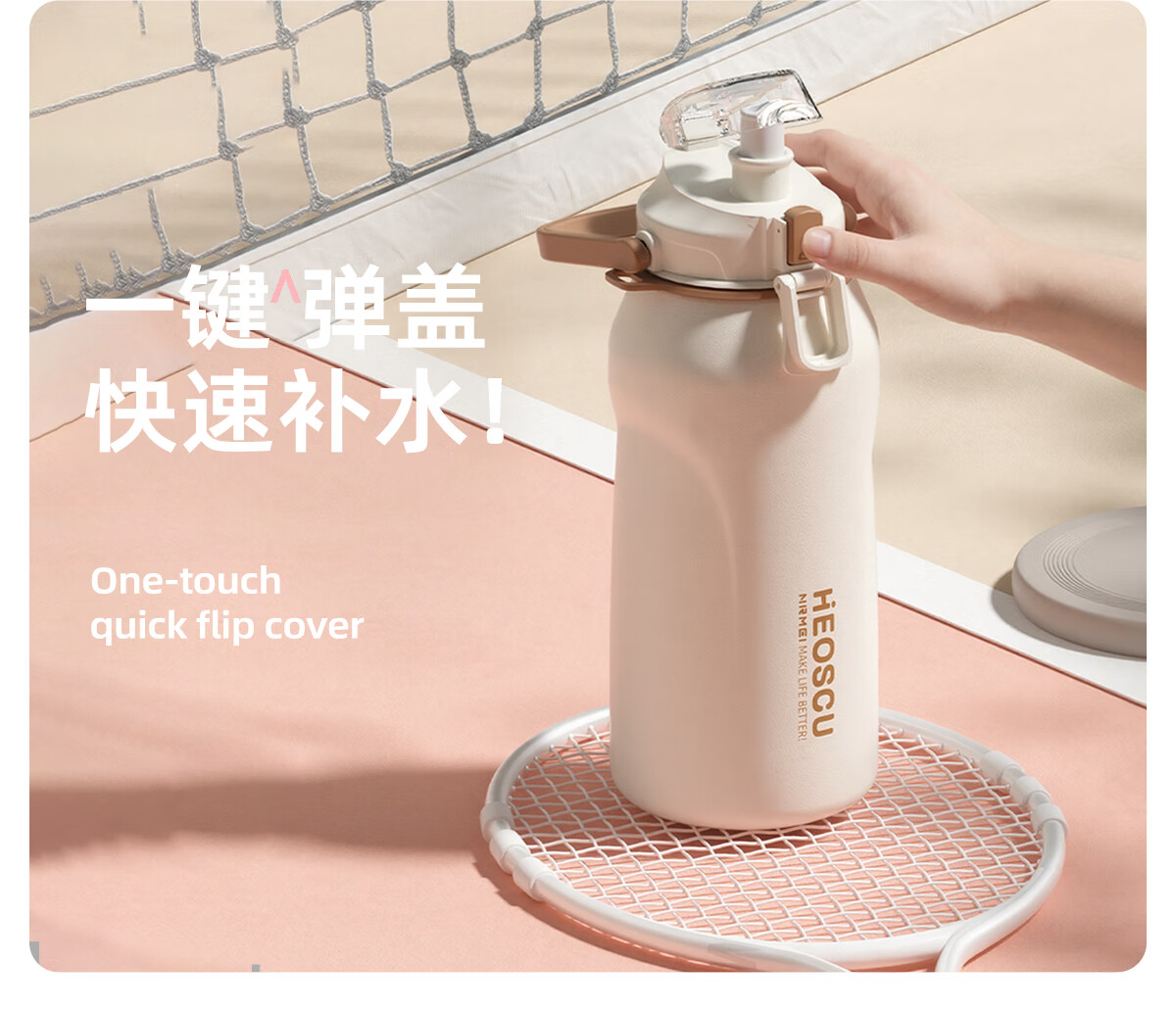 恩尔美(nRMEi)保温杯大容量女款高颜值青少年12-18岁上学专用男运动水壶水杯子 【316不锈钢】白咖色2000ml【一杯双饮/背带提绳】