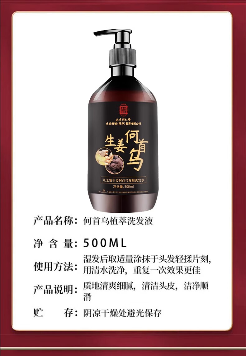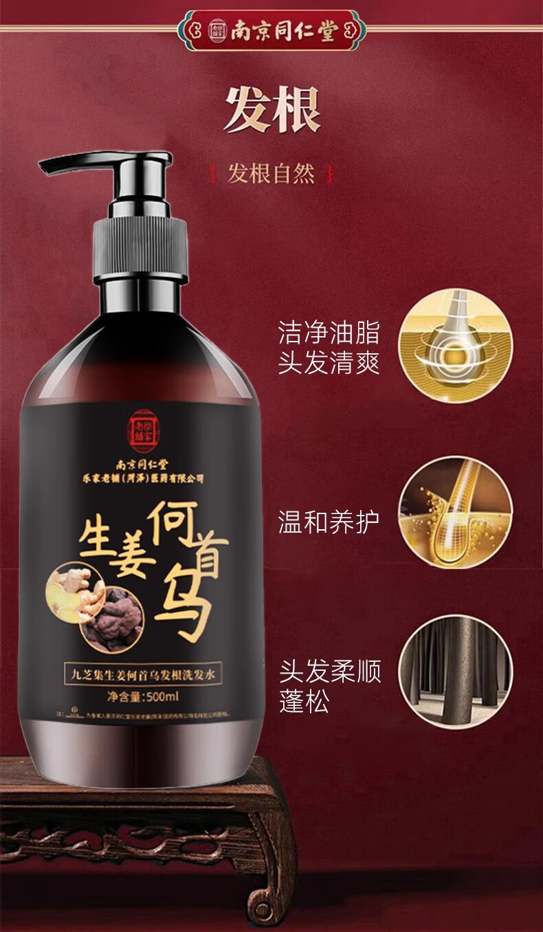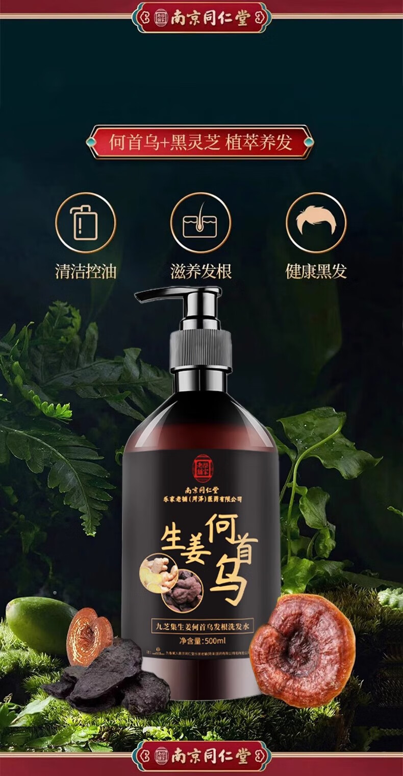 南京同仁堂生姜何首乌洗发水露植物萃取去屑控油止痒个人护理男女士品牌正品 【活动价】1瓶装【500ml/瓶】 【有防伪标志买的放心】