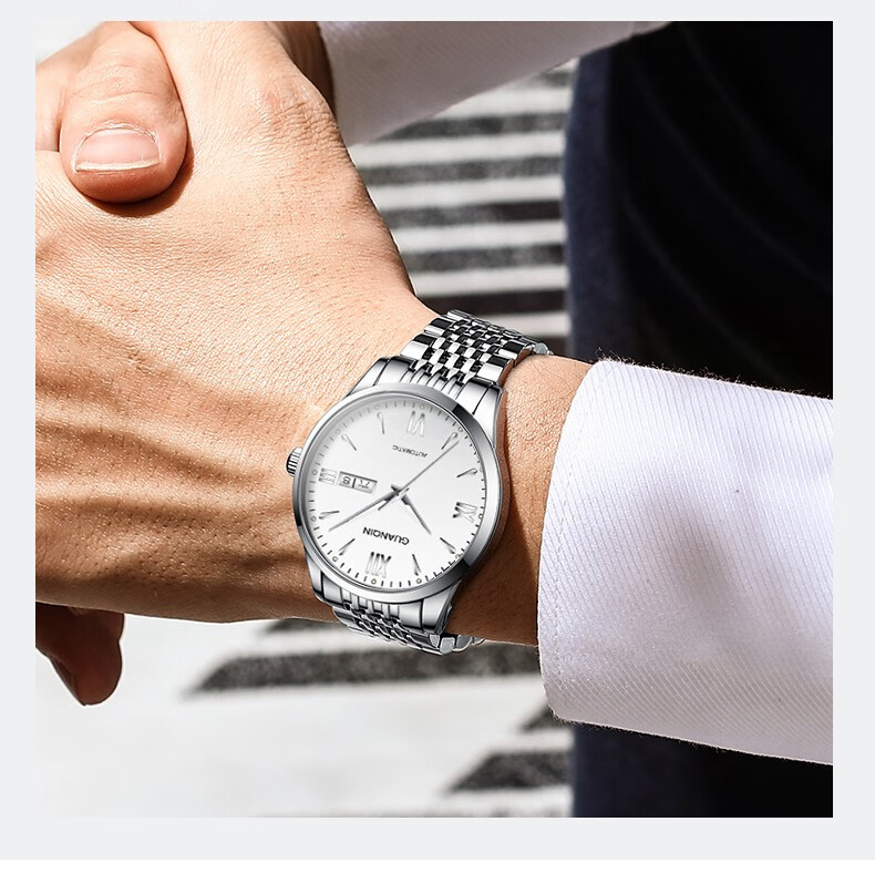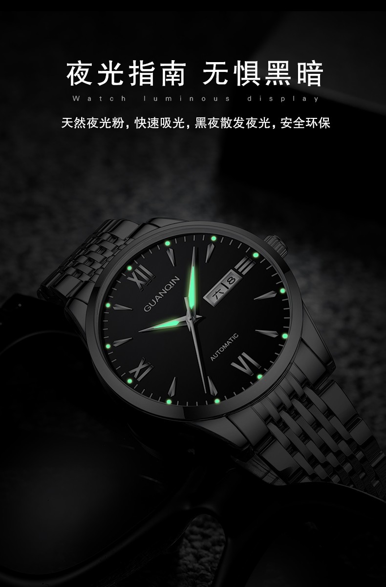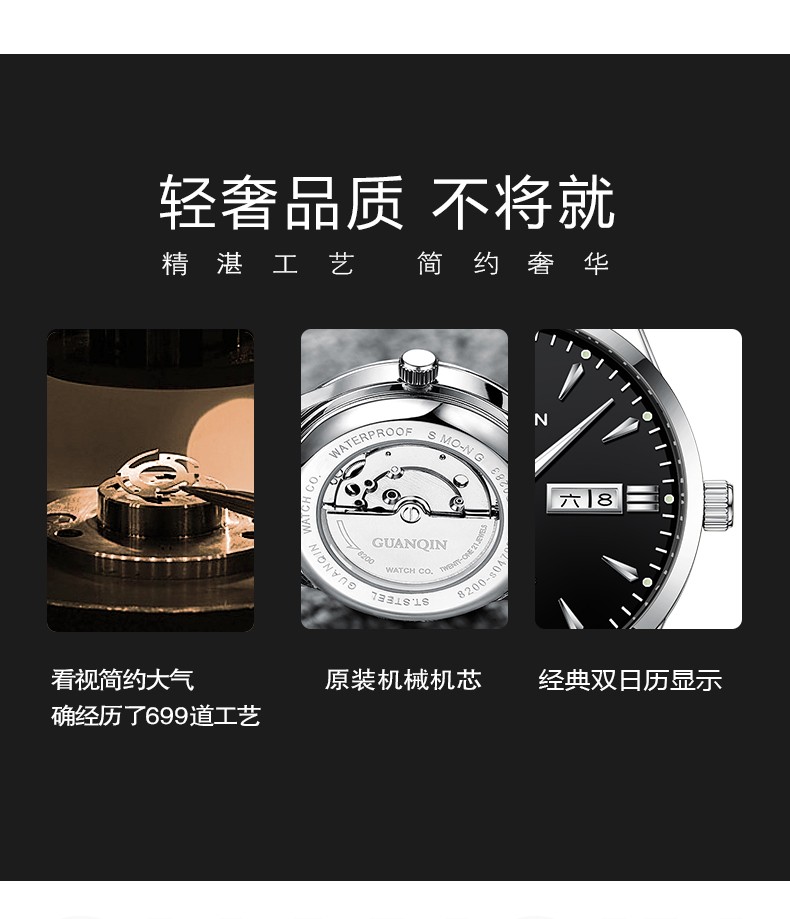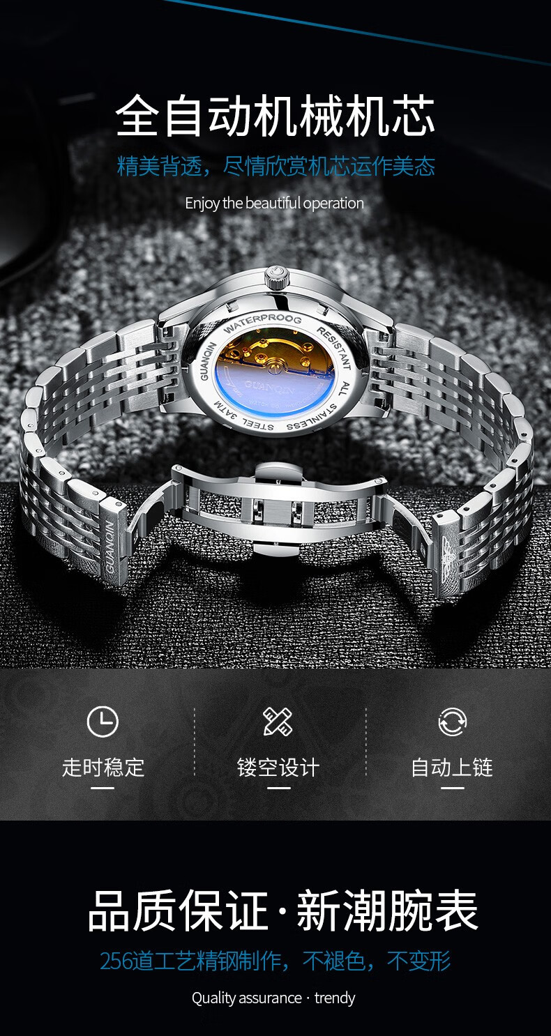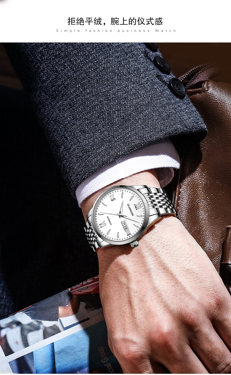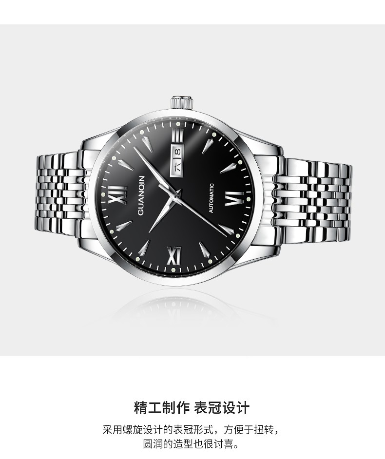 冠琴(GUANQIN) 名表 新款手表男士全自动机械商务休闲防水夜光男表精钢时尚简约 冠琴 16221间金白面 免费刻字